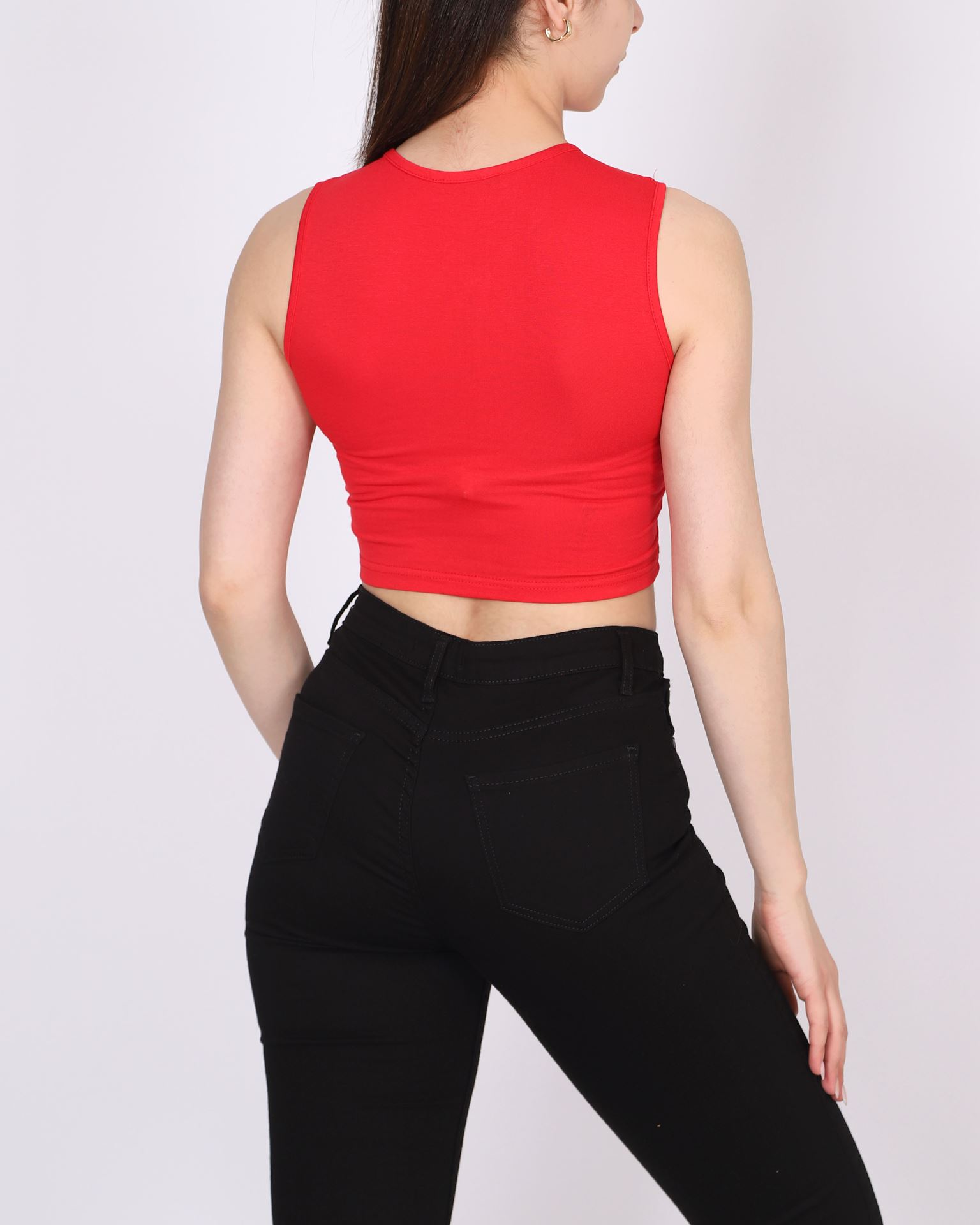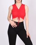 Kırmızı V Yaka Önü Büzgülü Bluz BLZ264