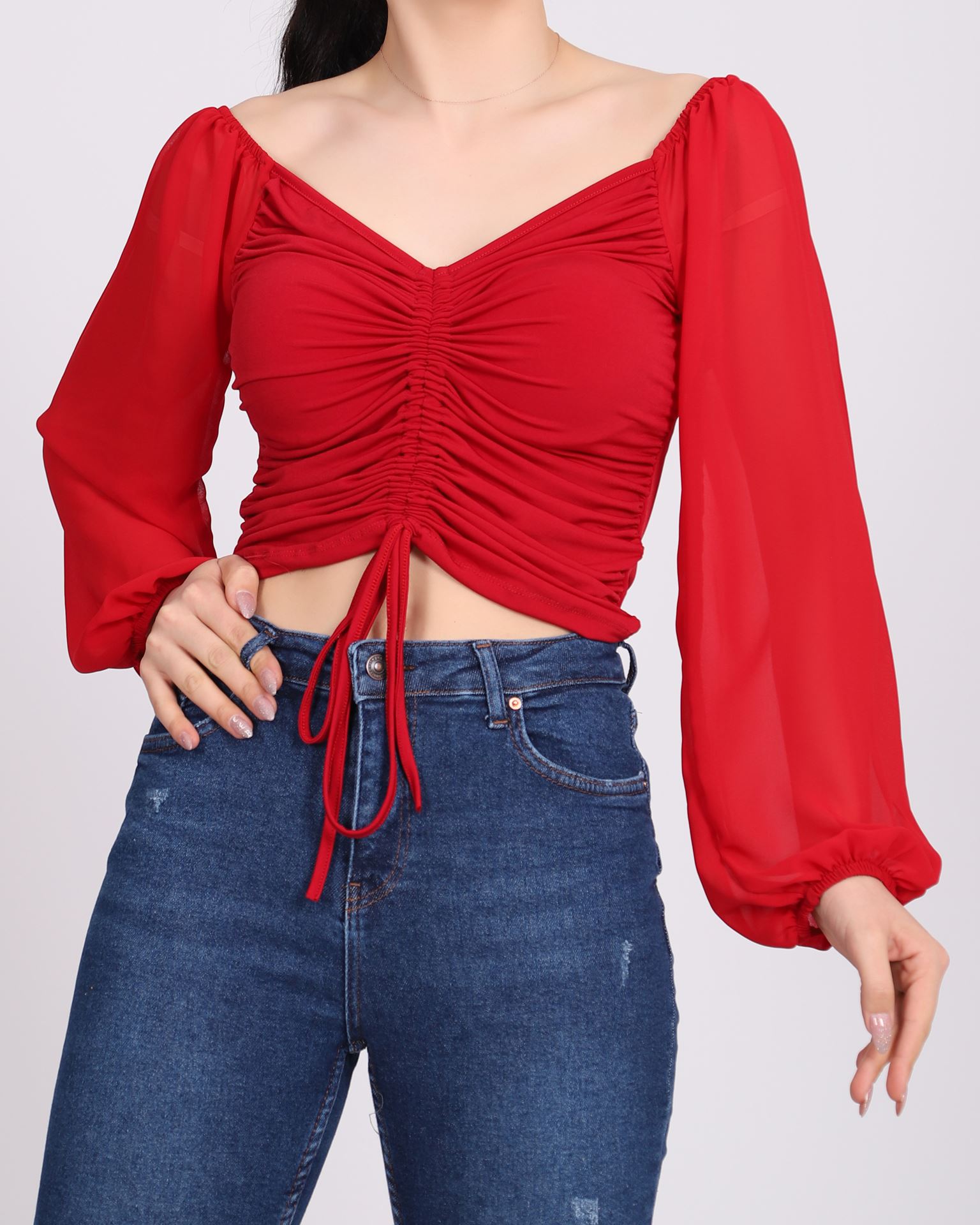Kolu Tül Önü Büzgülü Sandy Bluz BLZ123