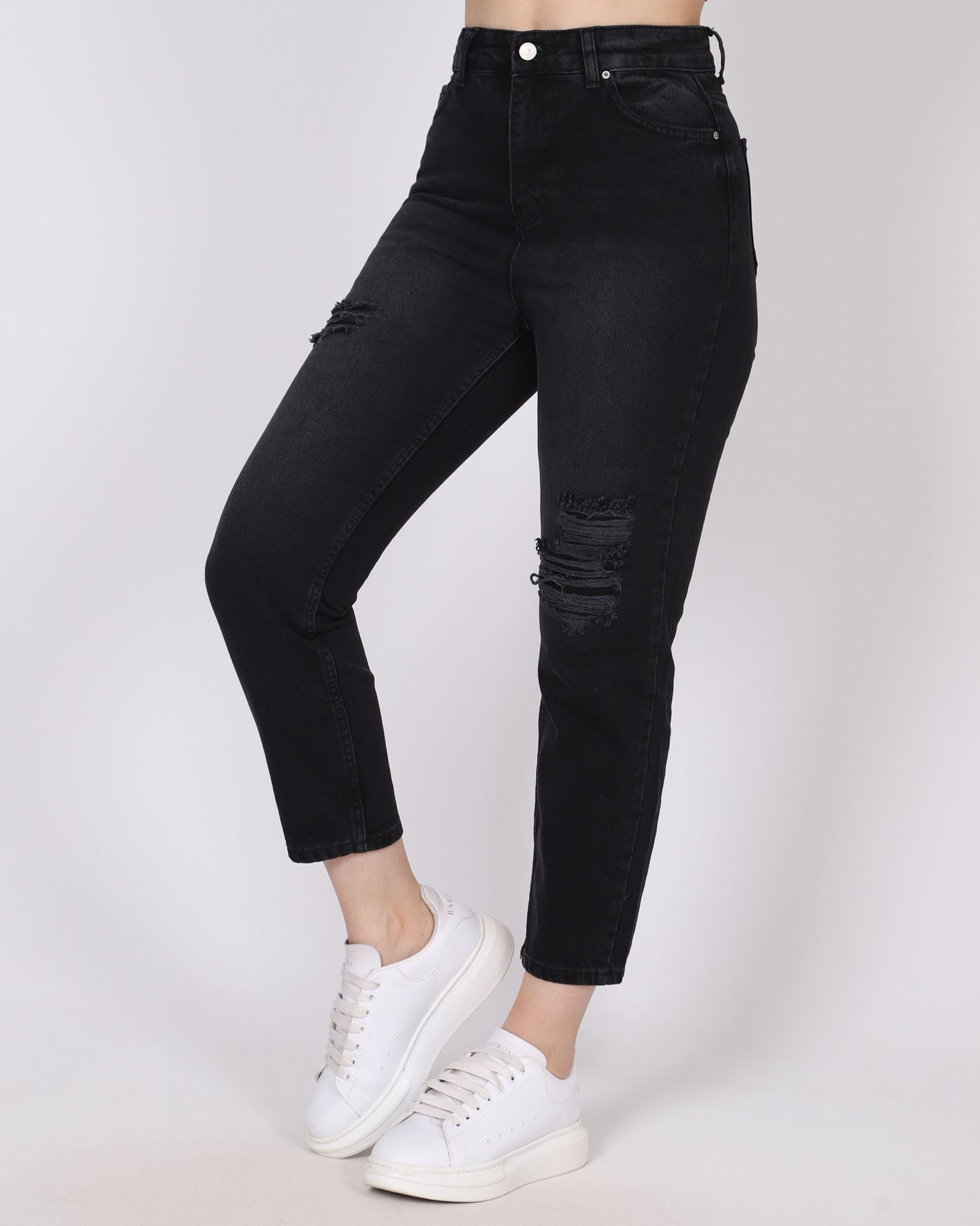 Koyu Füme Lazerli Mom Jean PNT631