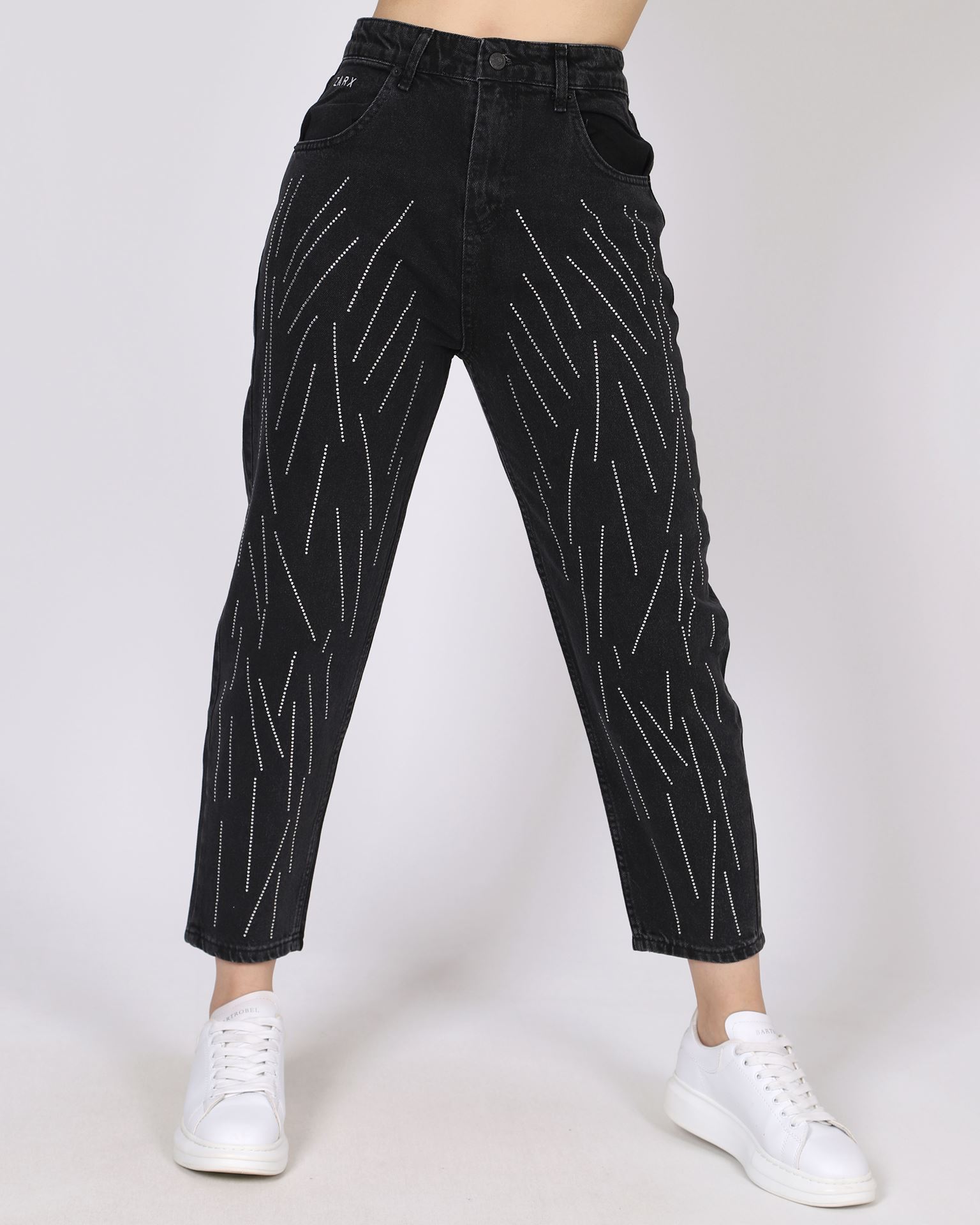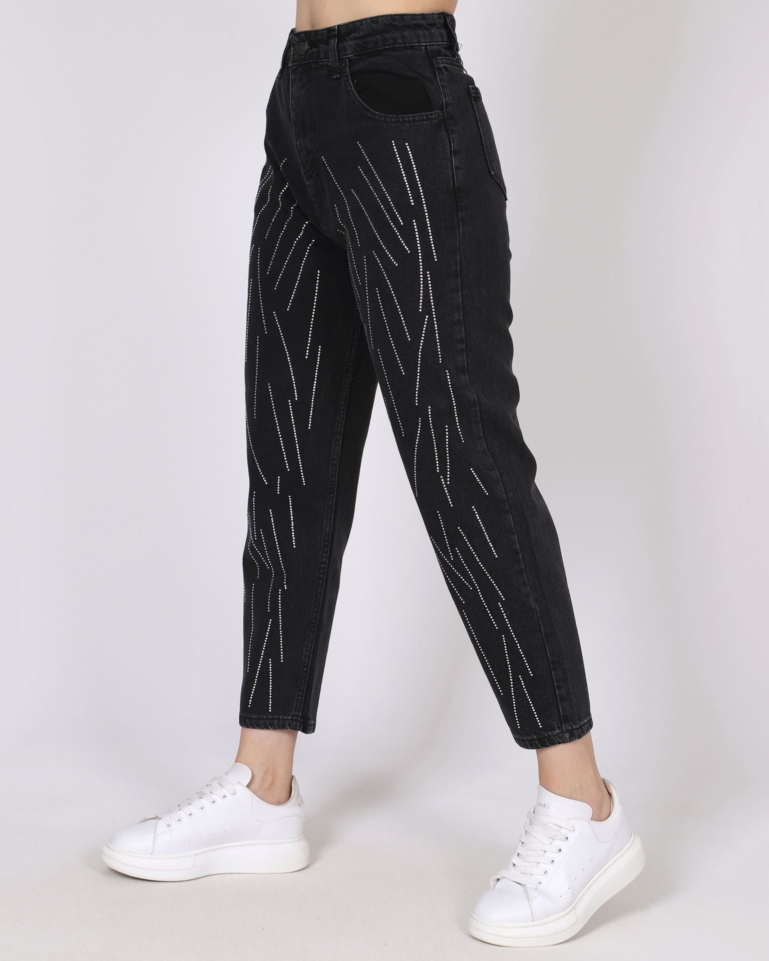 Koyu Füme Taşlı Balon Mom Jean PNT620
