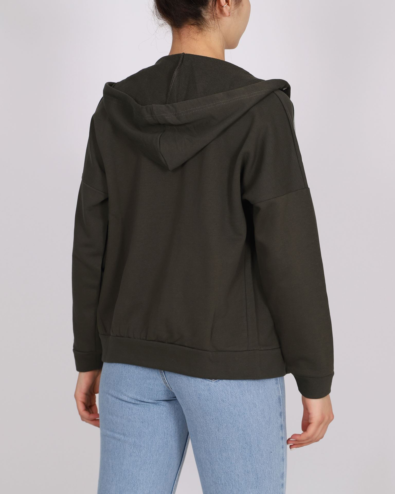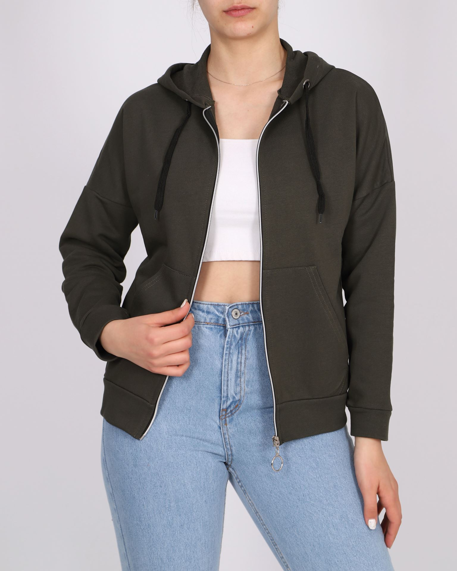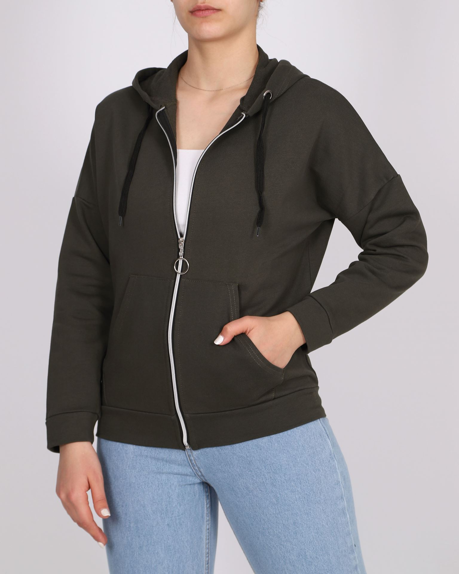 Koyu Haki Kapüşonlu Fermuarlı Sweat SWT903