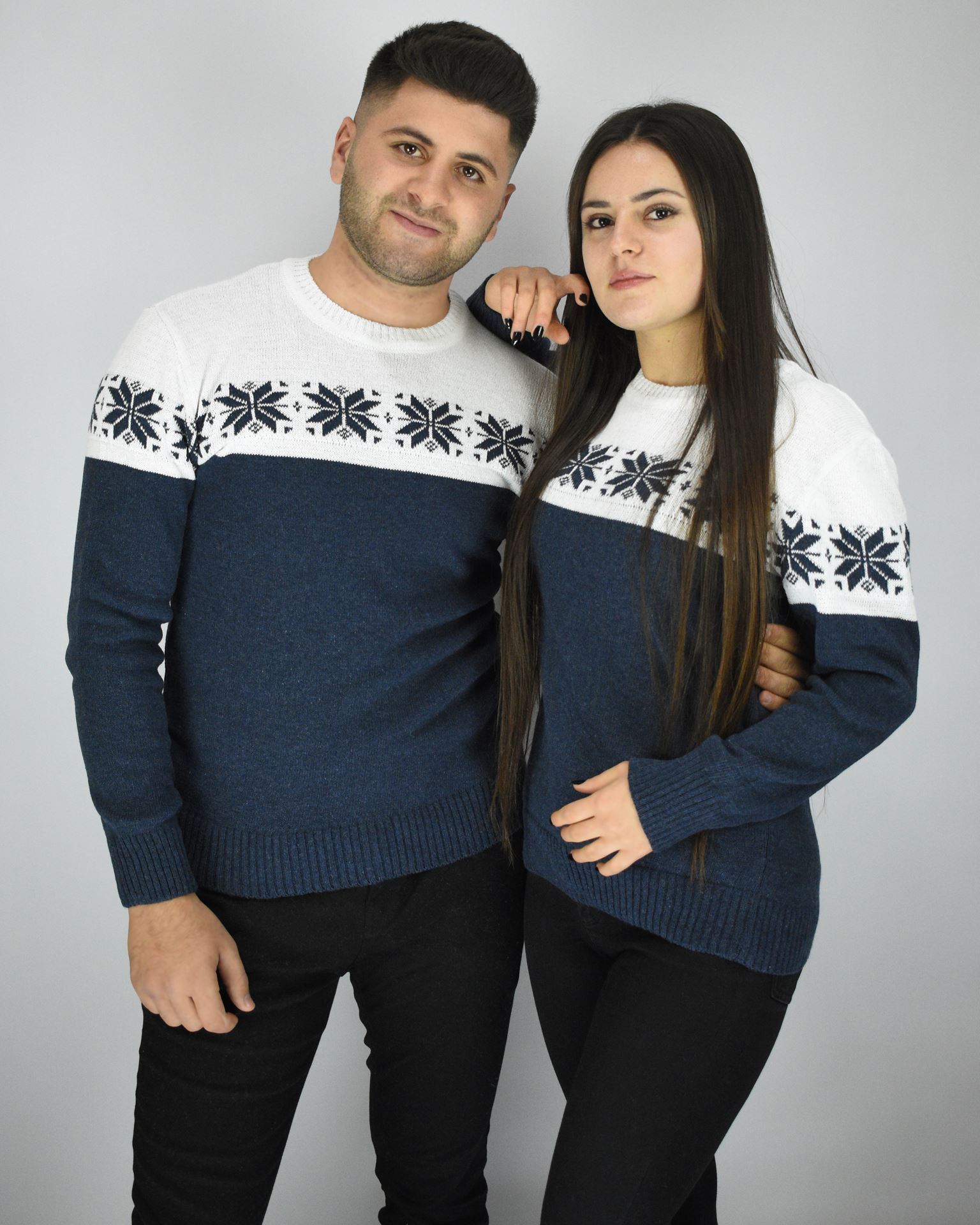 Koyu İndigo Nakışlı Triko Sevgili Kombini SVG399