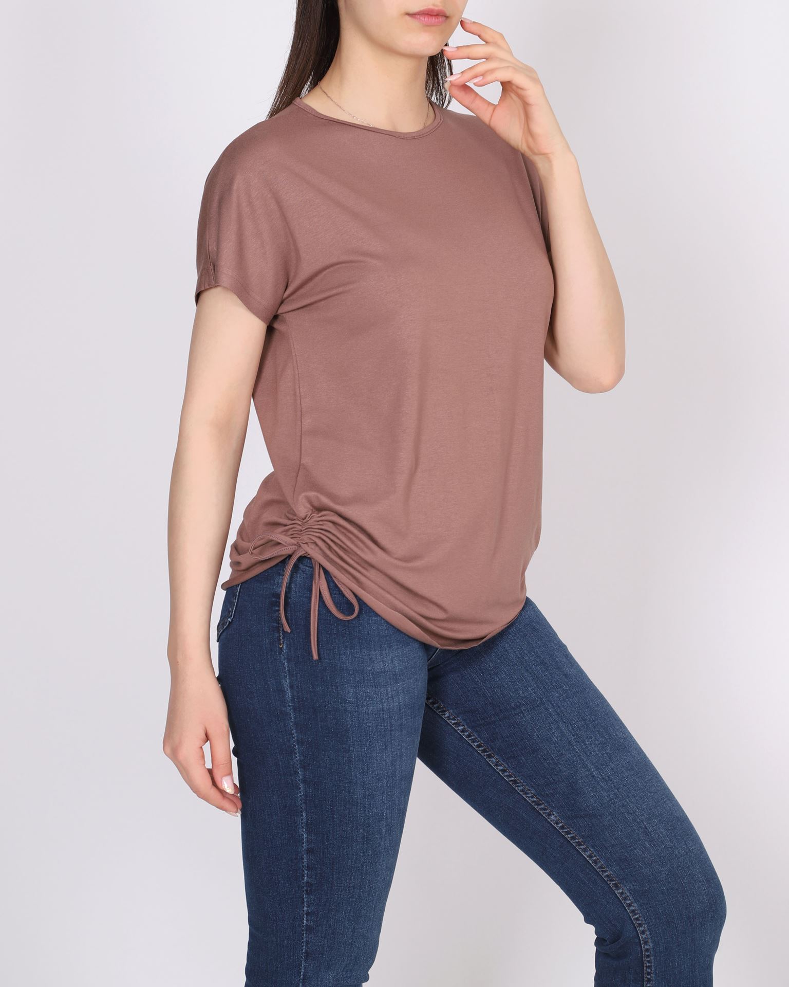 Koyu Vizon Büzgülü Tasarım Viskon Bluz BLZ413