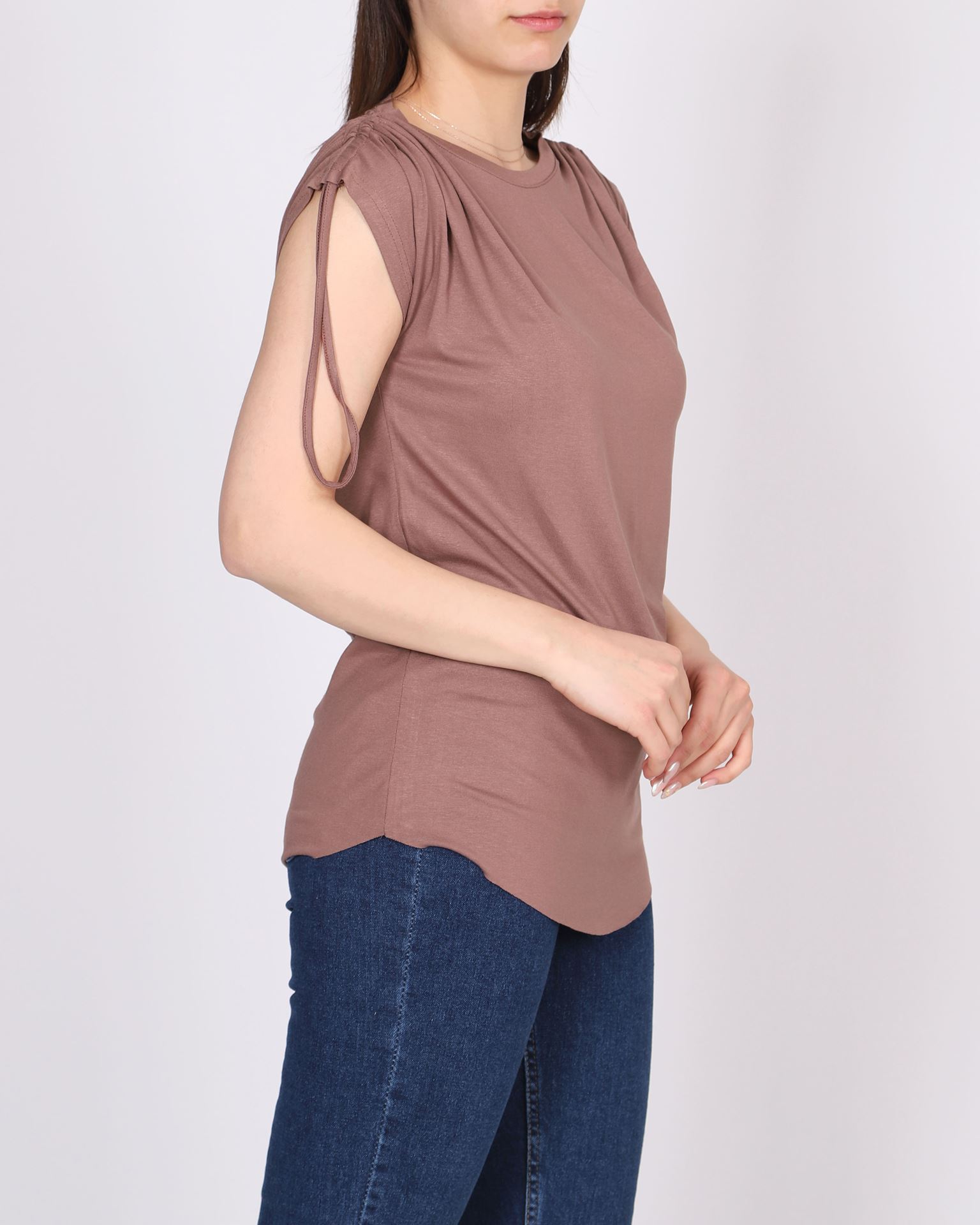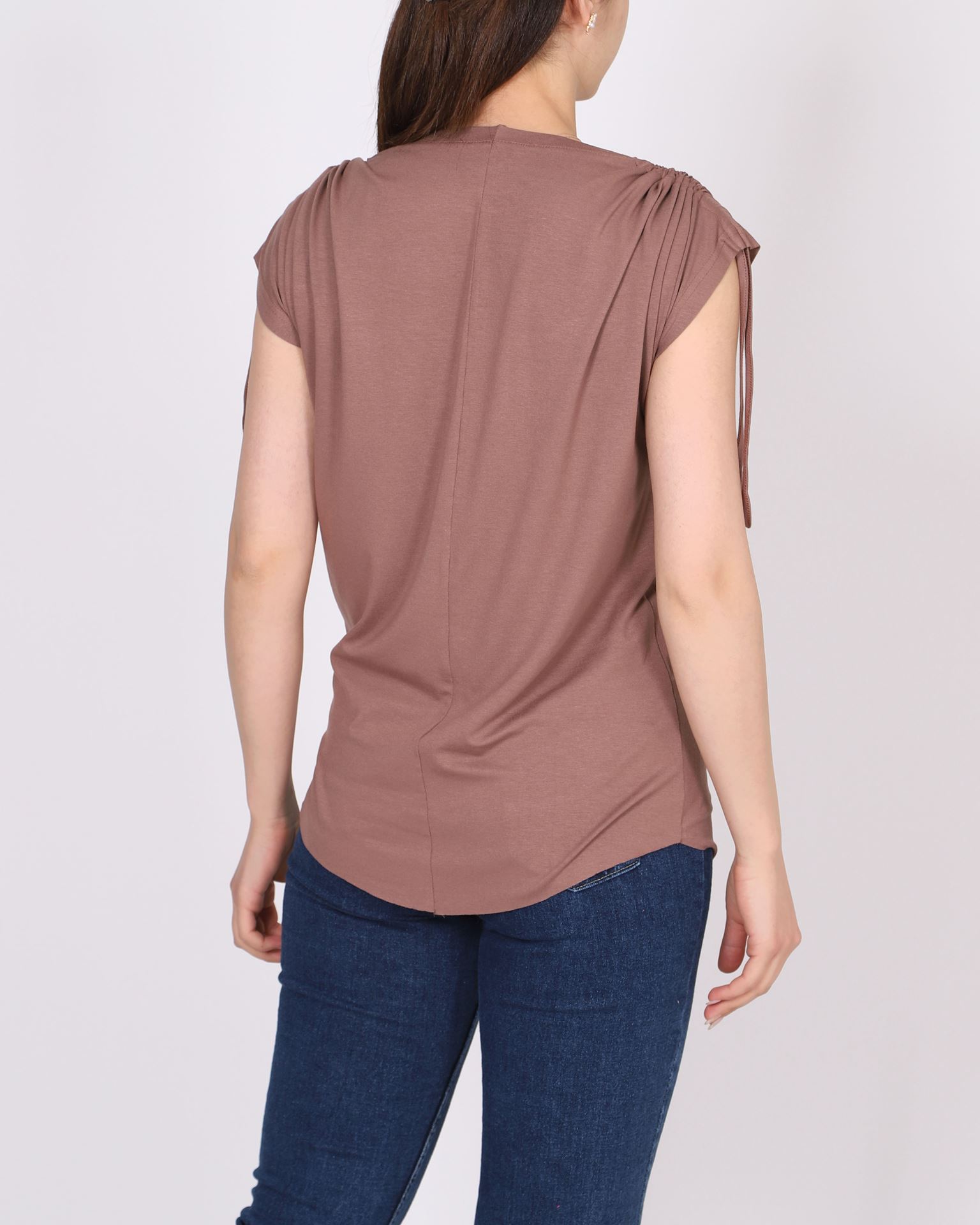 Koyu Vizon Omuz Büzgülü Viskon Bluz BLZ370