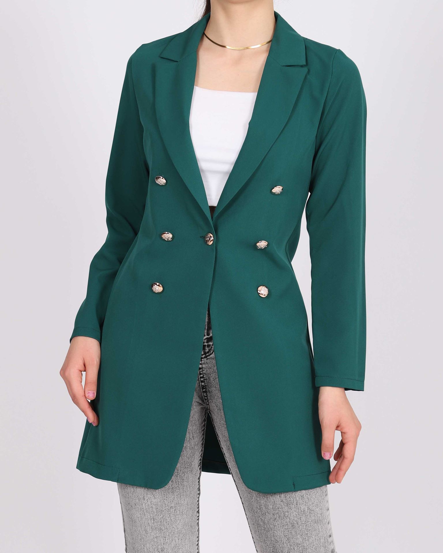 Koyu Yeşil Düğmeli Uzun Ceket CKT333