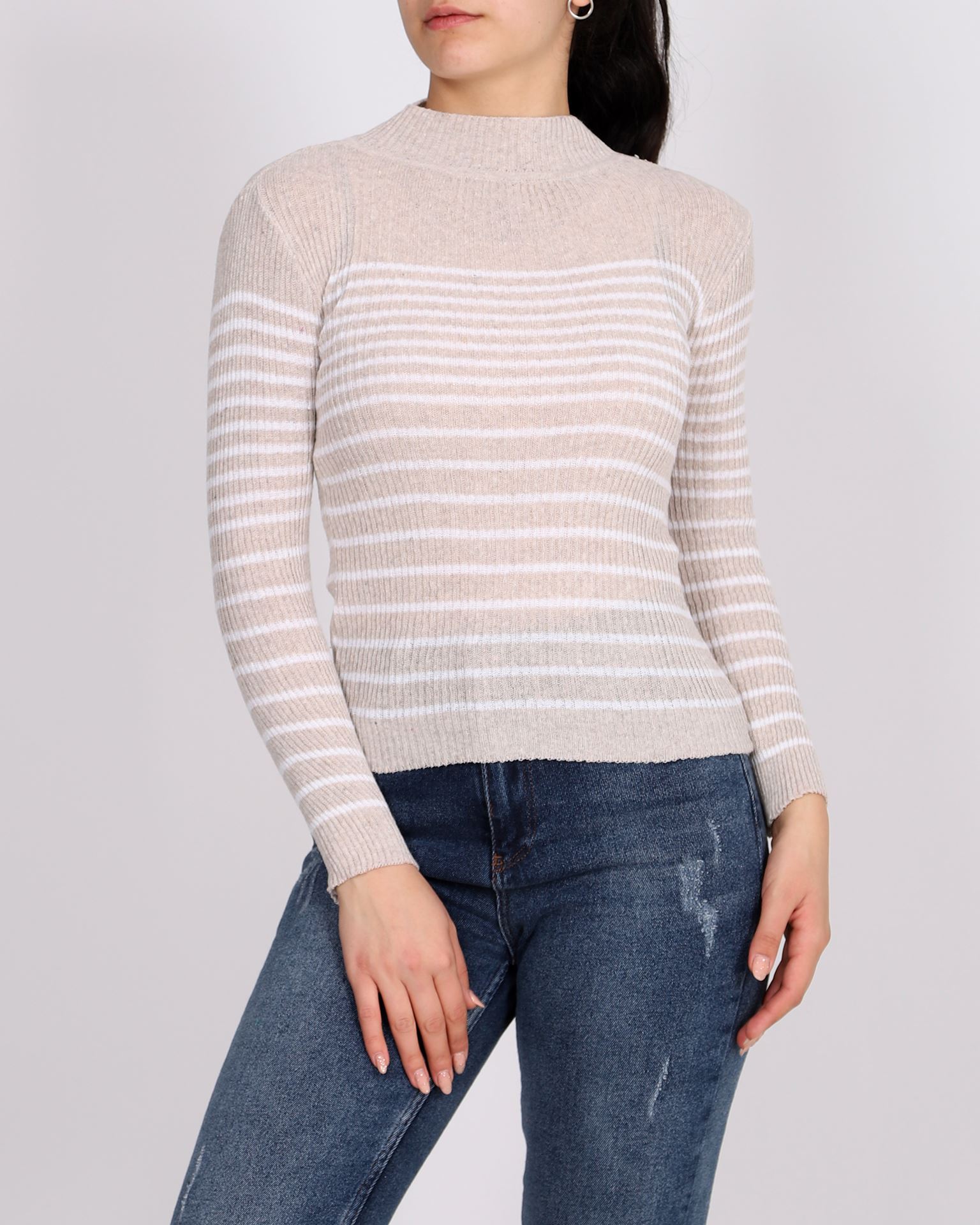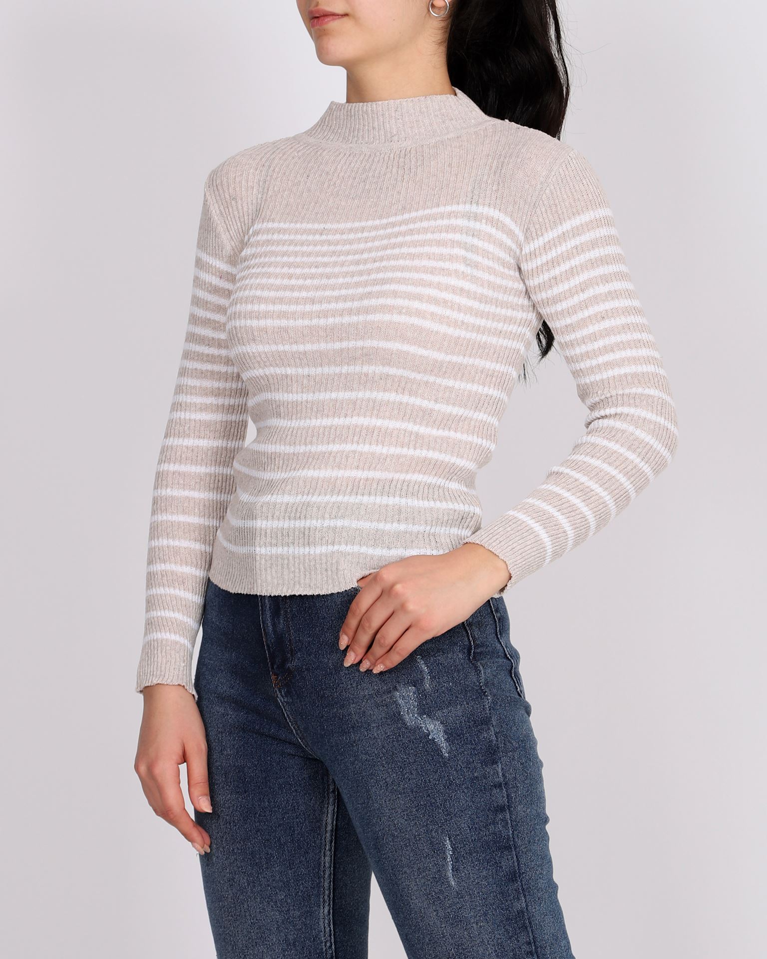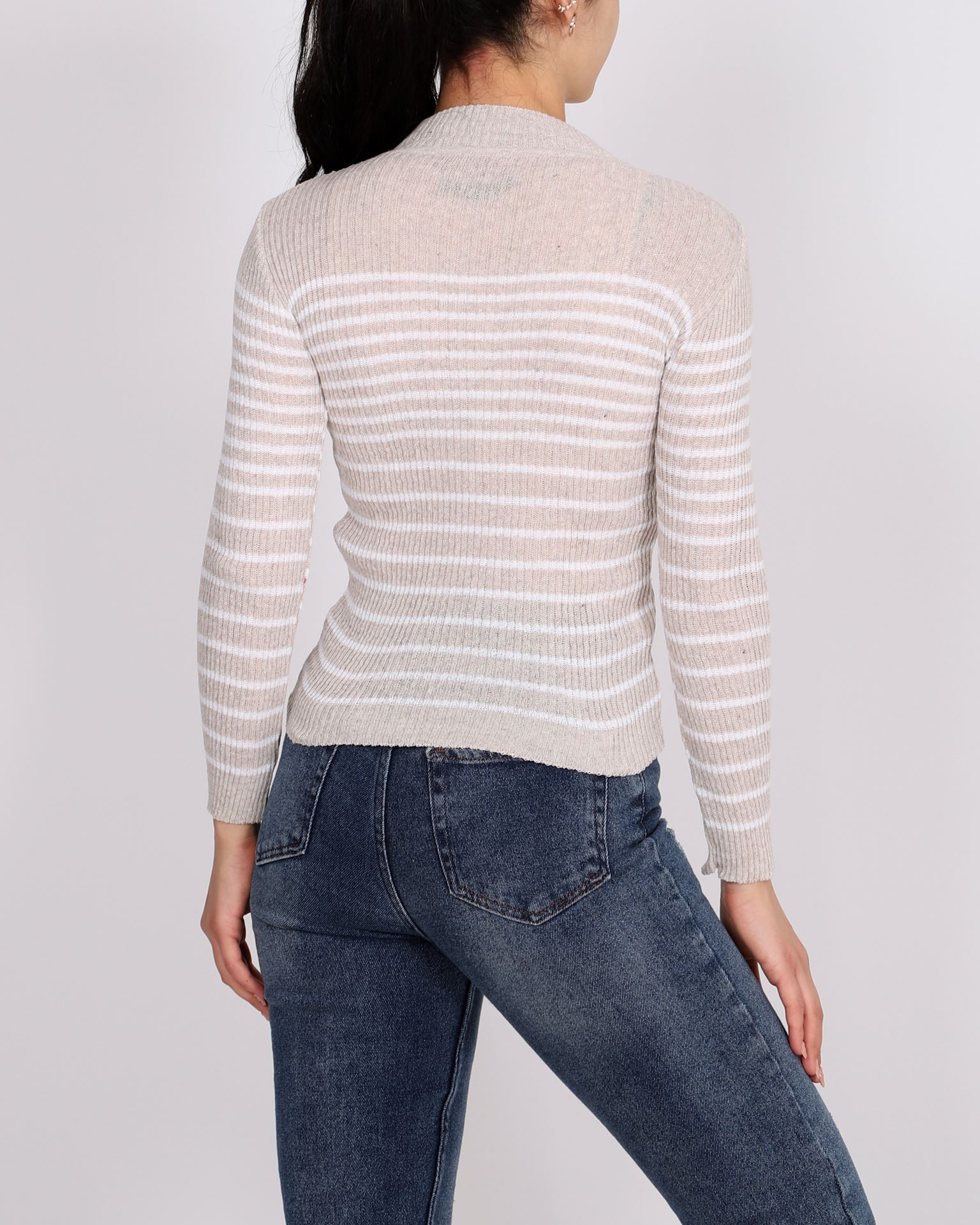 Krem Çizgili Yarım Balıkçı Triko KZK609
