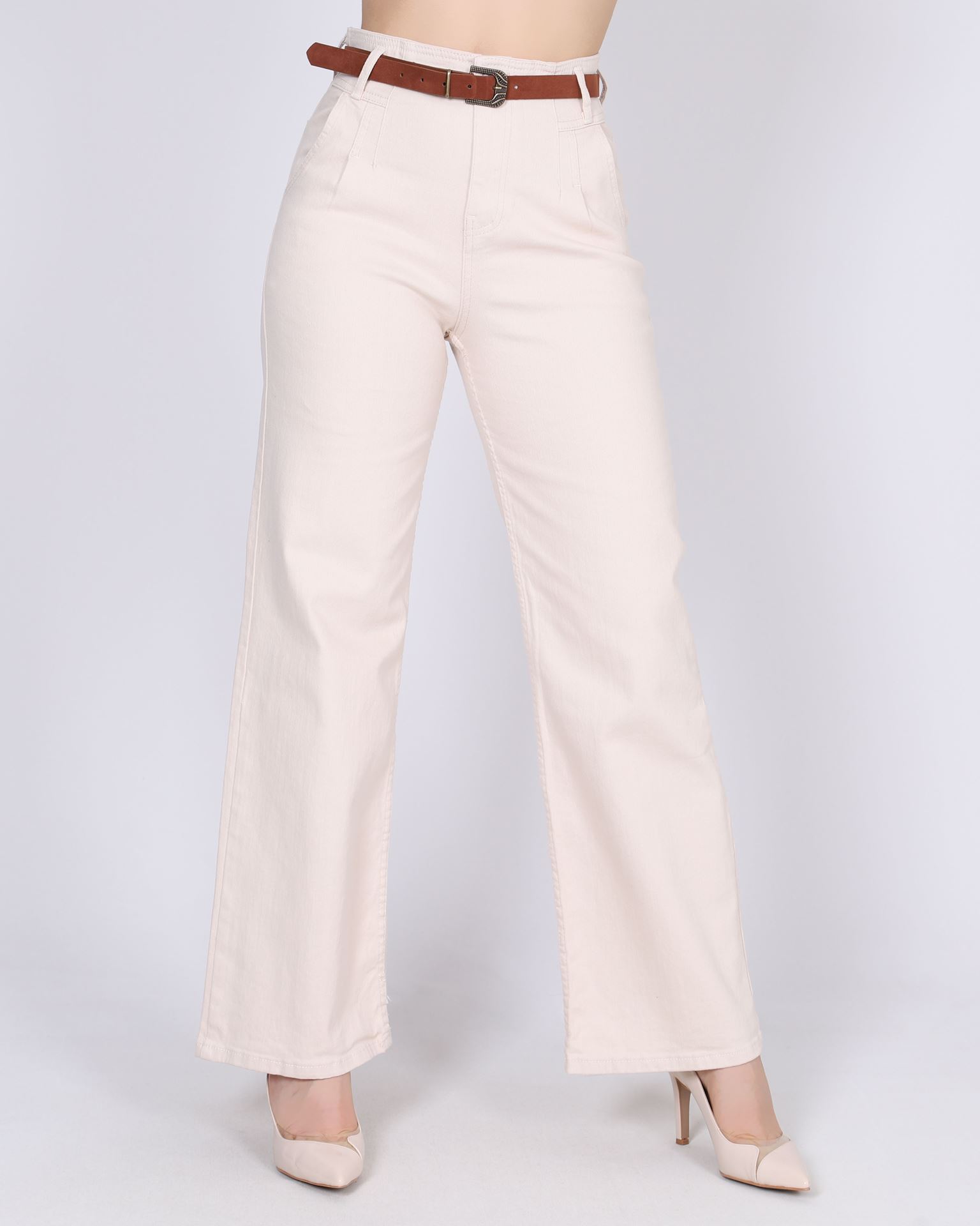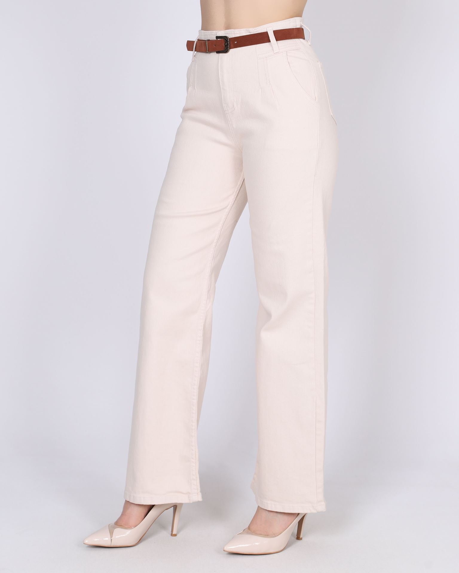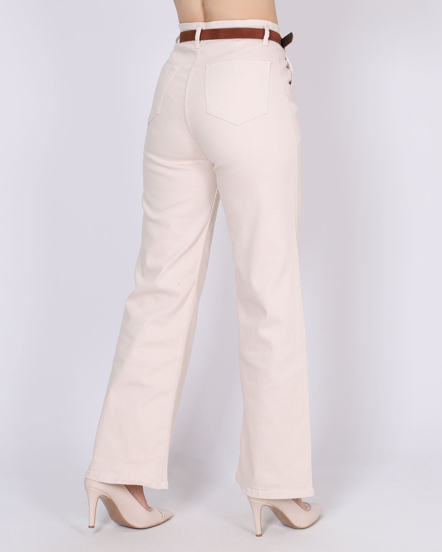 Krem Kemerli Palazzo Kot Pantolon PNT716