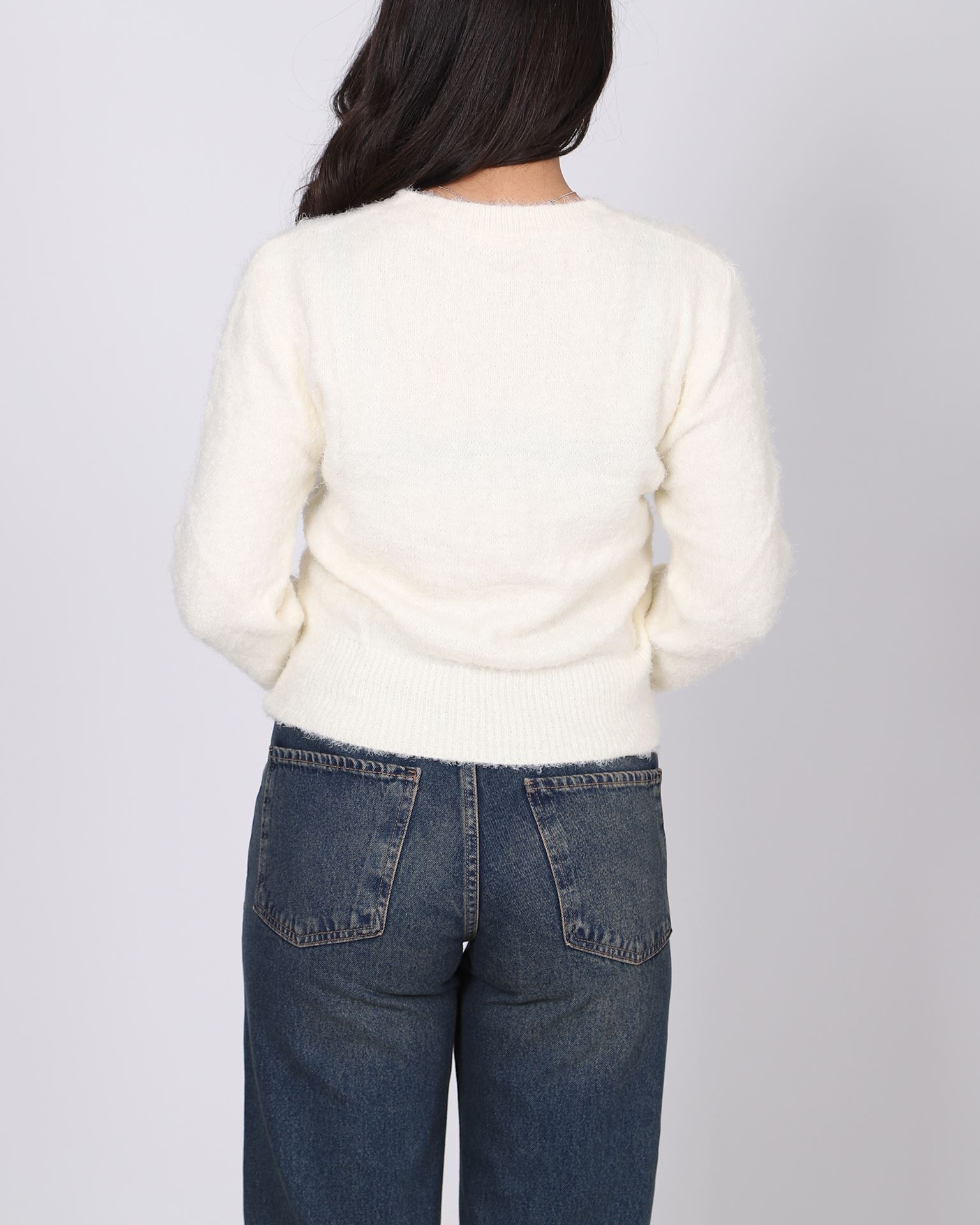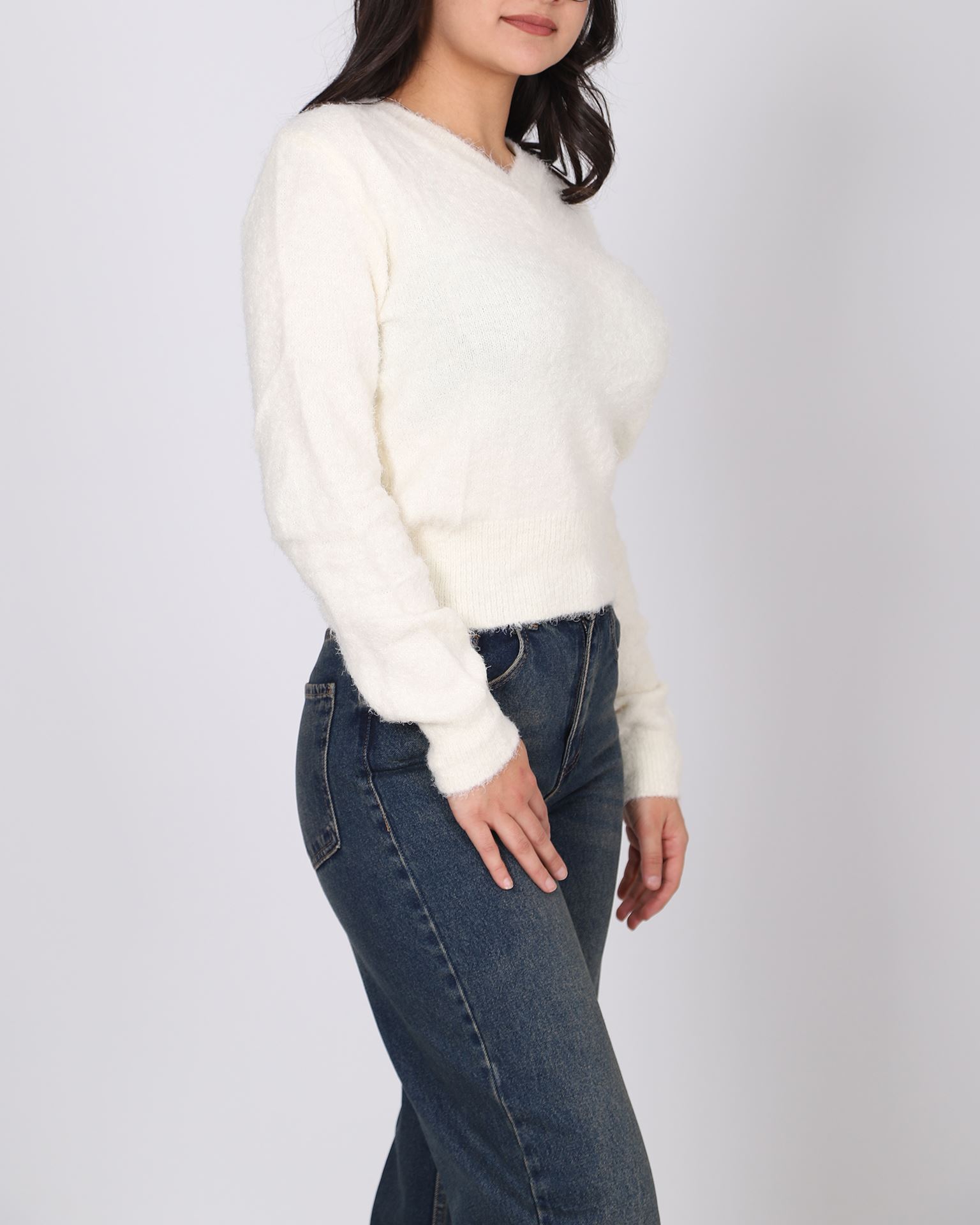 Krem Yumoş V Yaka Kazak KZK648