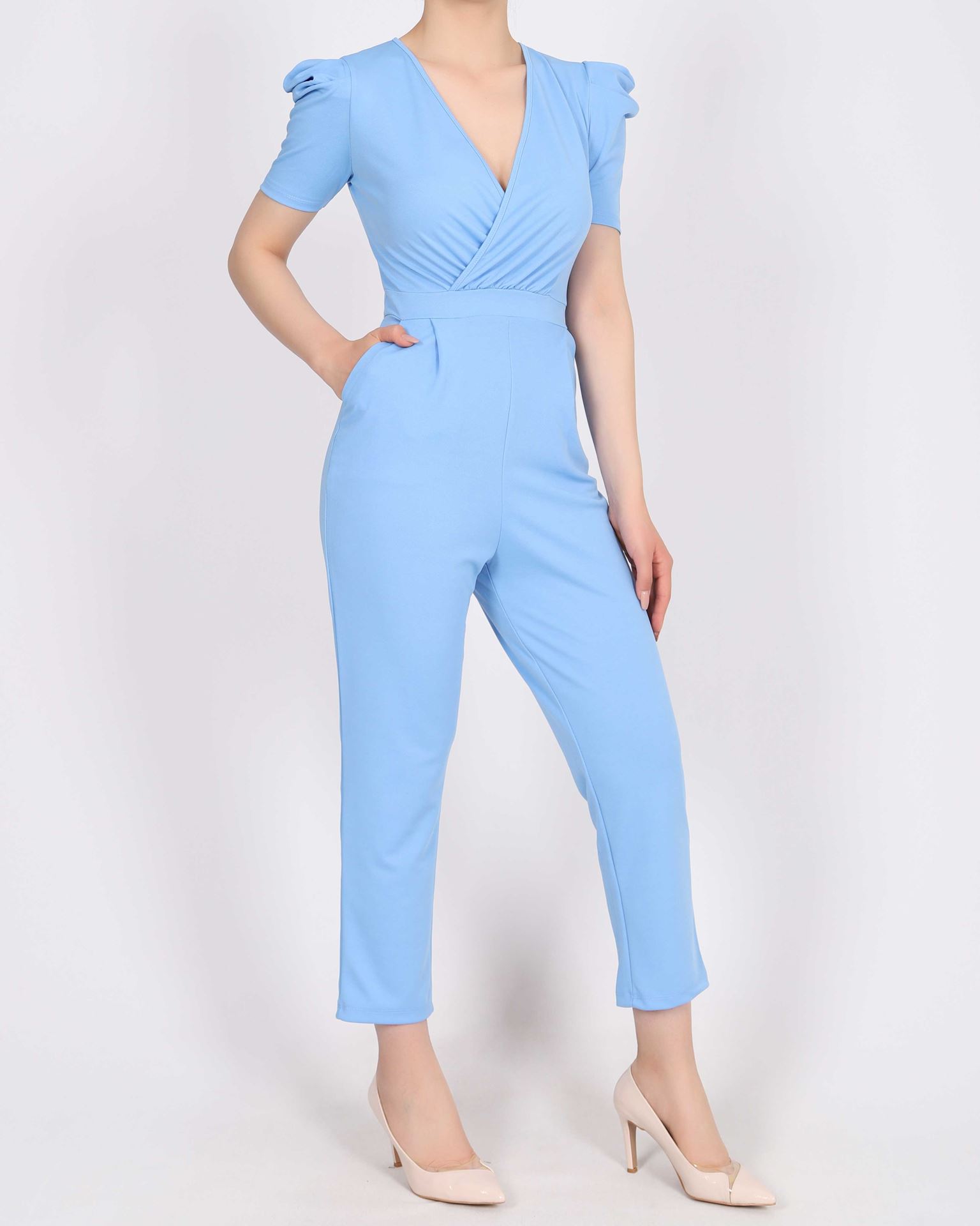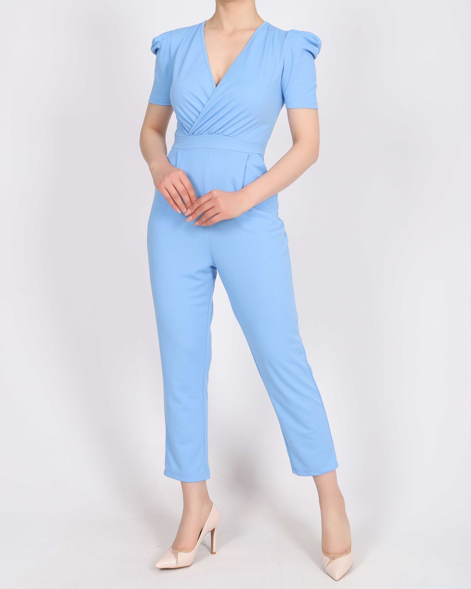 Kruvaze Yaka Prenses Kol Bebe Mavisi Tulum TLM353
