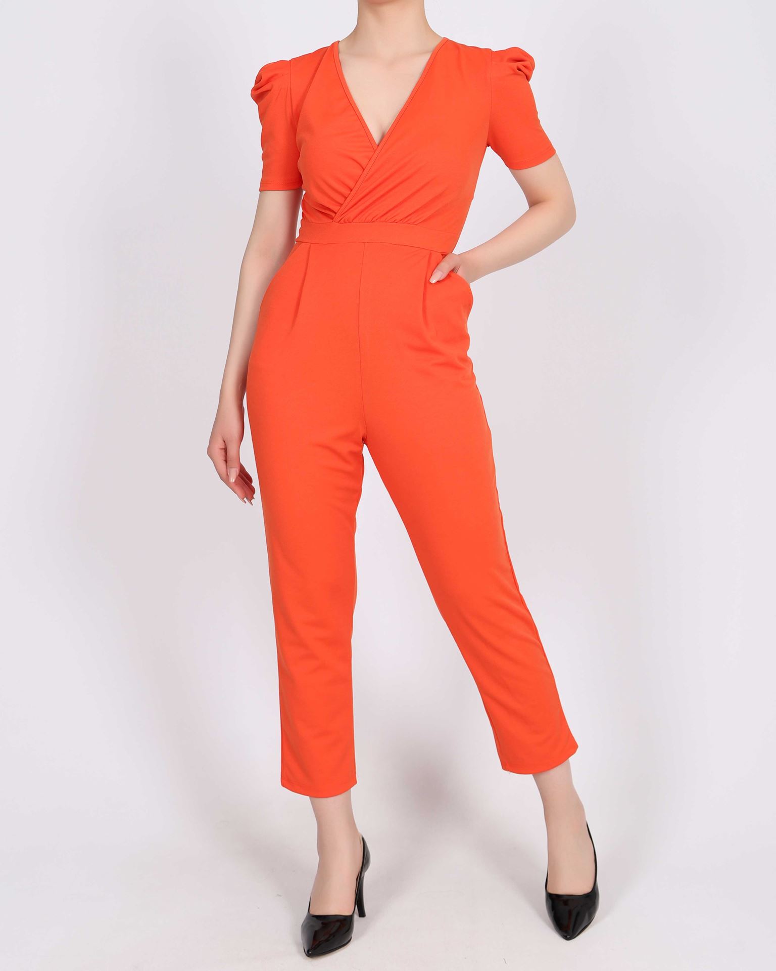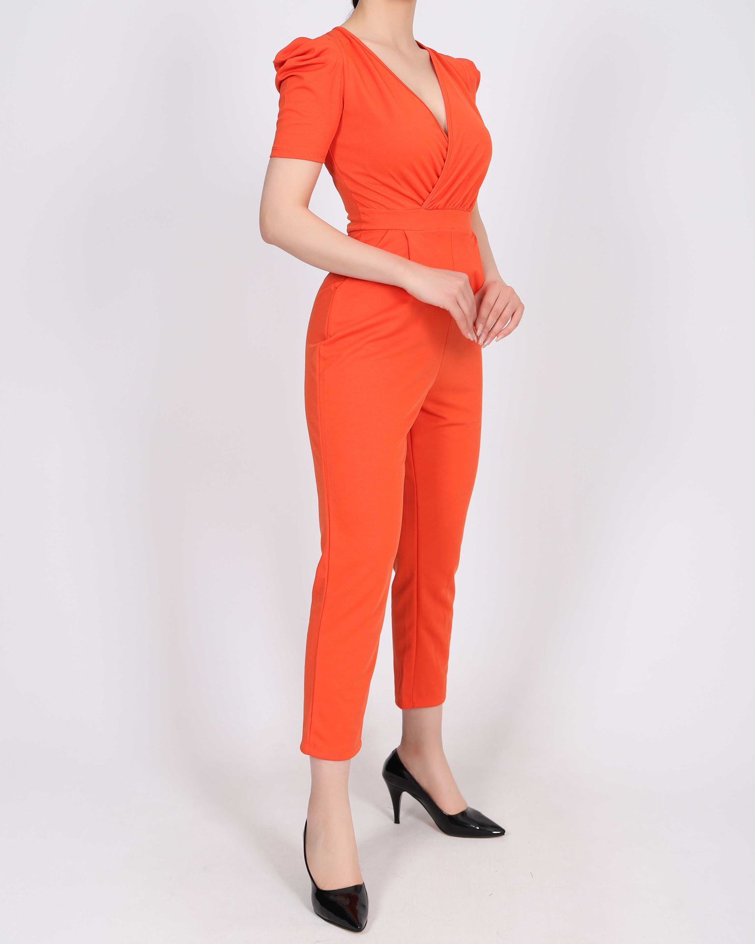 Kruvaze Yaka Prenses Kol Turuncu Tulum TLM351