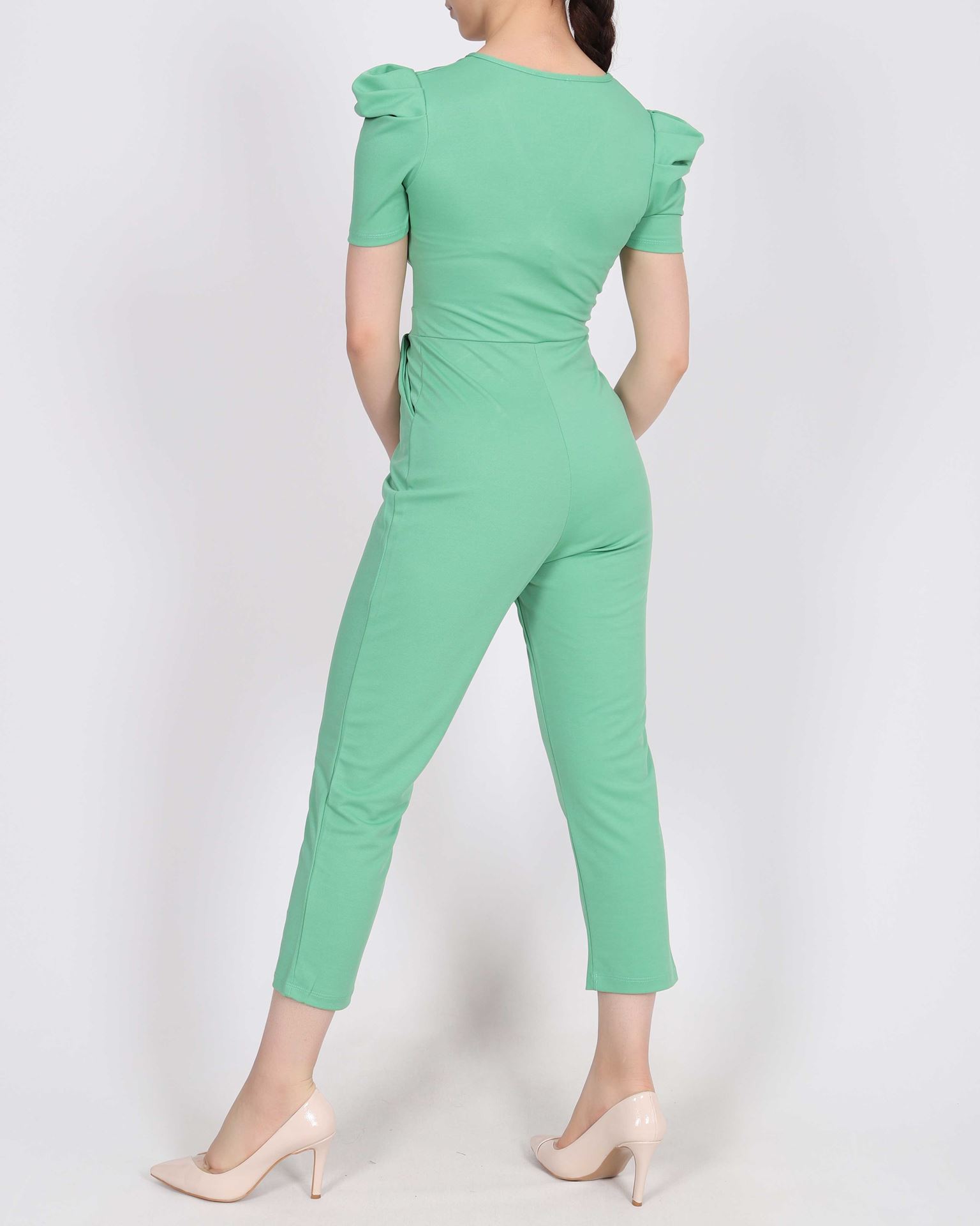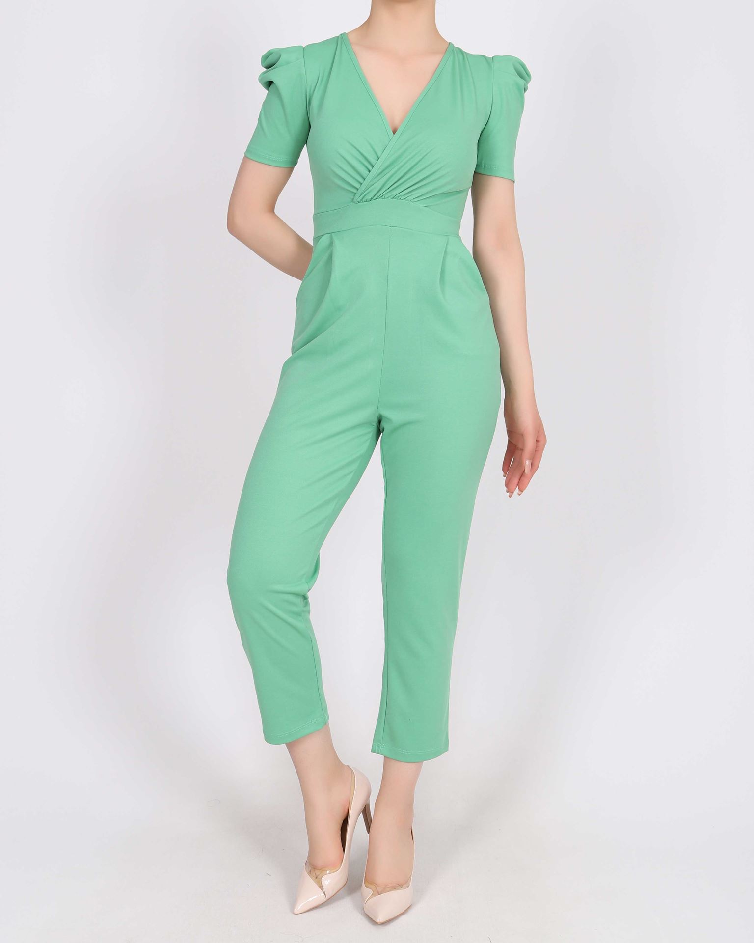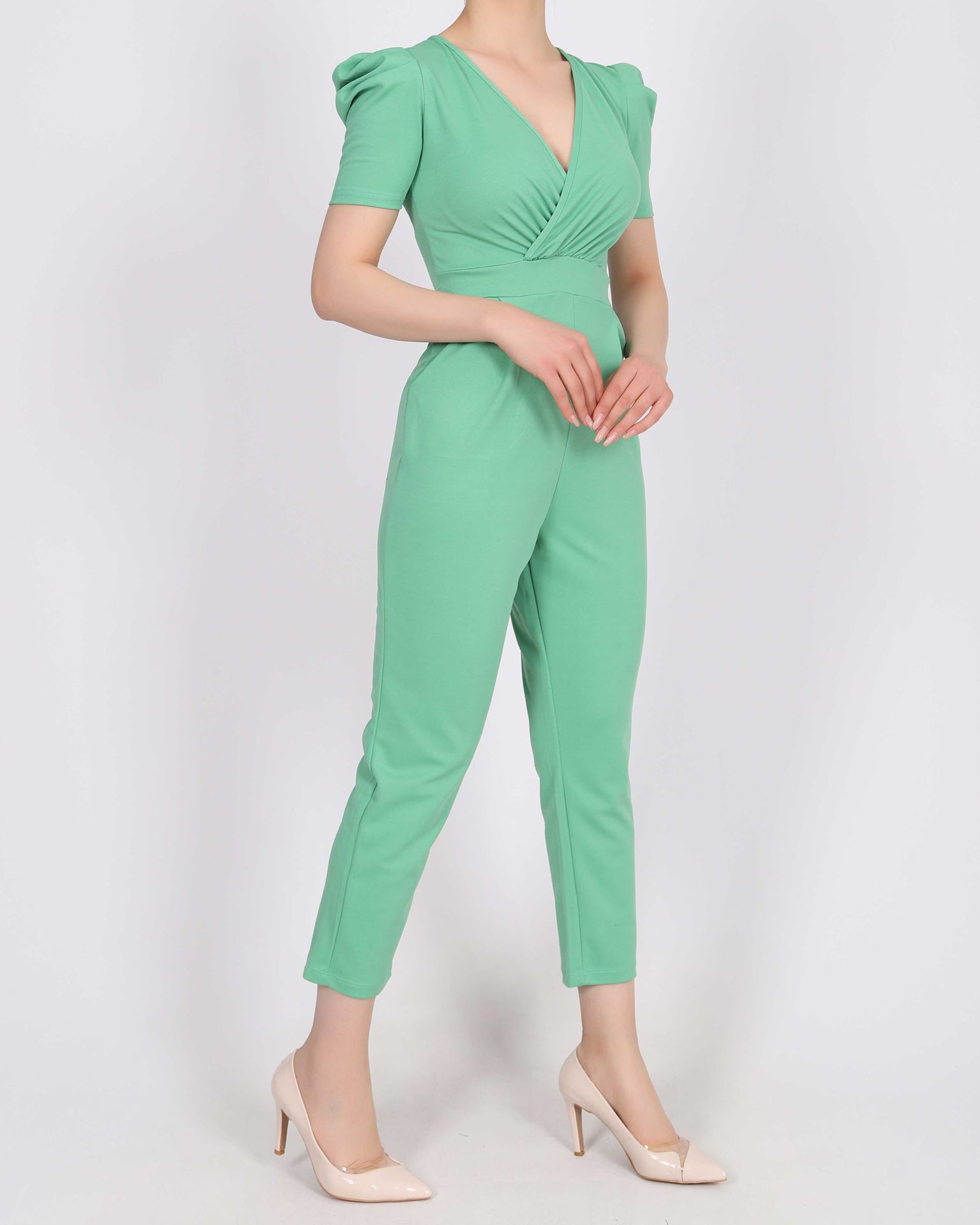 Kruvaze Yaka Prenses Kol Yeşil Tulum TLM352