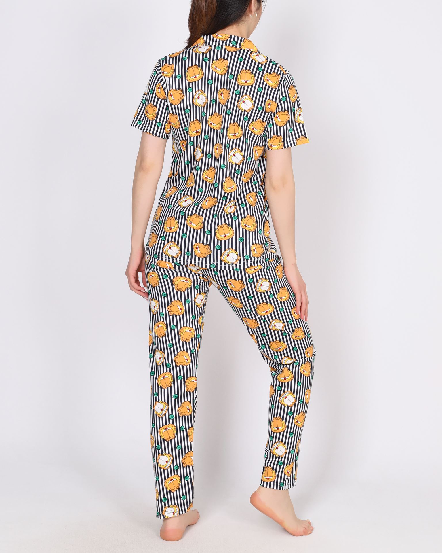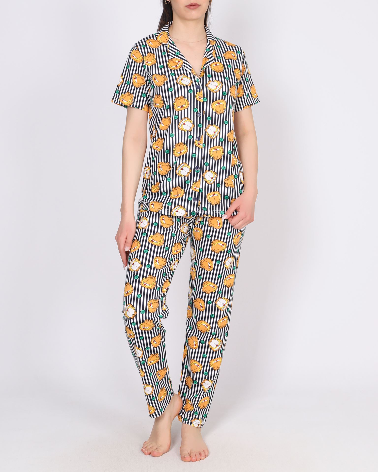 Lacivert Çizgili Düğmeli Kısa Kol Pijama Takımı PJM1892