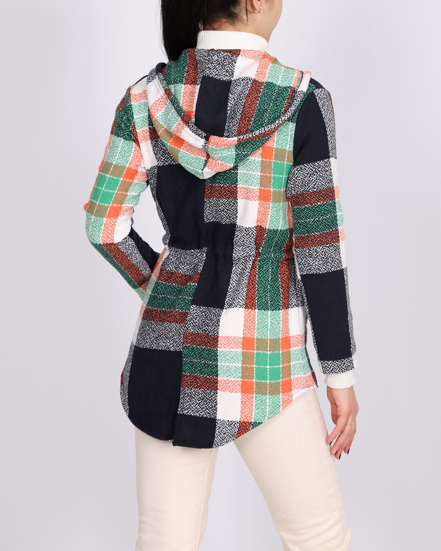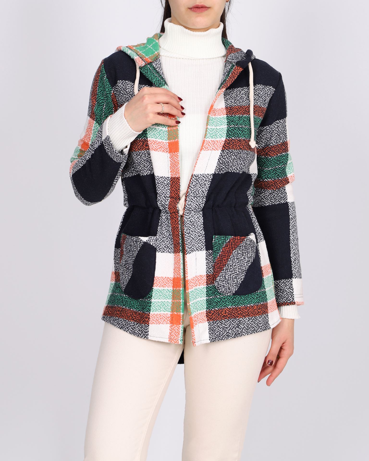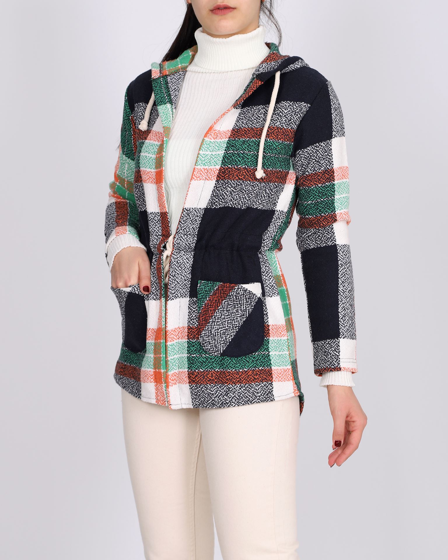 Lacivert Ekoseli Kapüşonlu Hırka HRK521