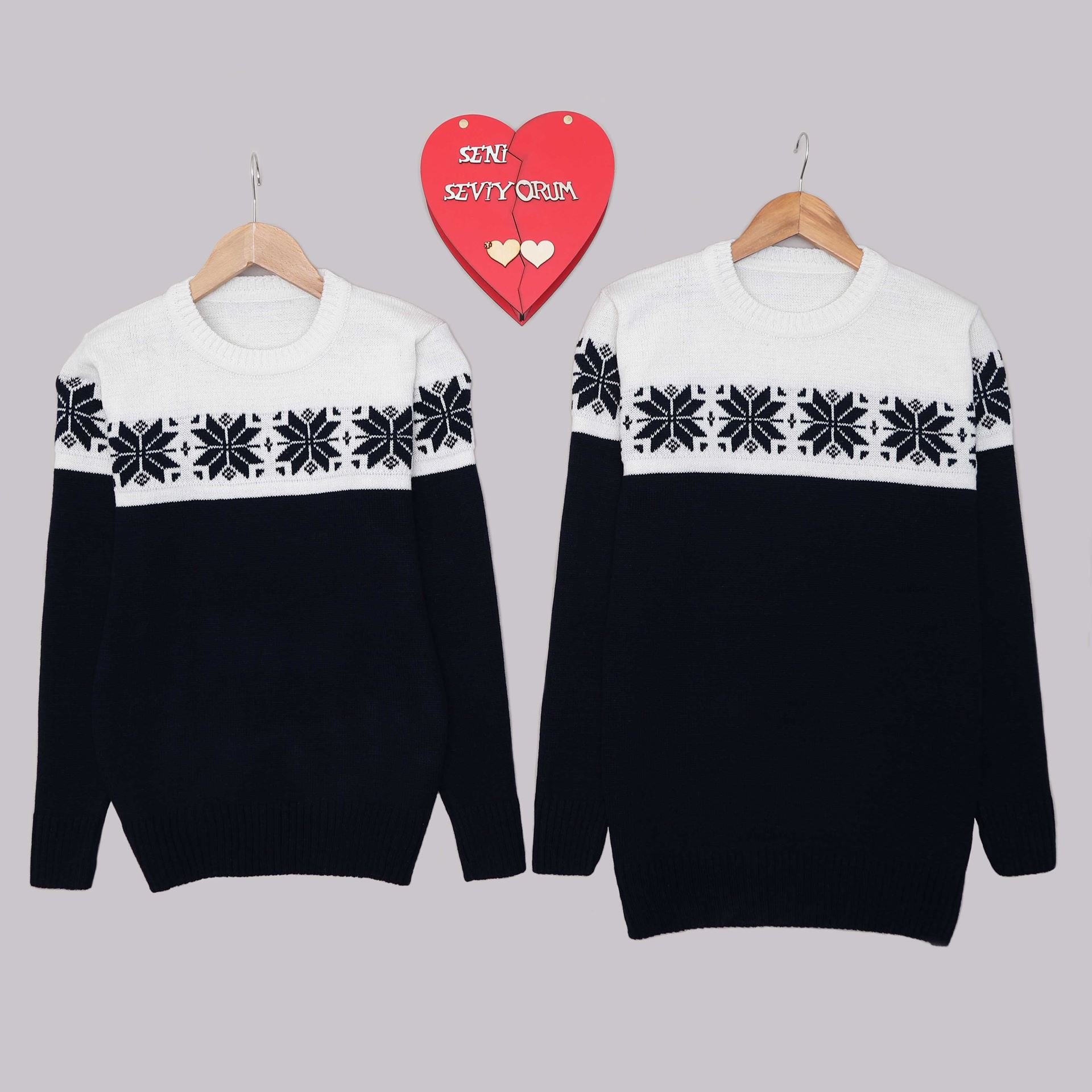 Lacivert Nakışlı Triko Sevgili Kombini SVG386