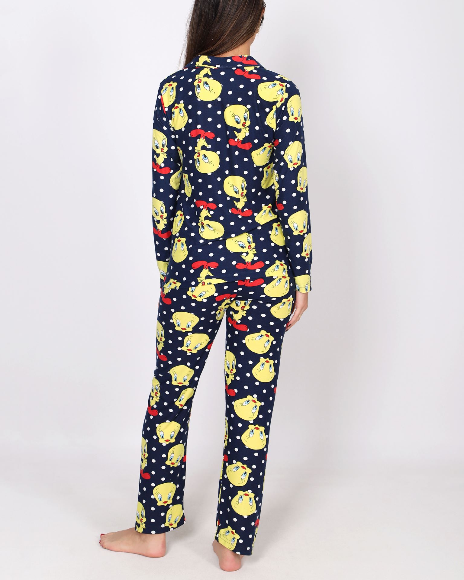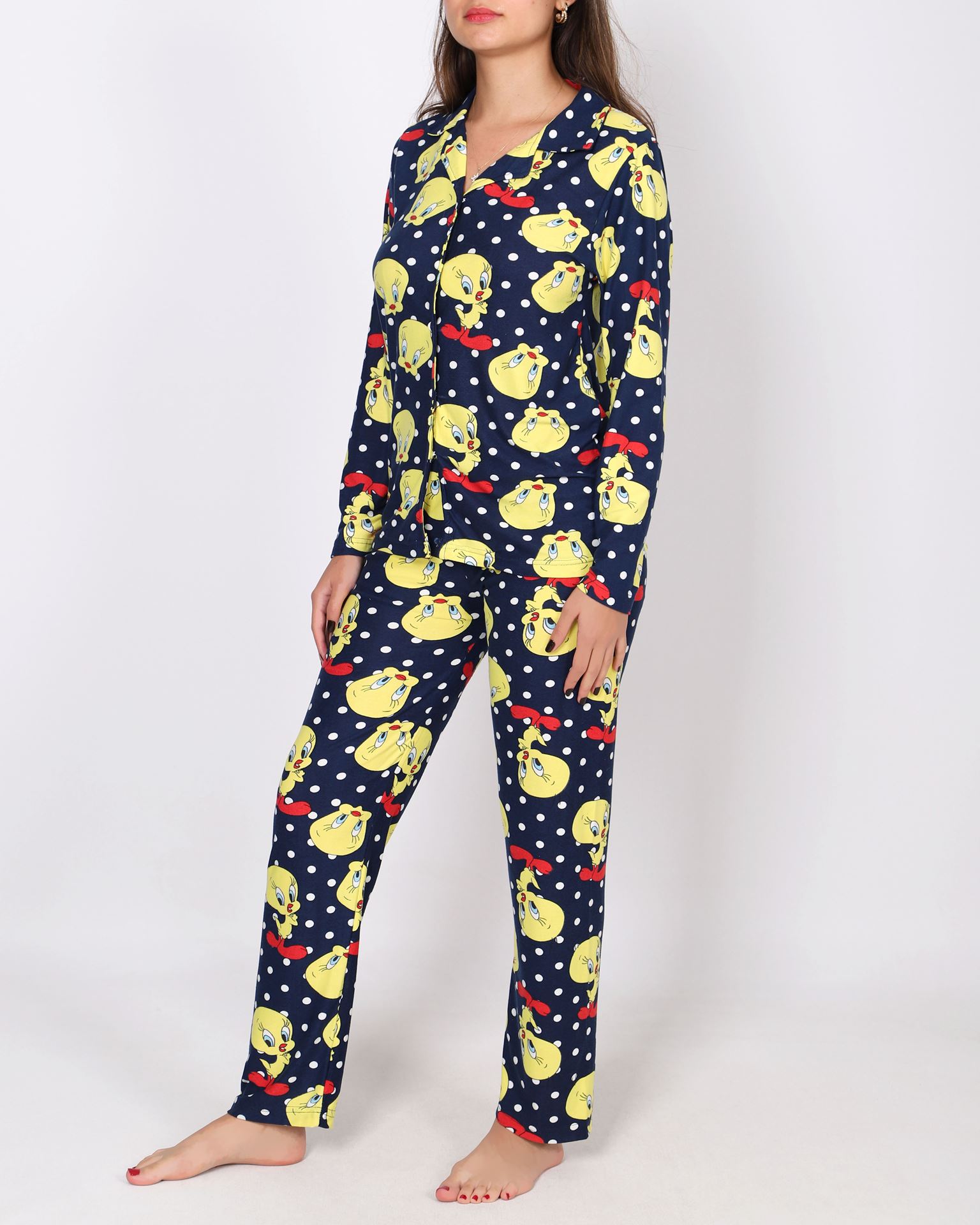 Lacivert Süet Düğmeli Pijama Takımı PJM2087
