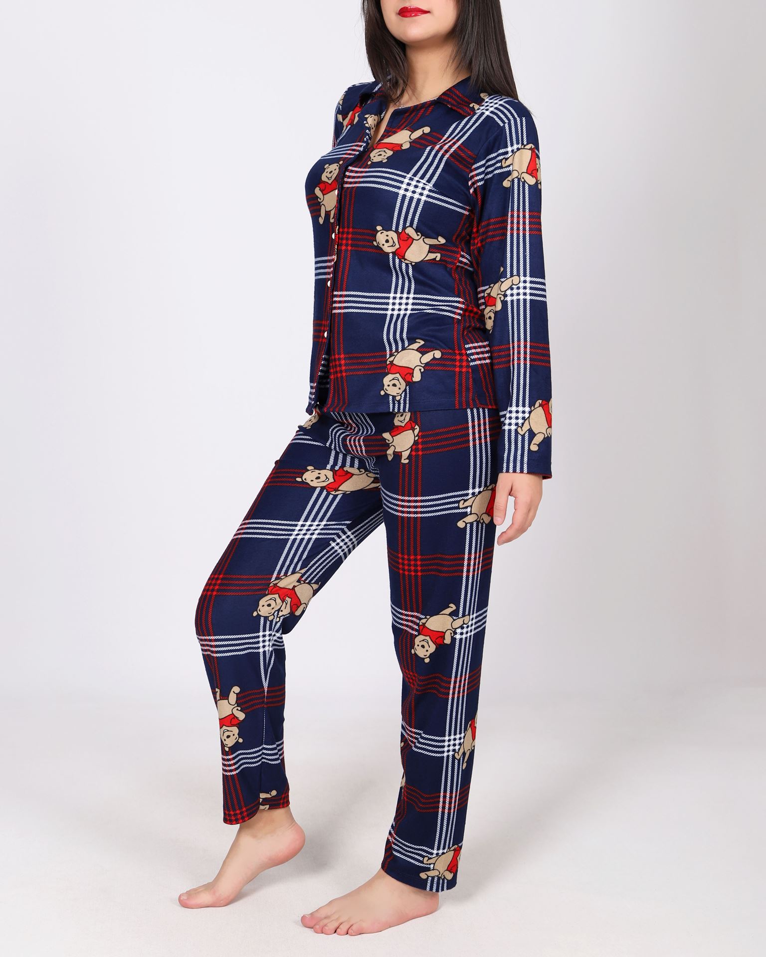 Lacivert Süet Düğmeli Pijama Takımı PJM2108