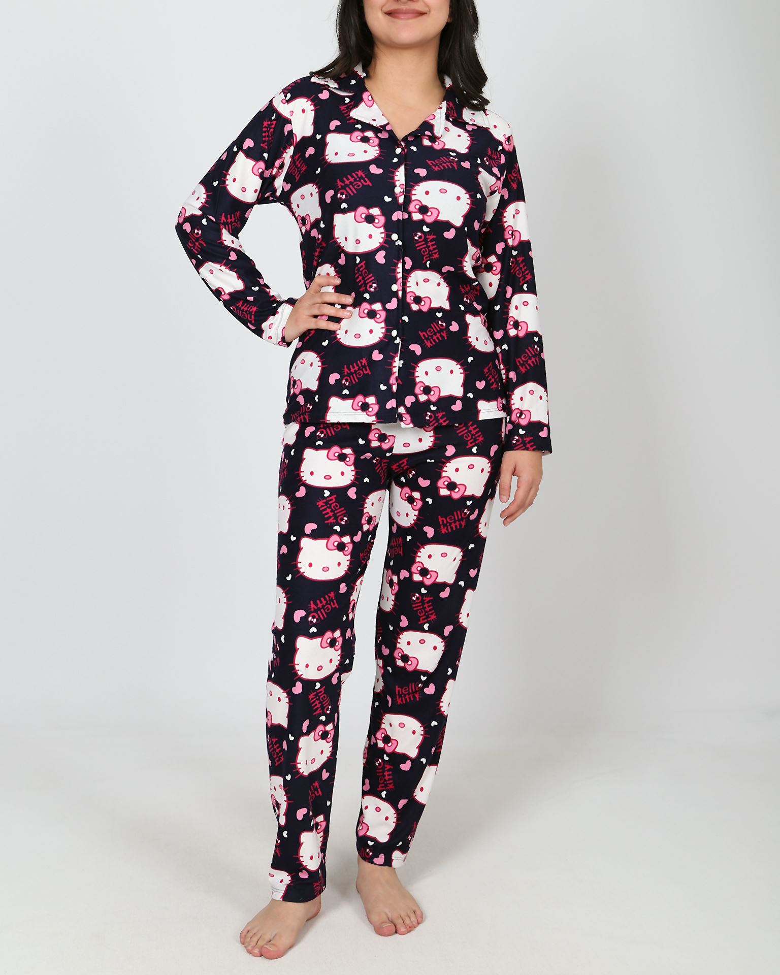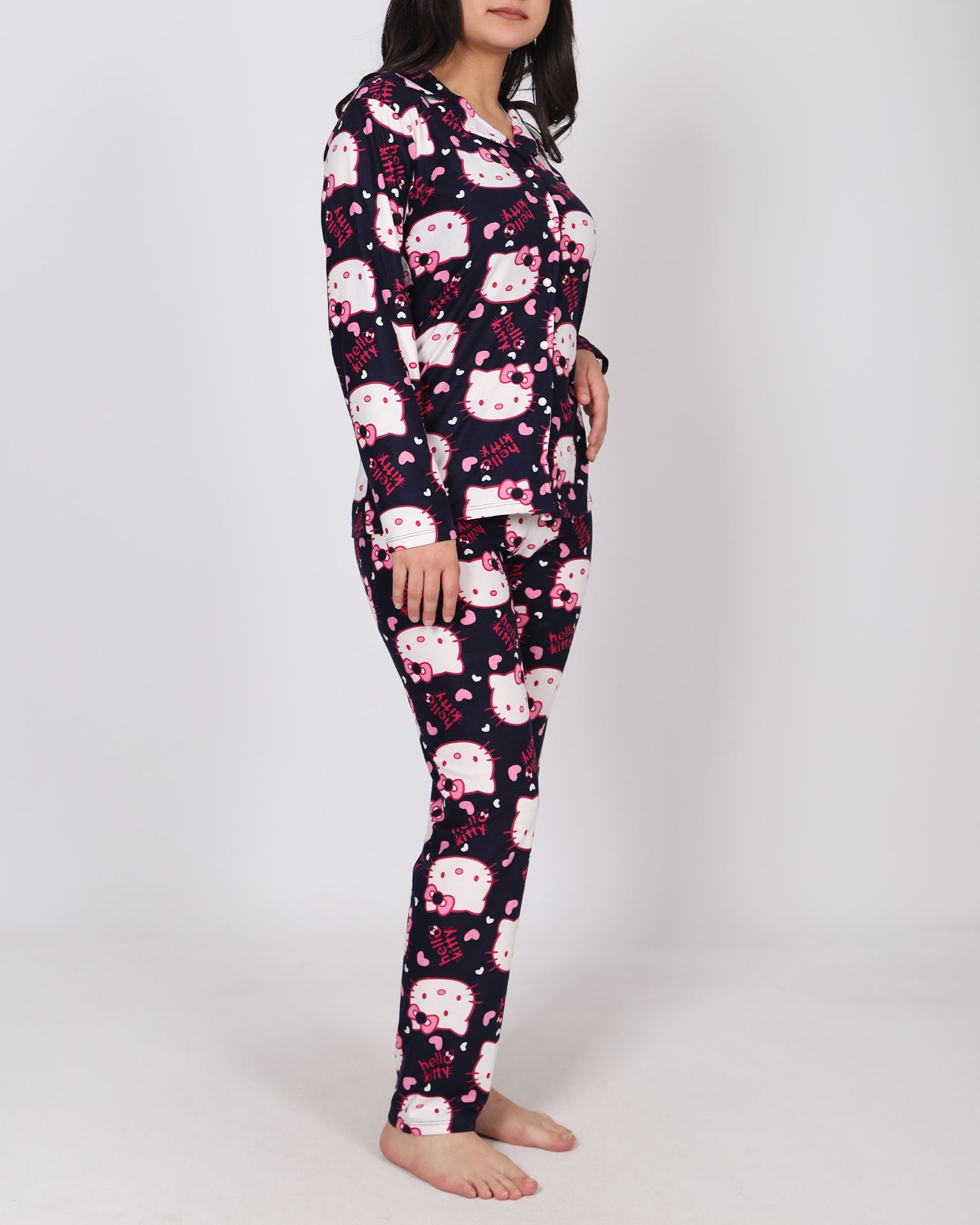 Lacivert Süet Düğmeli Pijama Takımı PJM2109