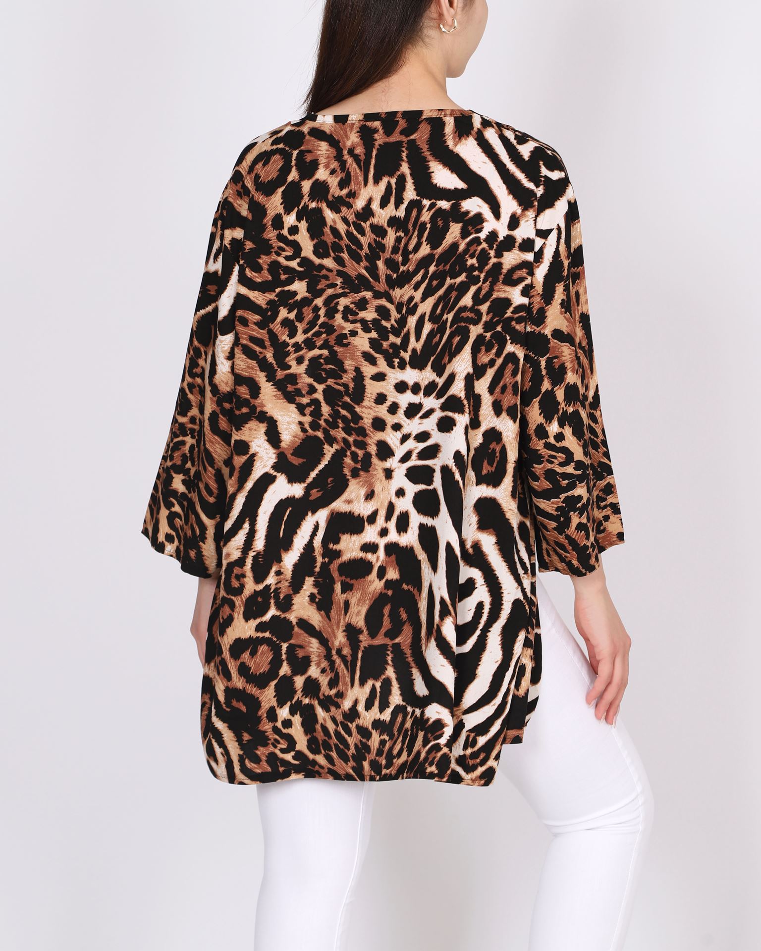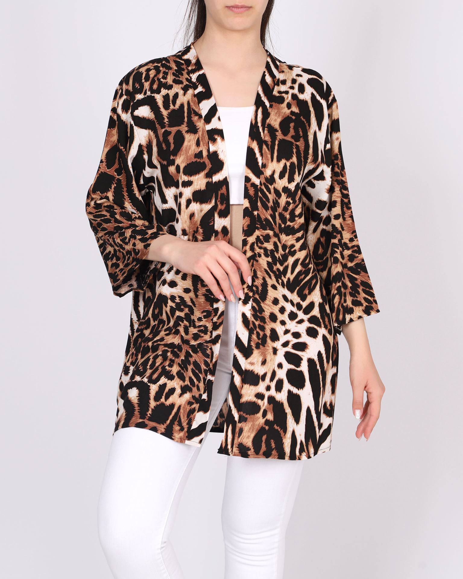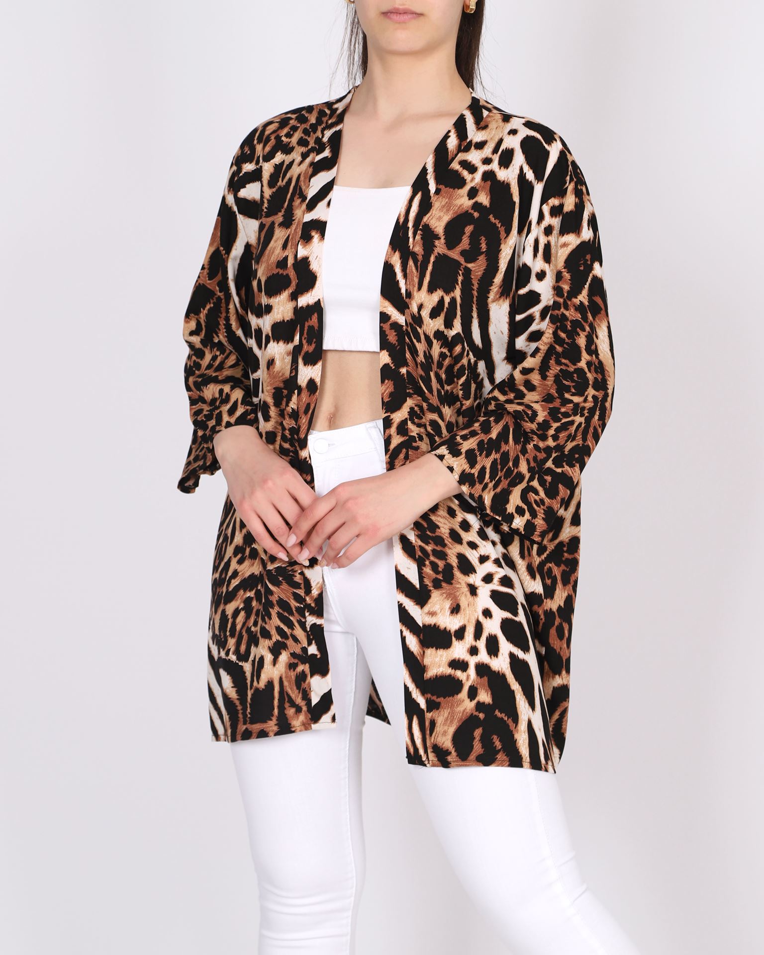 Leopar Desenli Dokuma Viskon Kimono CKT466