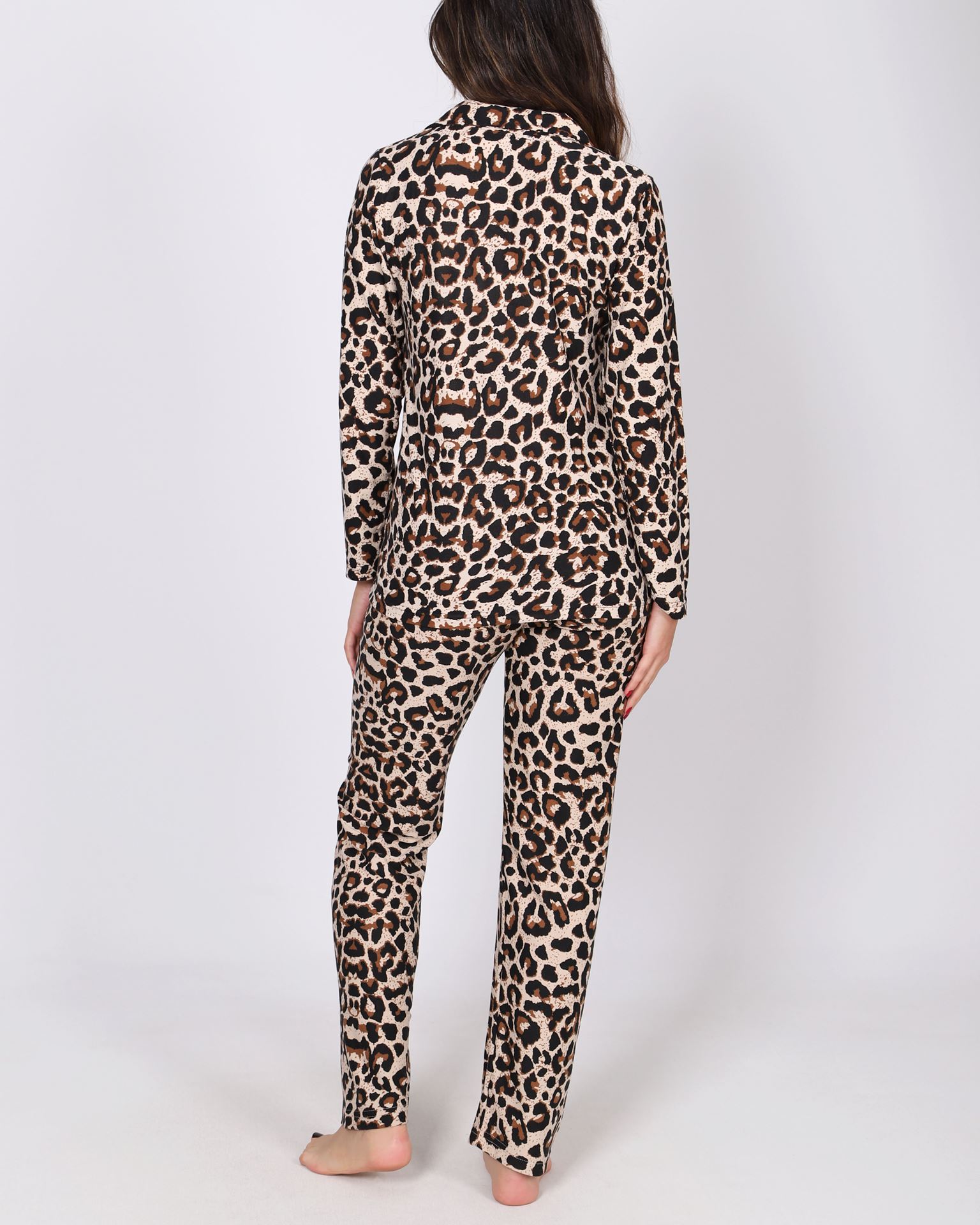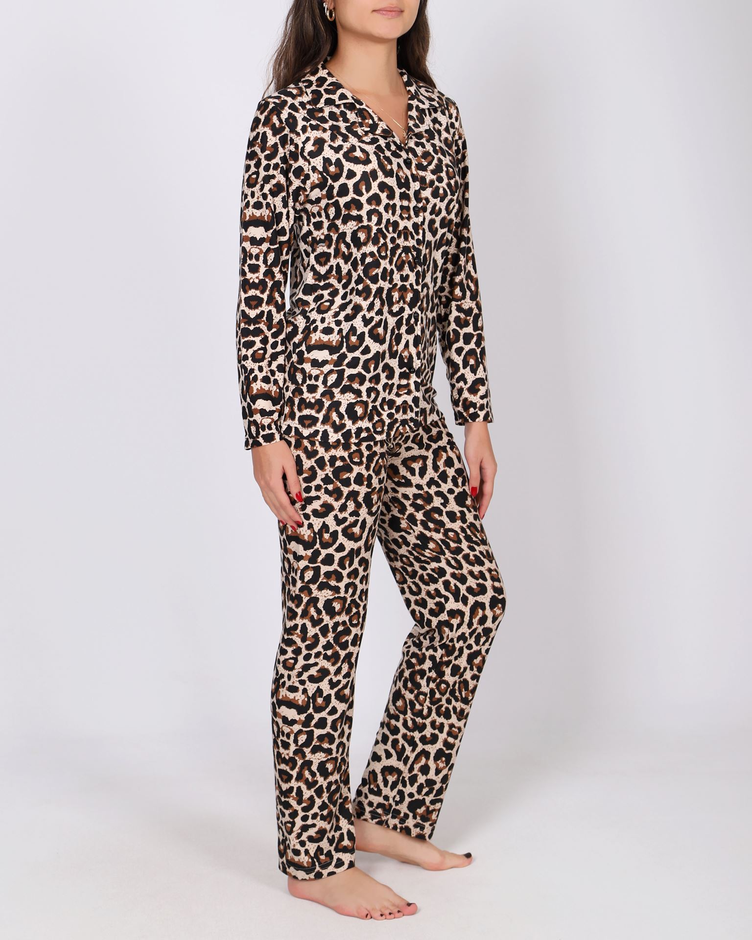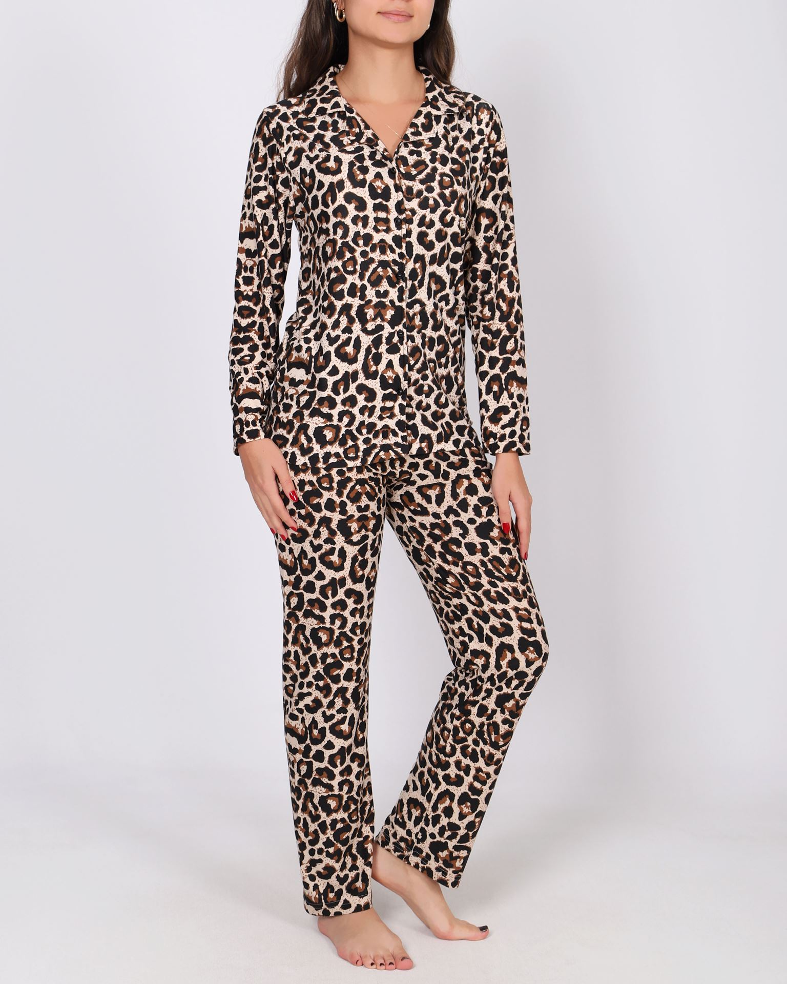 Leopar Desenli Süet Düğmeli Pijama Takımı PJM2098