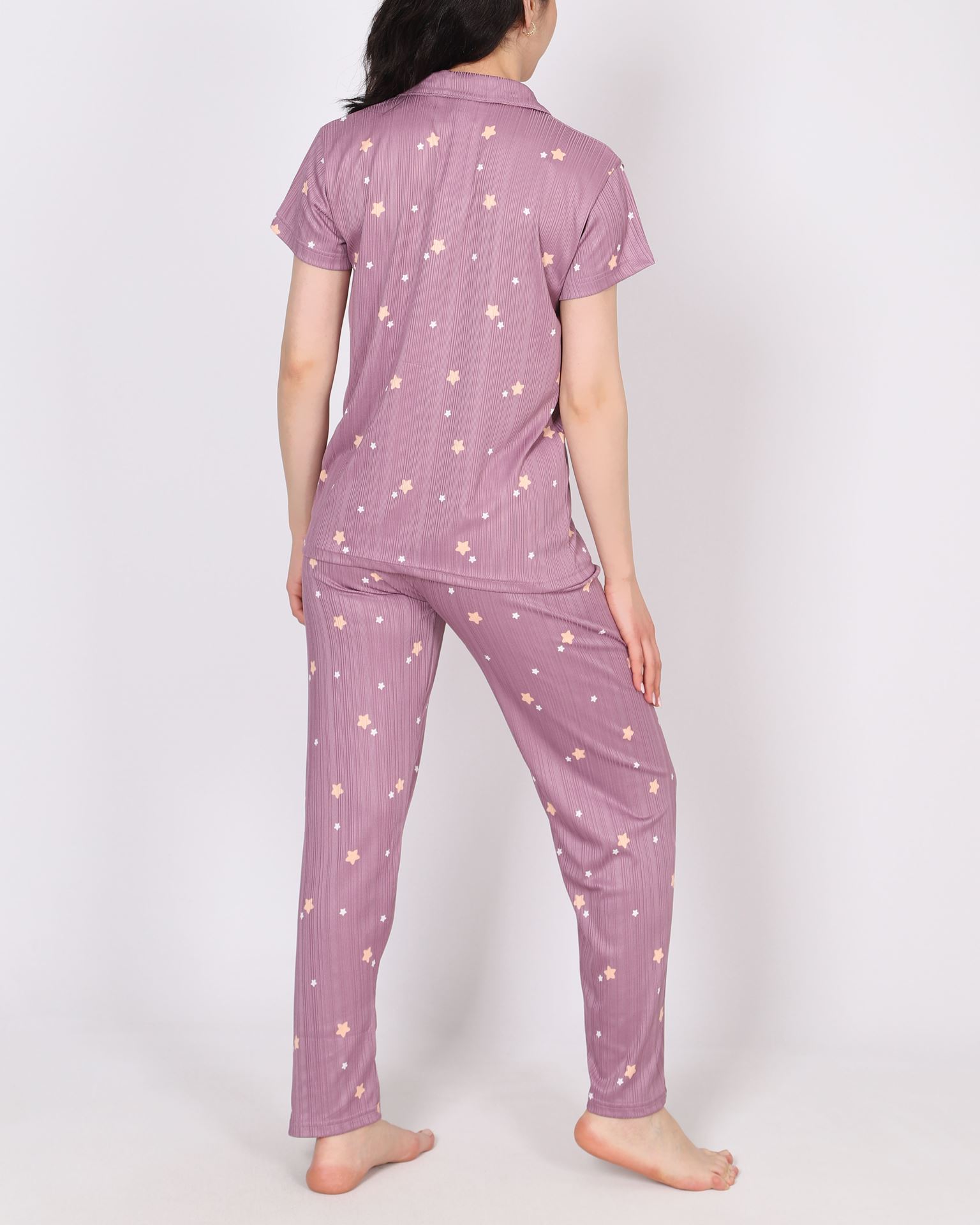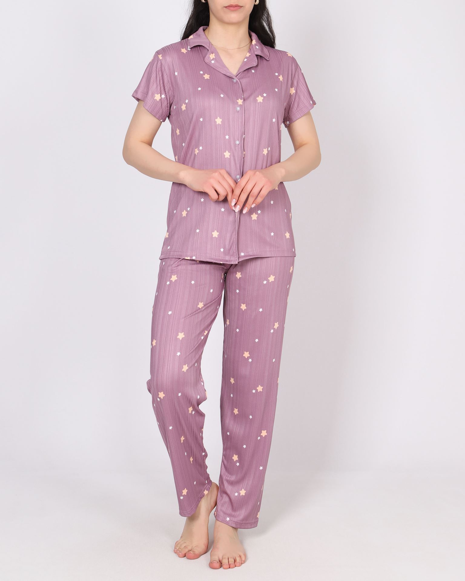 Lila Gömlek Yaka Pijama Takımı PJM1987