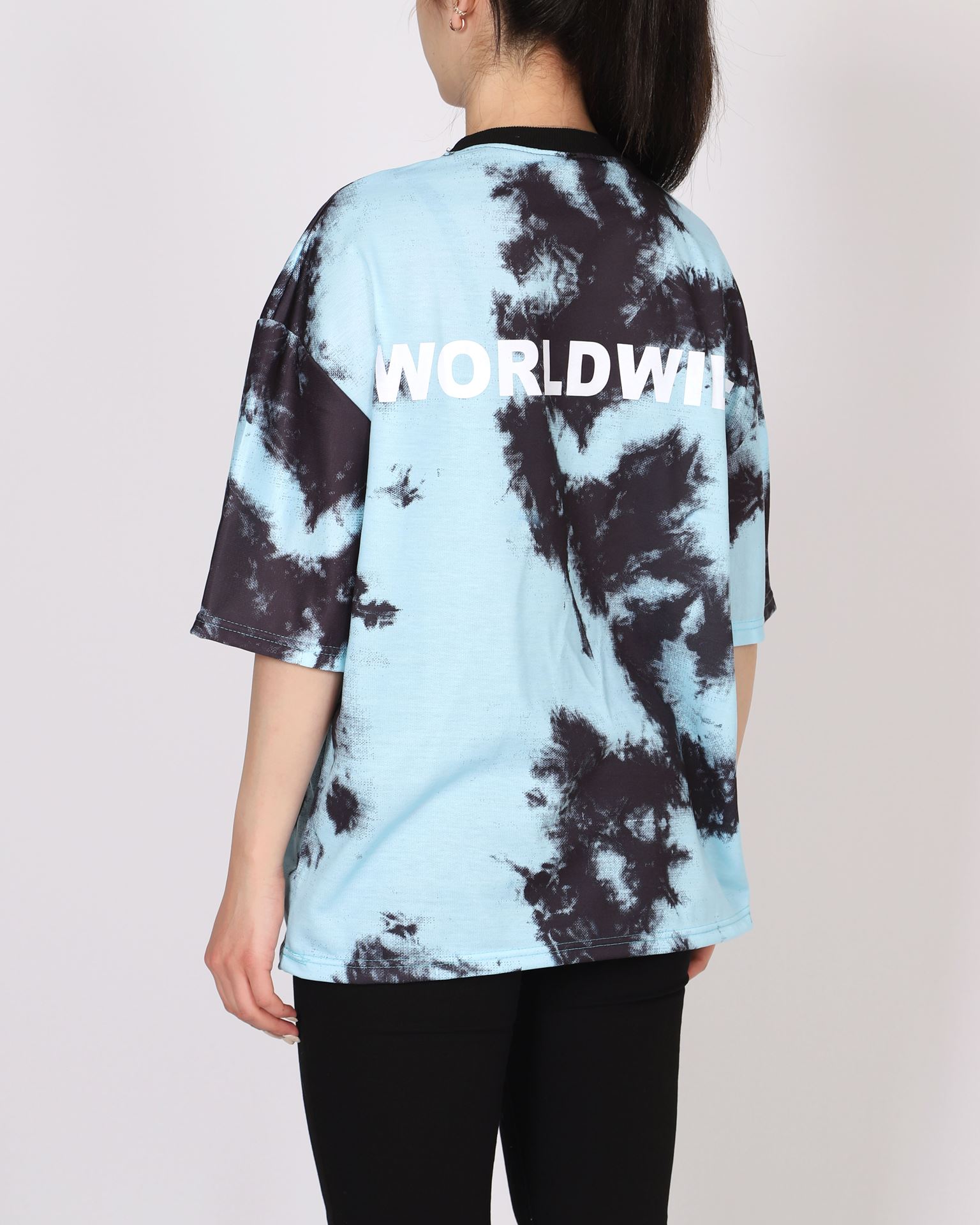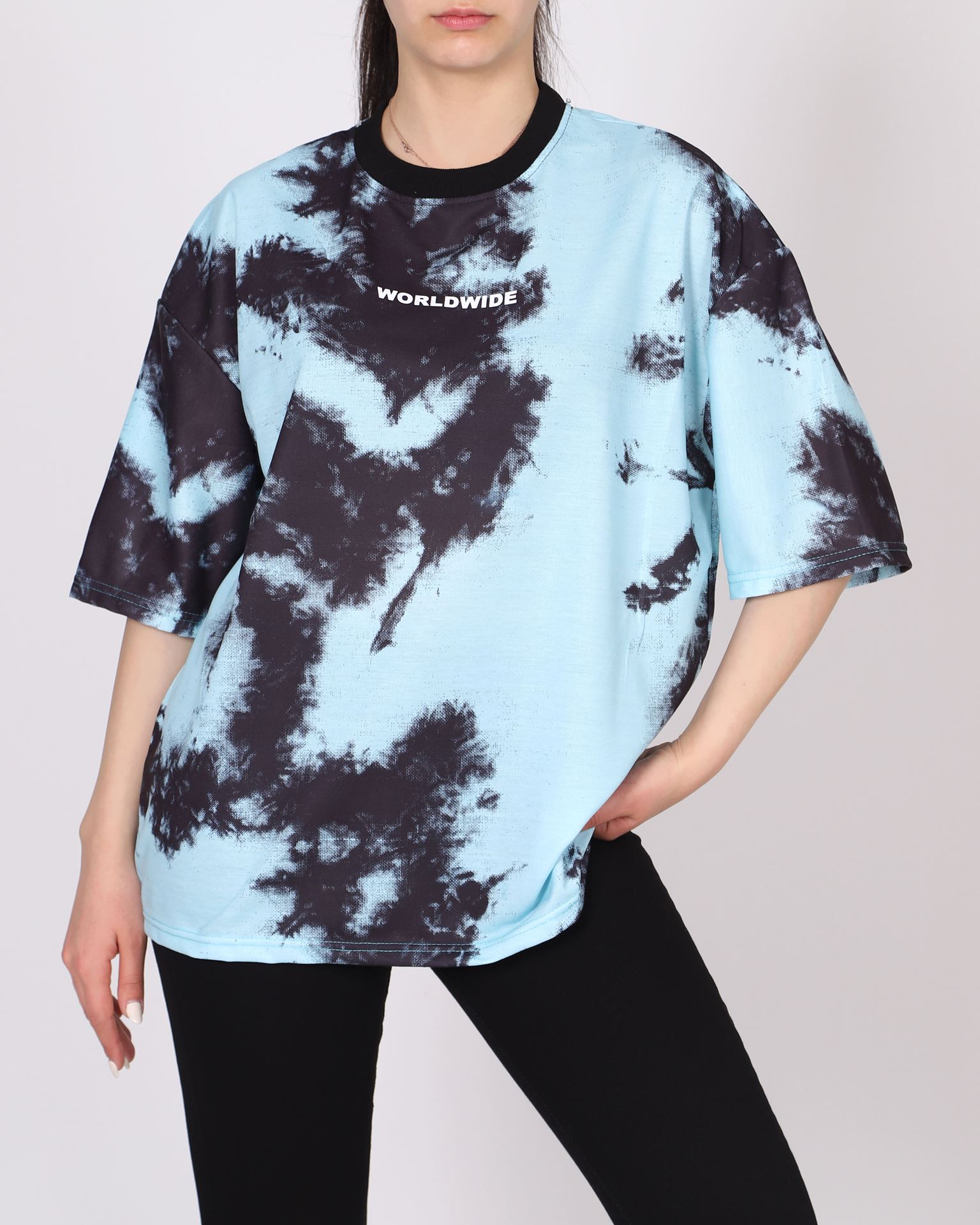 Mavi Batik Desenli Oversize T-shirt TSH359