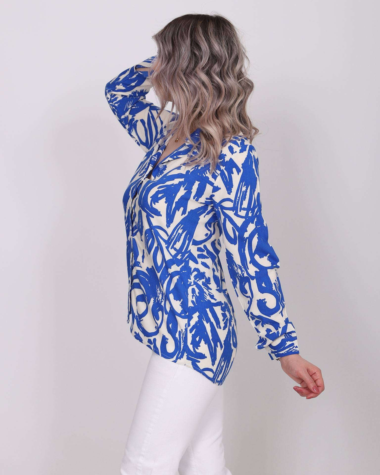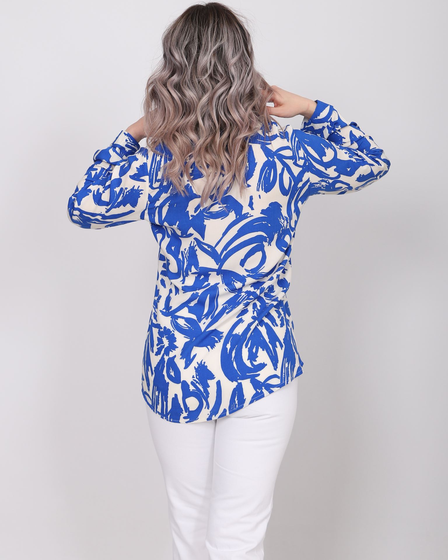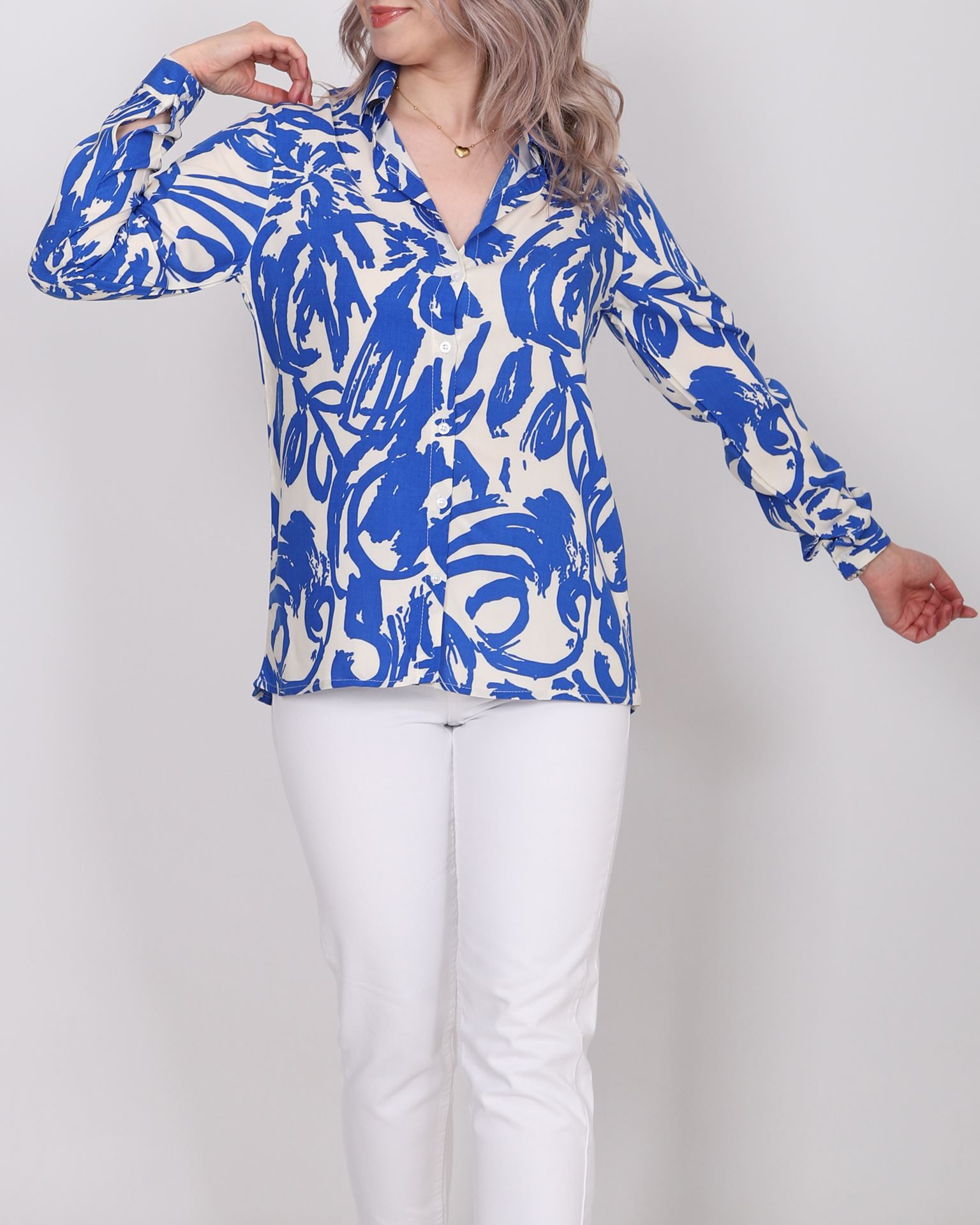 Mavi-Beyaz Yaprak Desen Gömlek GML155