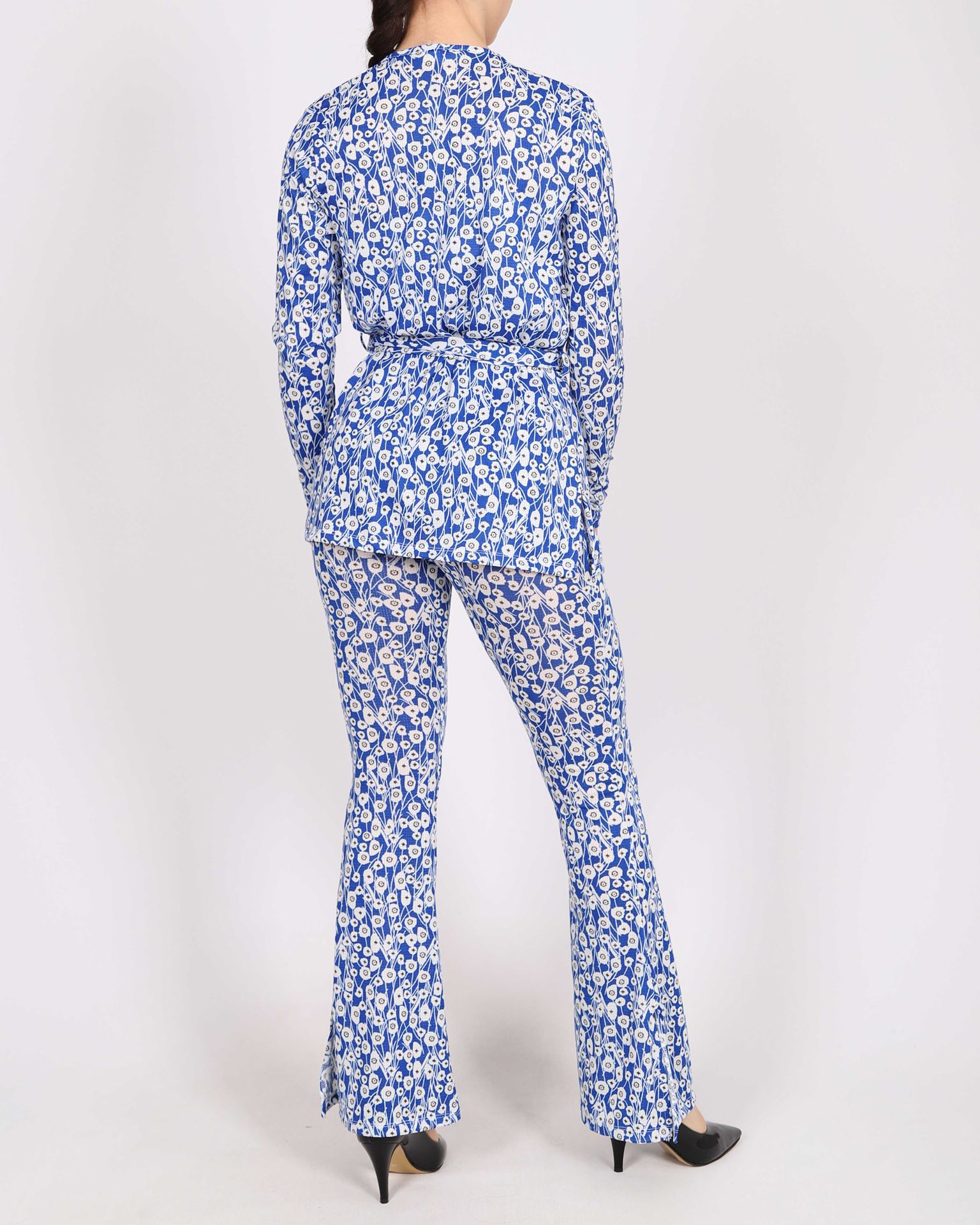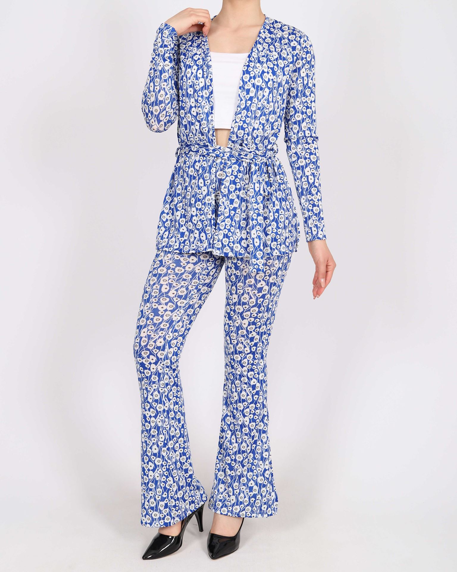 Mavi Desenli Ceket Pantolon Takım TKM1983