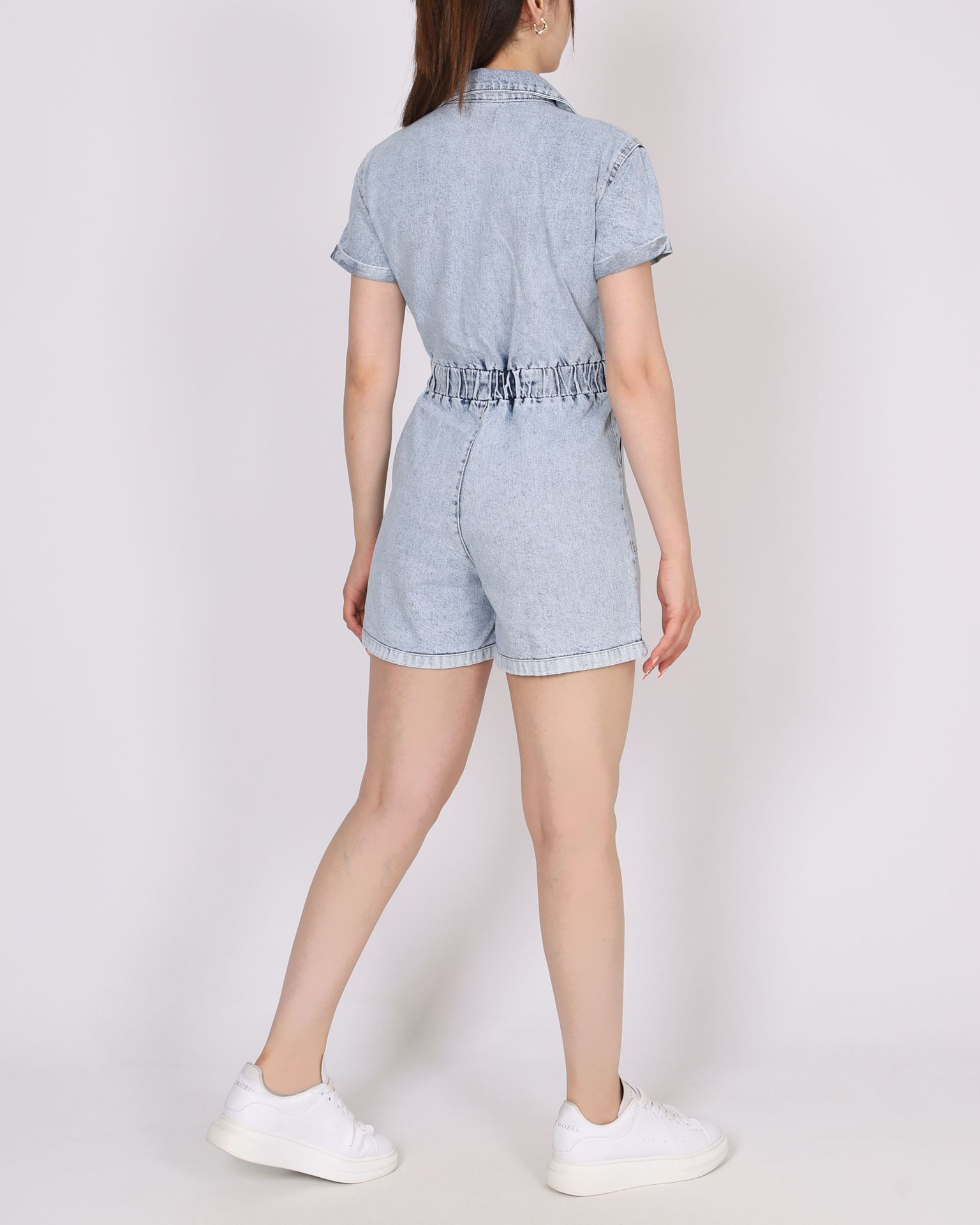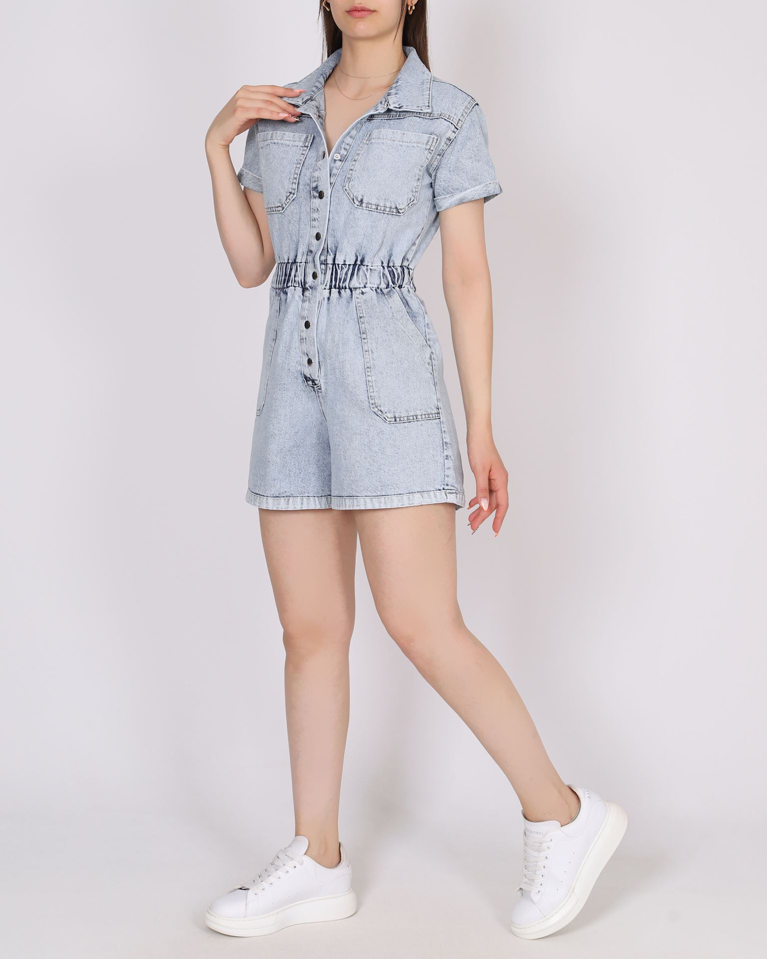 Mavi Gömlek Yaka Kot Şort Tulum TLM490