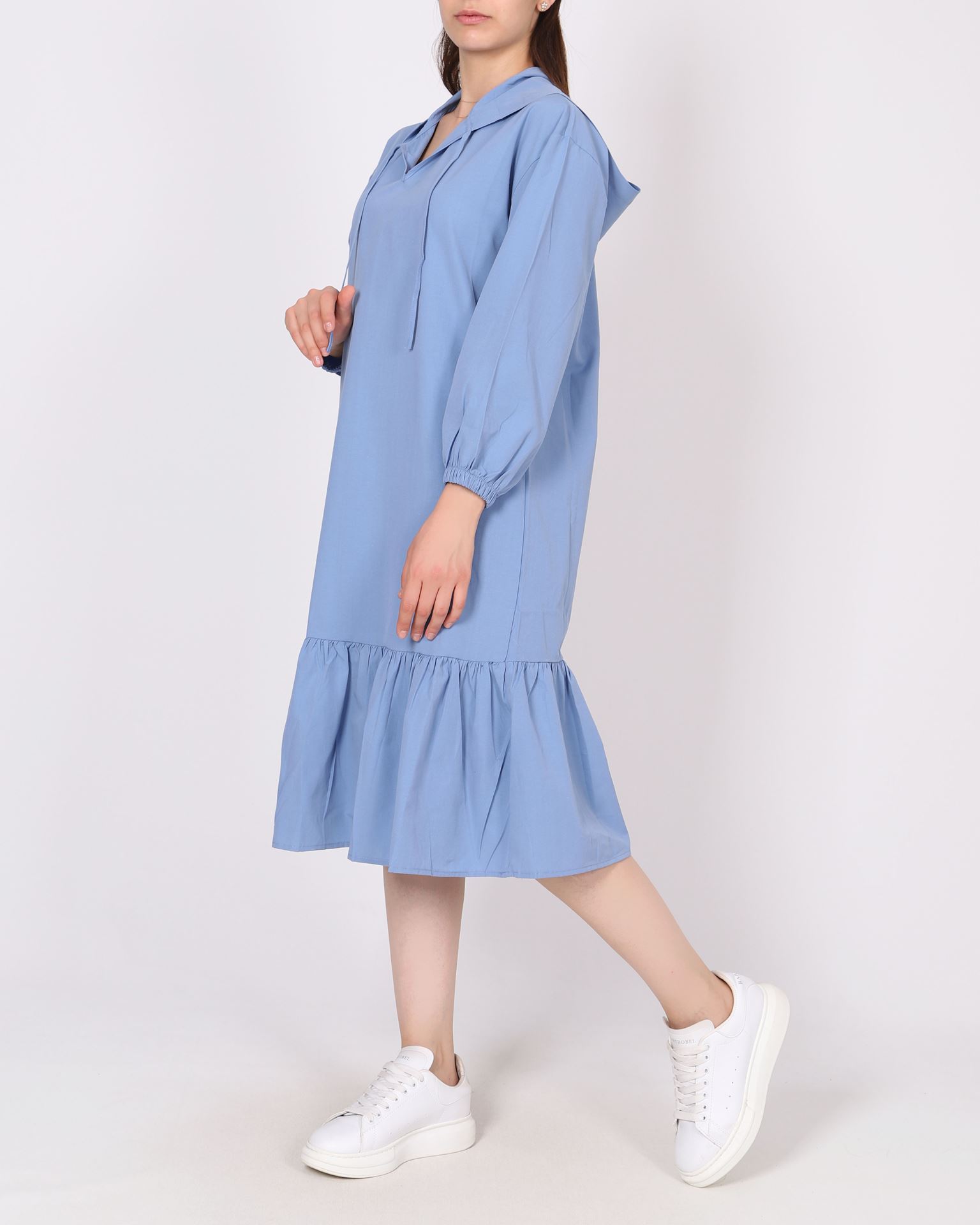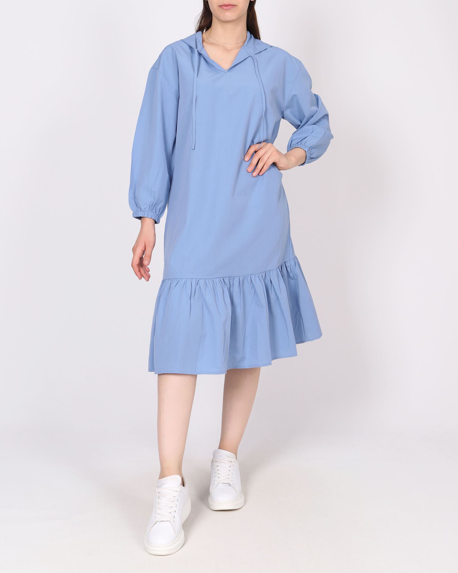 Mavi Kapüşonlu Elbise ELB1039
