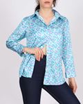 Mavi Leopar Desenli Saten Salaş Gömlek GML078