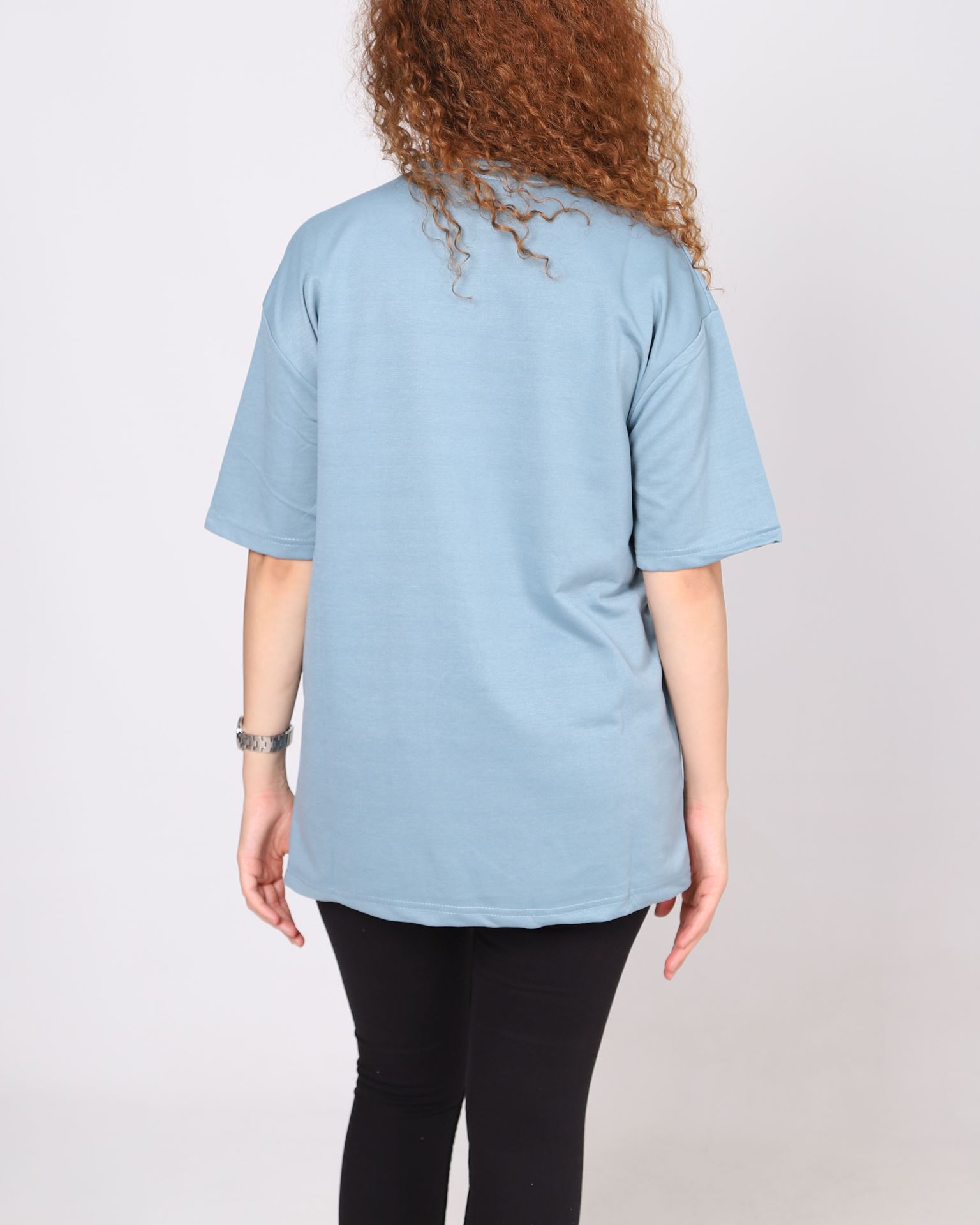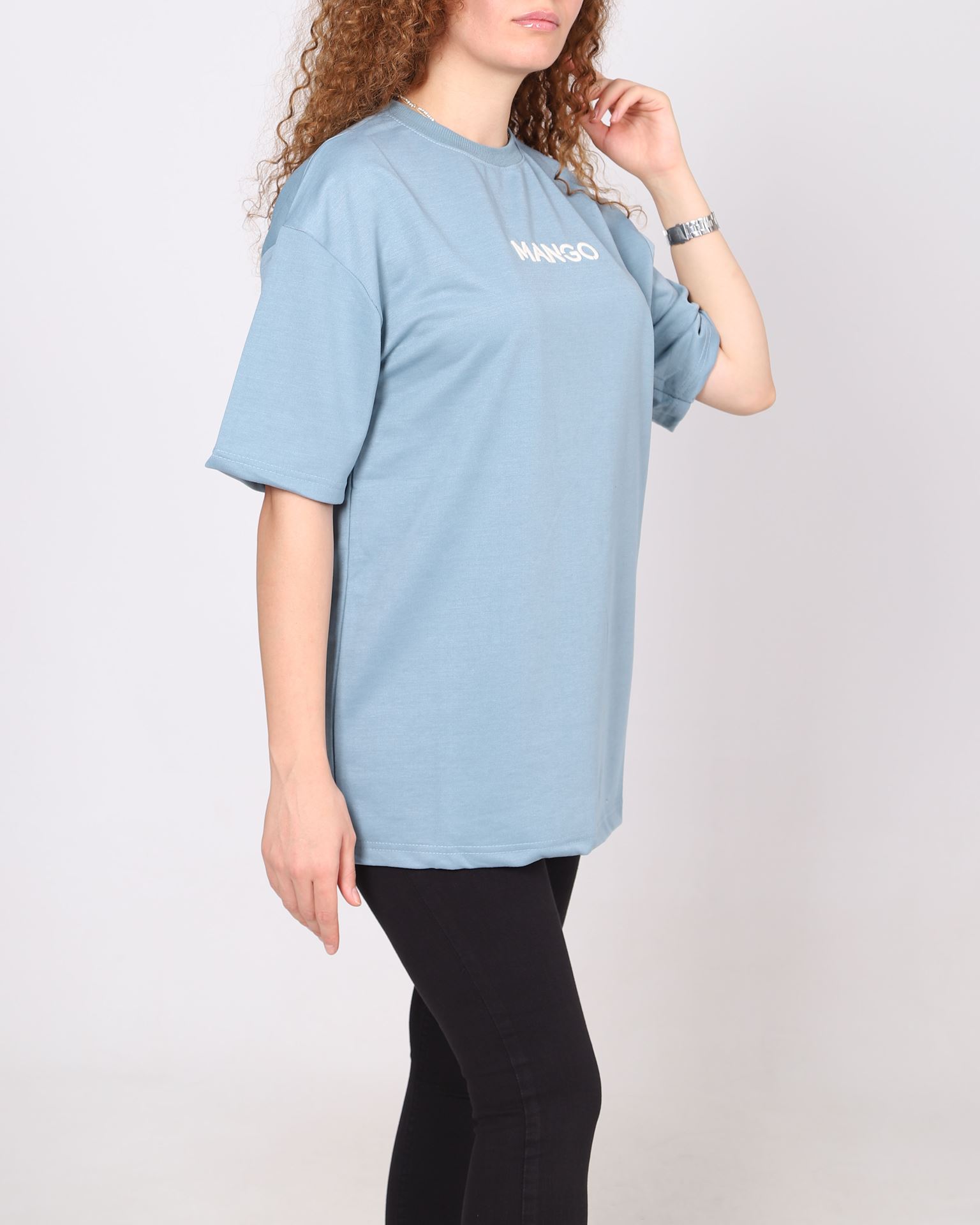 Mavi Nakışlı Oversize T-Shirt TSH403