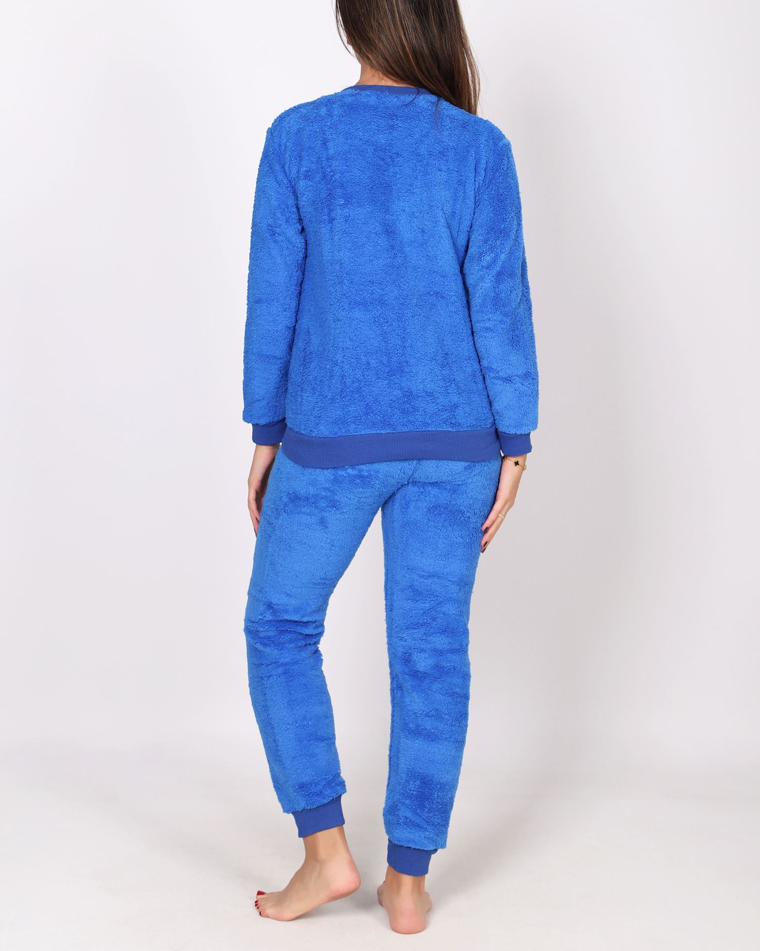 Mavi Nakışlı Welsoft Pijama Takımı PJM2083