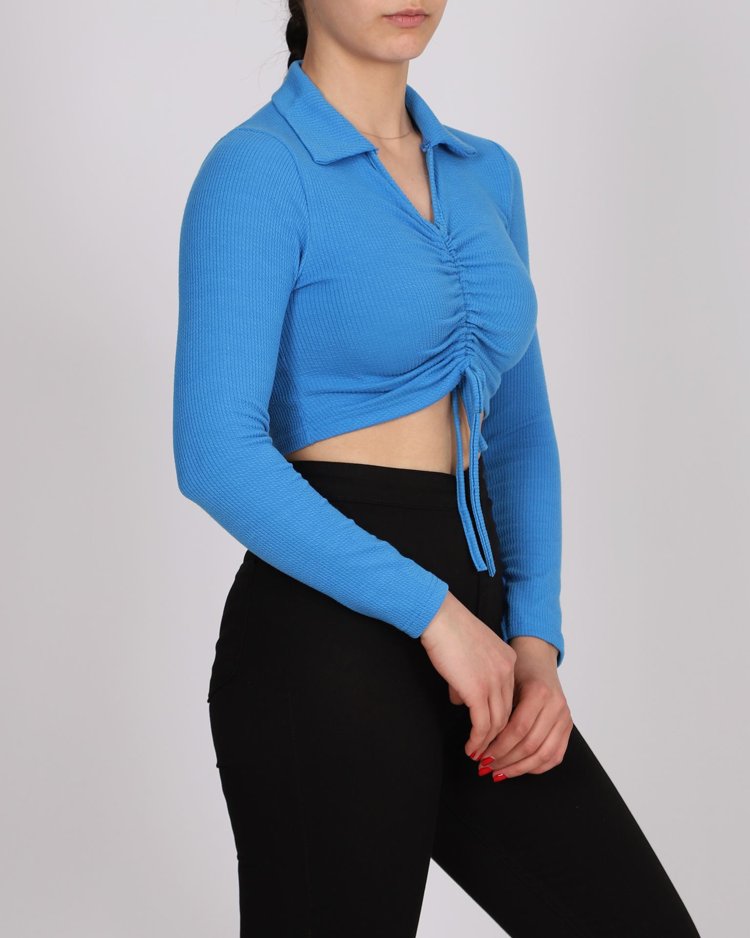 Mavi Önü Büzgülü Bluz BLZ299