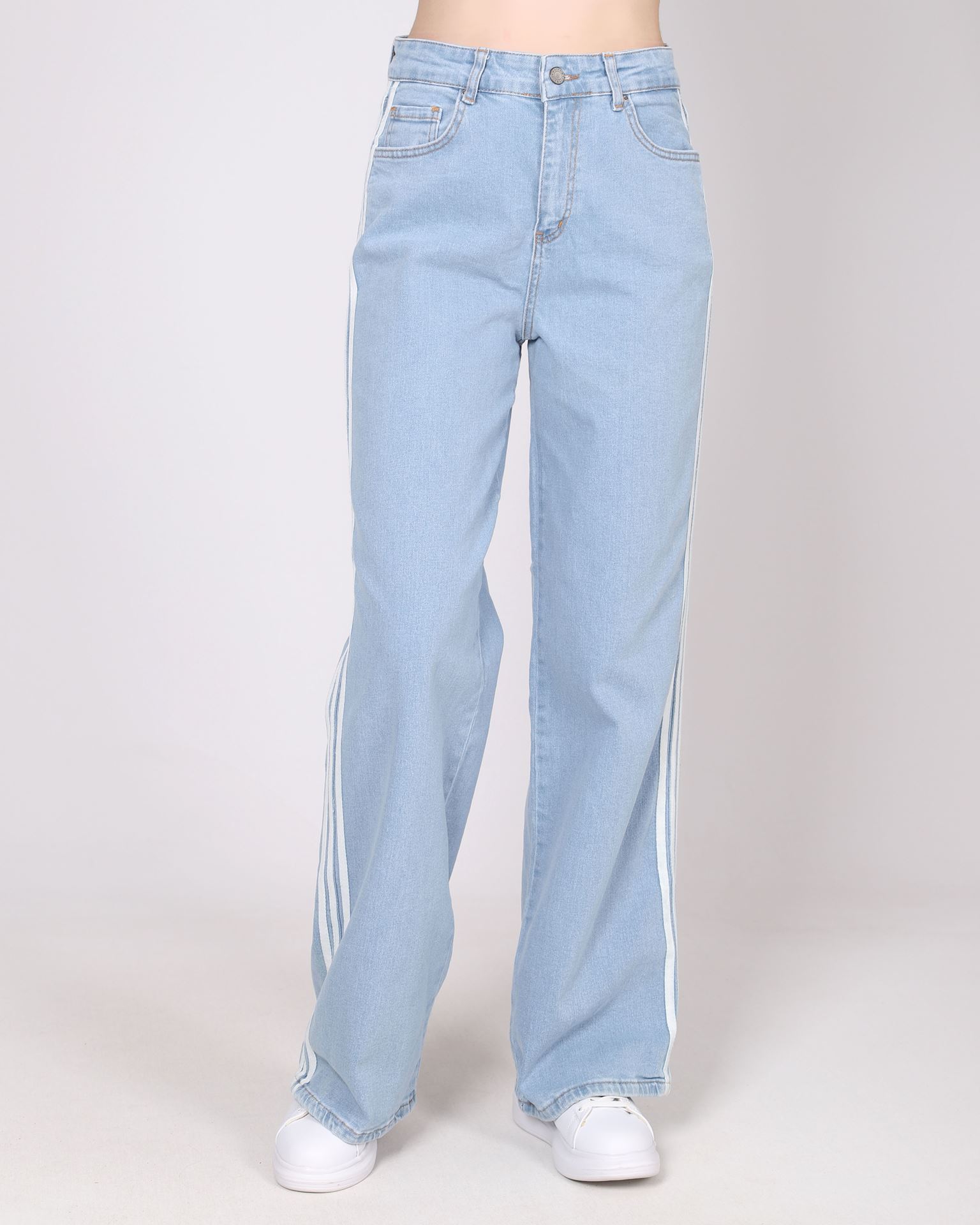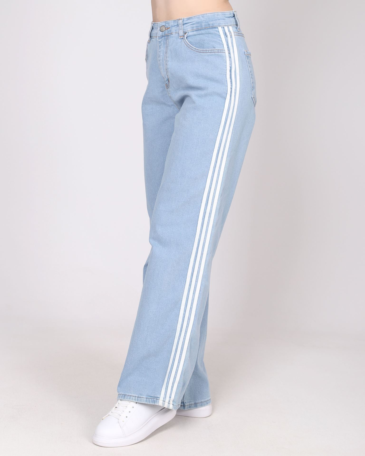 Mavi Şeritli Boru Paça Kot Pantolon PNT894
