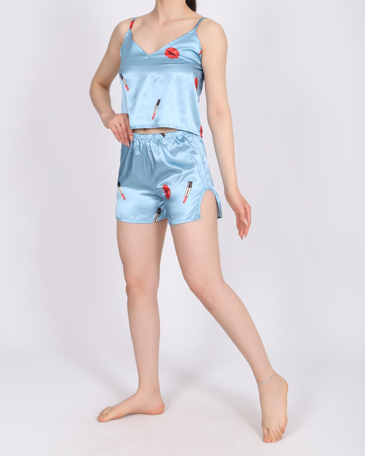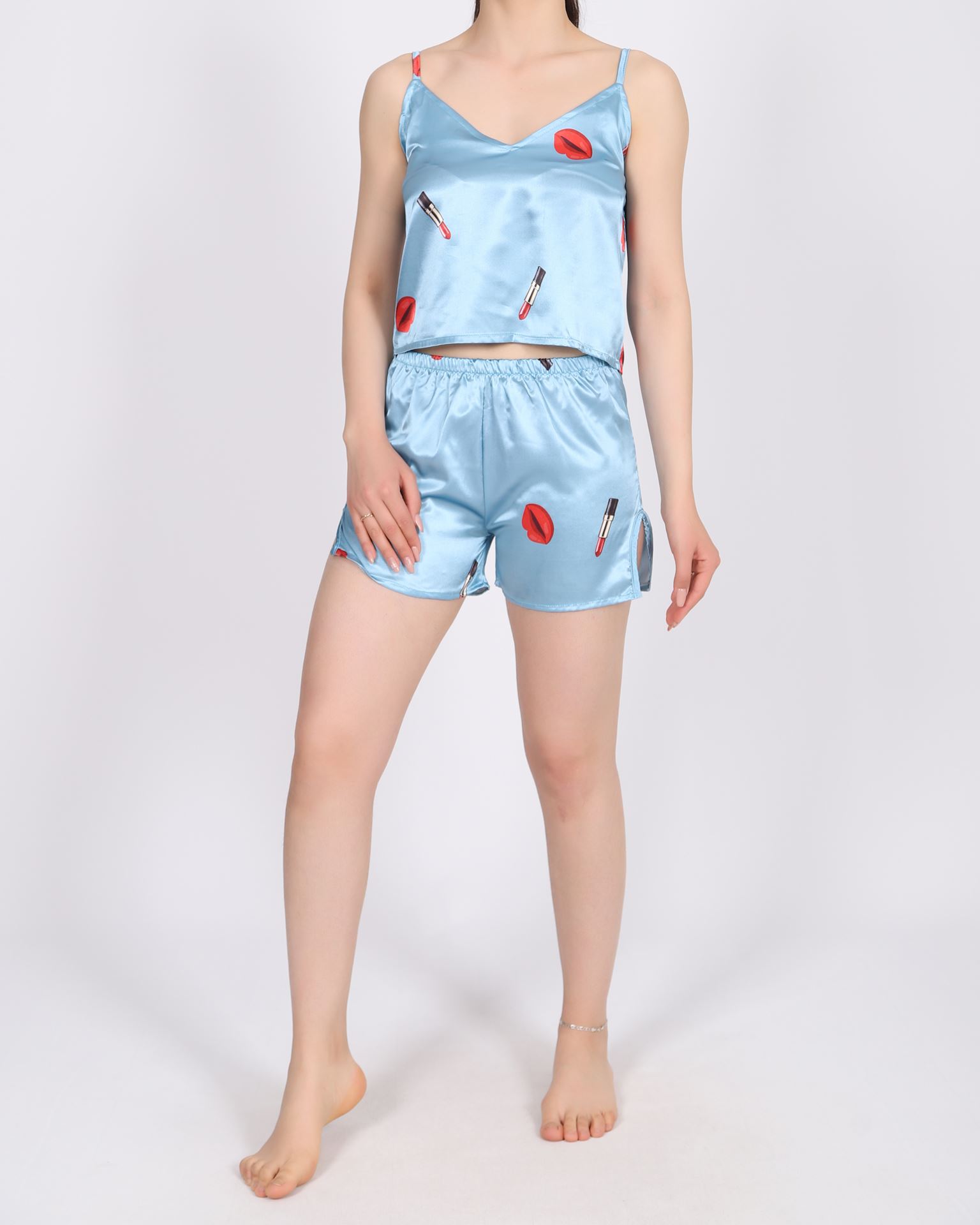Mavi Şortlu Saten Pijama Takımı PJM1503