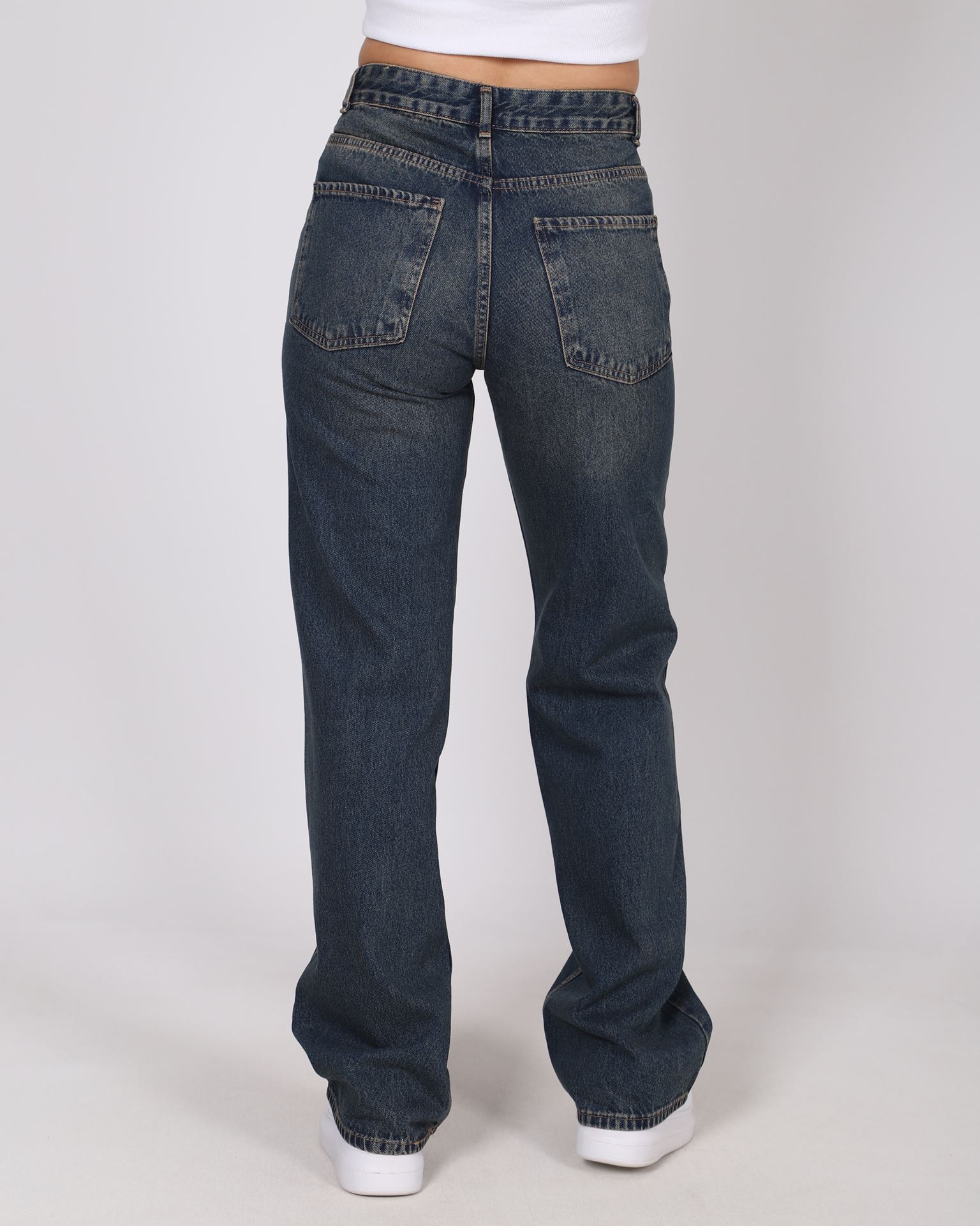 Mavi Taşlamalı Boru Paça Jean PNT916