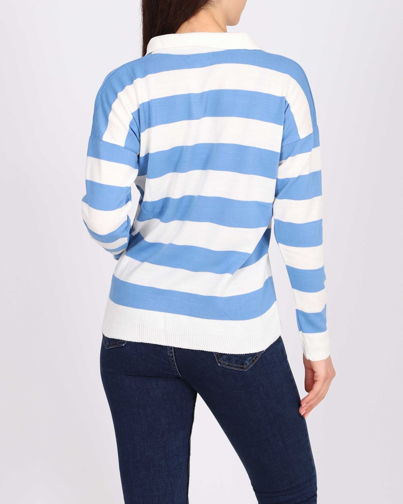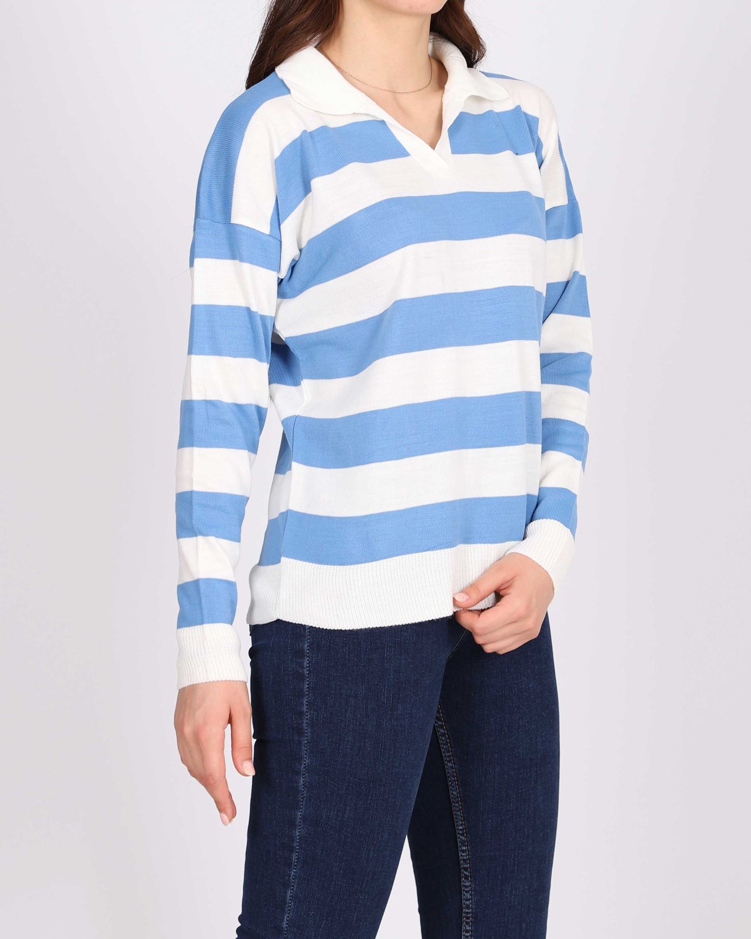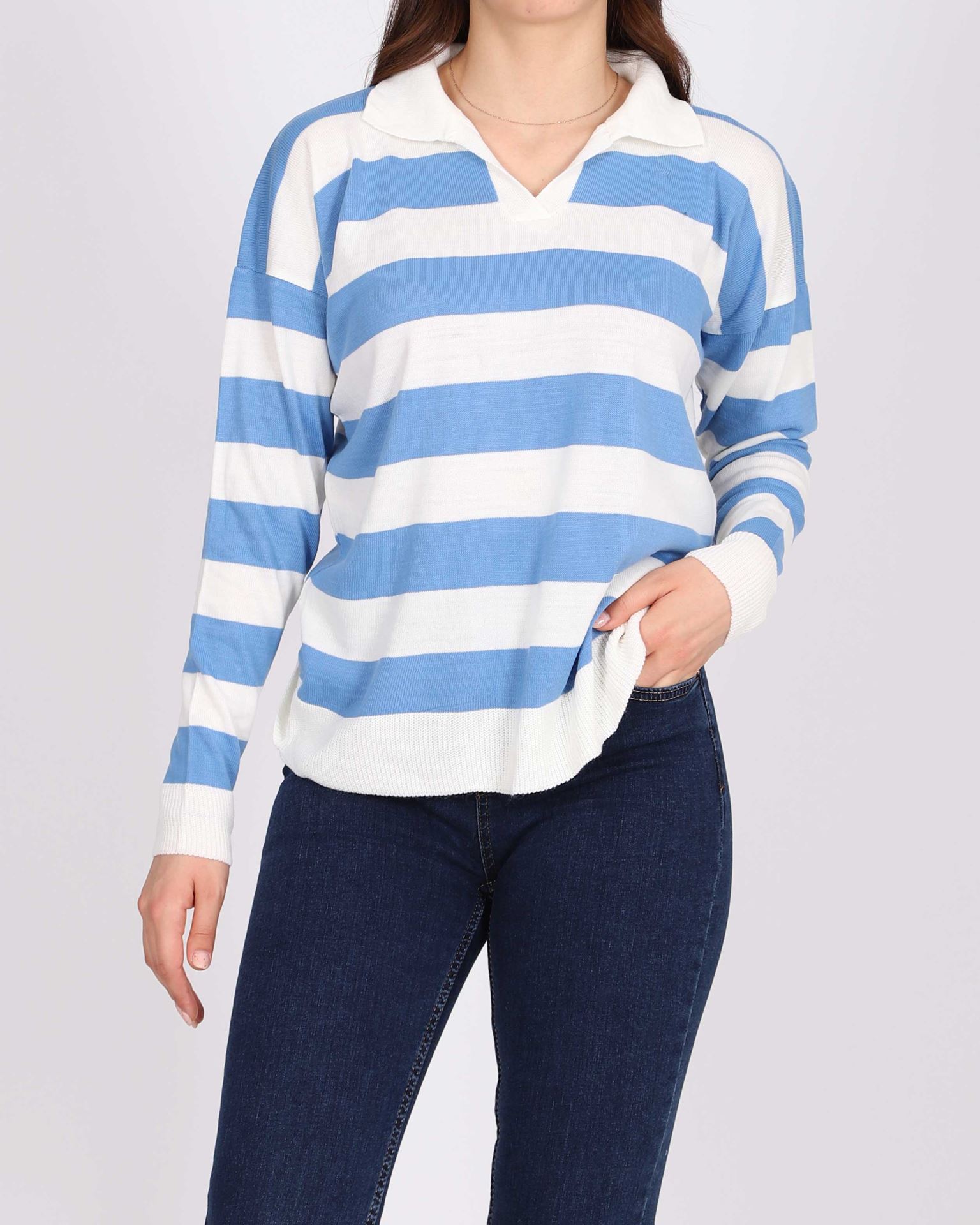 Mavi Yakalı Triko Kazak KZK561