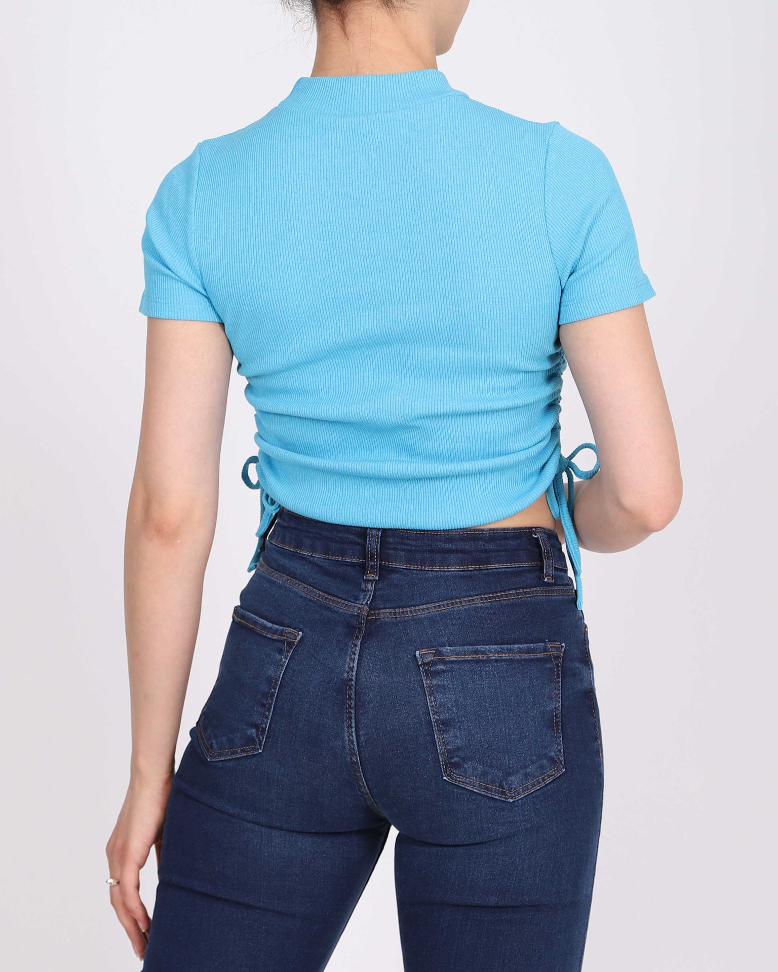 Mavi Yanları Büzgülü Crop Bluz BLZ182