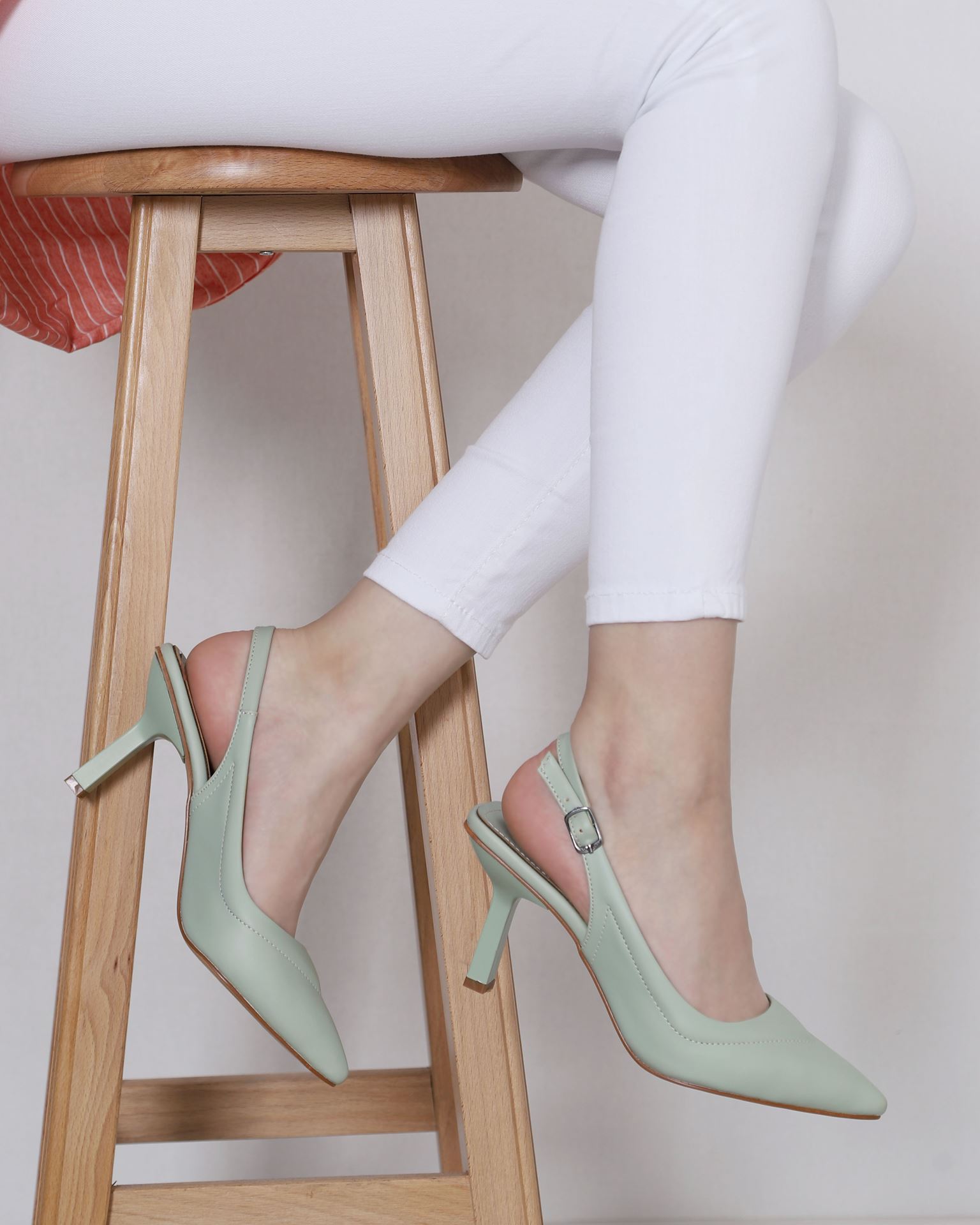 Mint Yeşili Arkası Açık Düz Stiletto AYK267