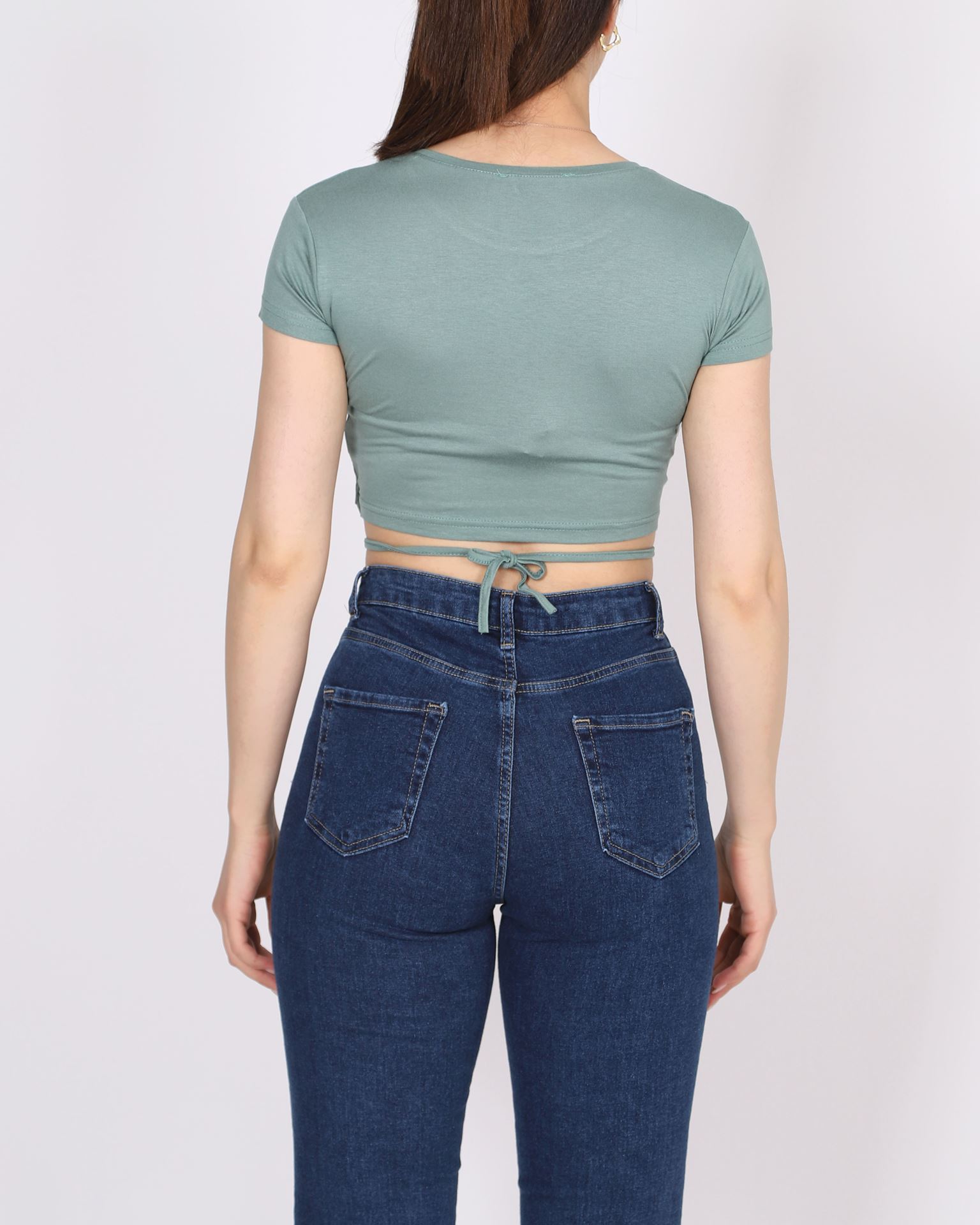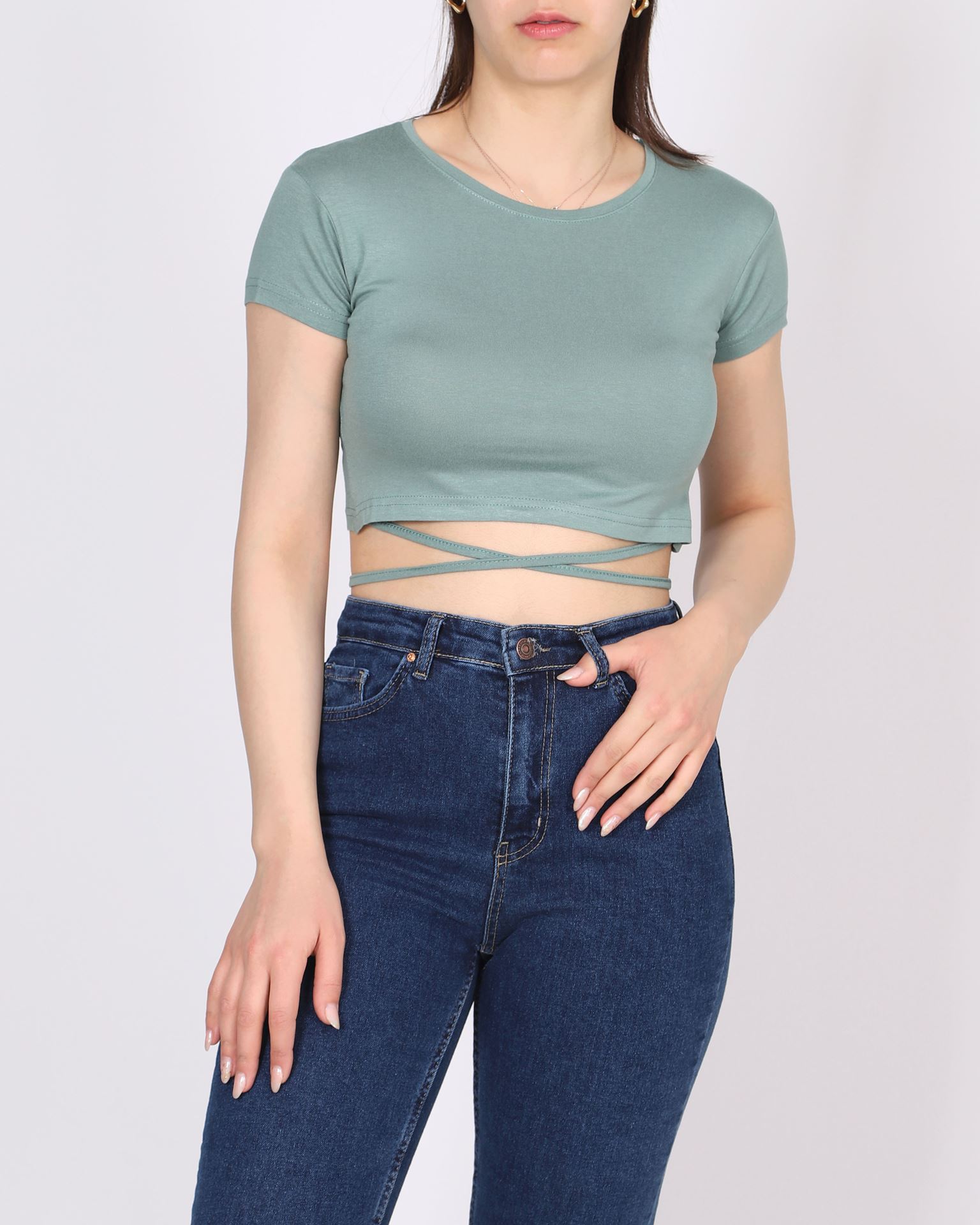 Mint Yeşili Bel Çapraz Bağlamalı Crop Bluz BLZ269