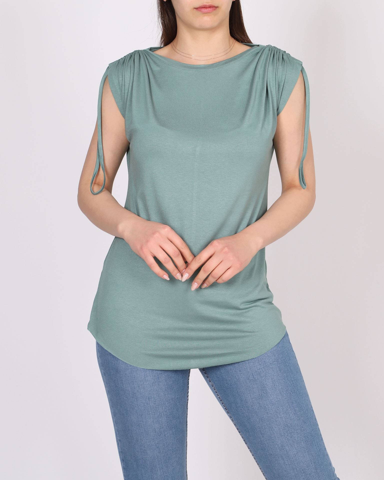 Mint Yeşili Omuz Büzgülü Viskon Bluz BLZ362