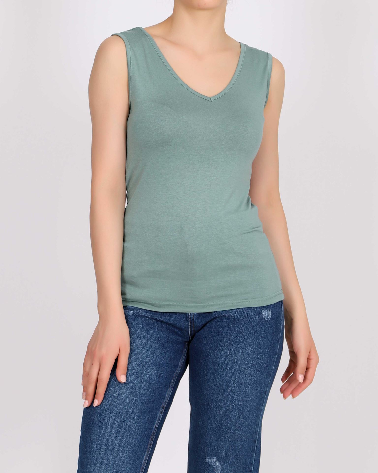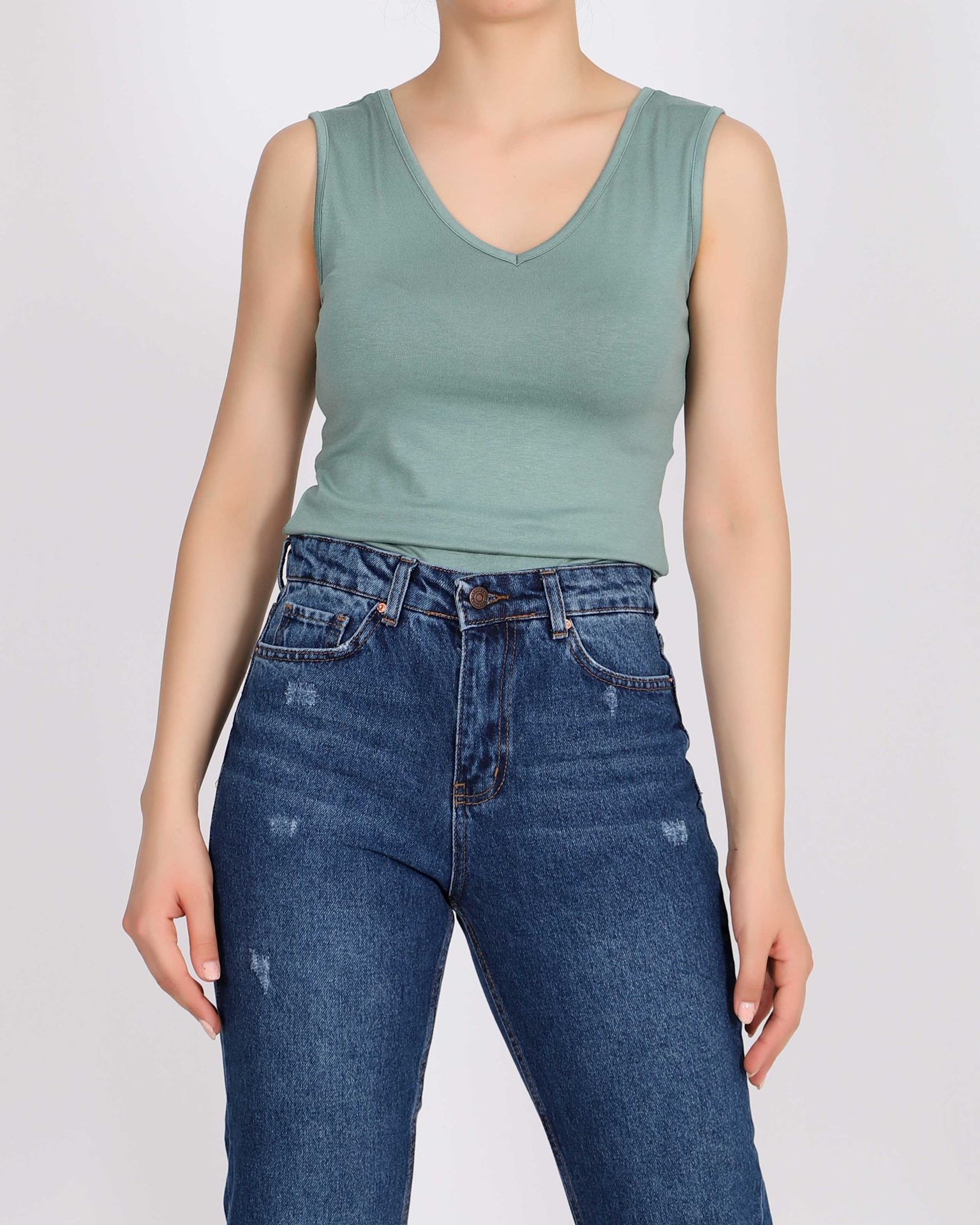 Mint Yeşili Ön Arka V Yaka Bluz BLZ248