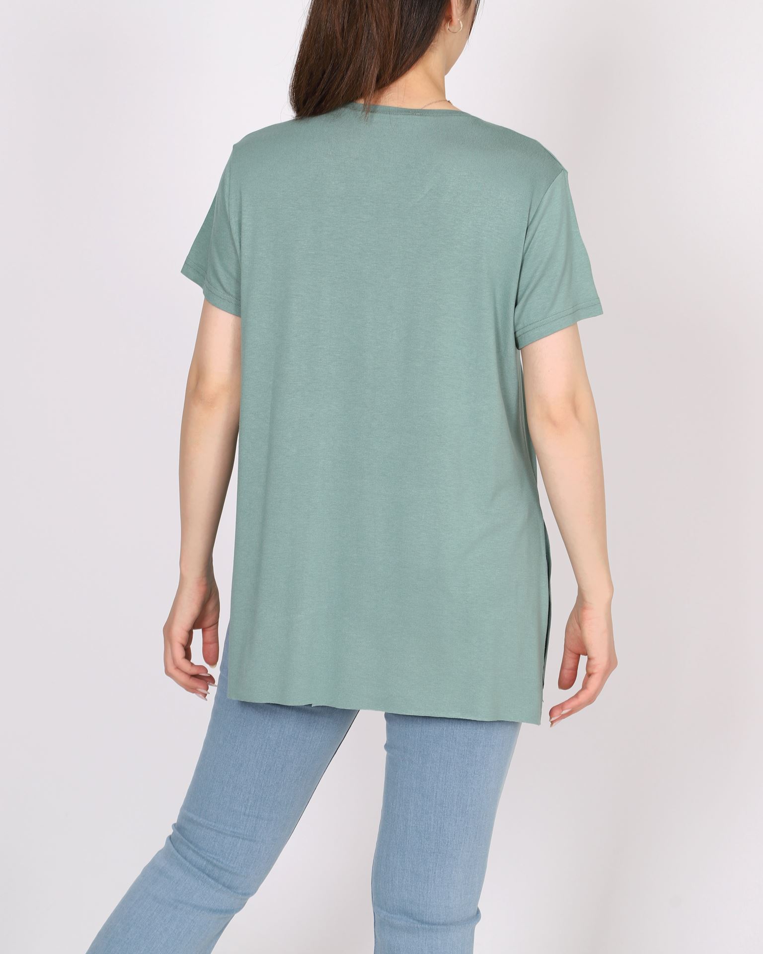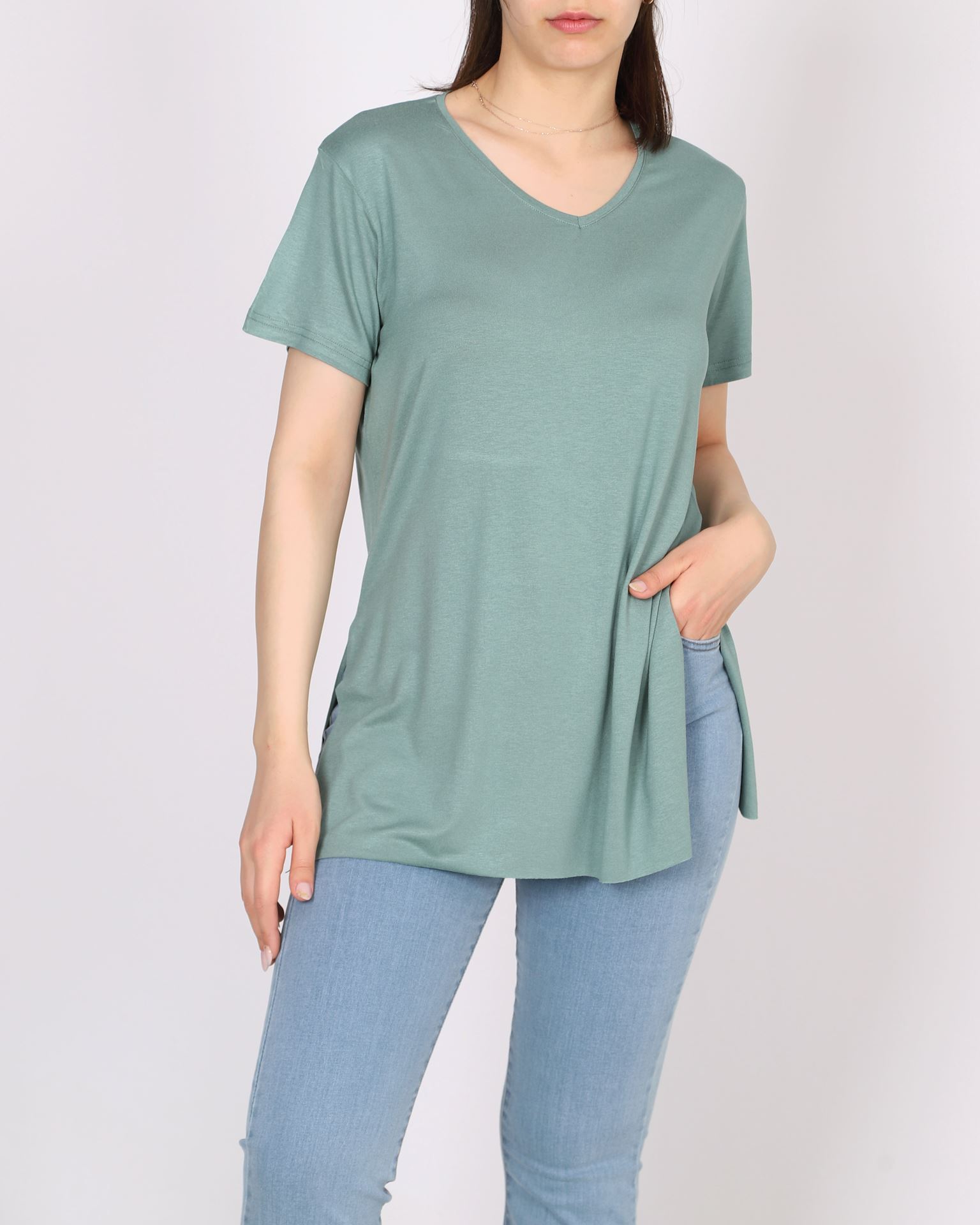 Mint Yeşili V Yaka Yırtmaçlı T-shirt TSH378