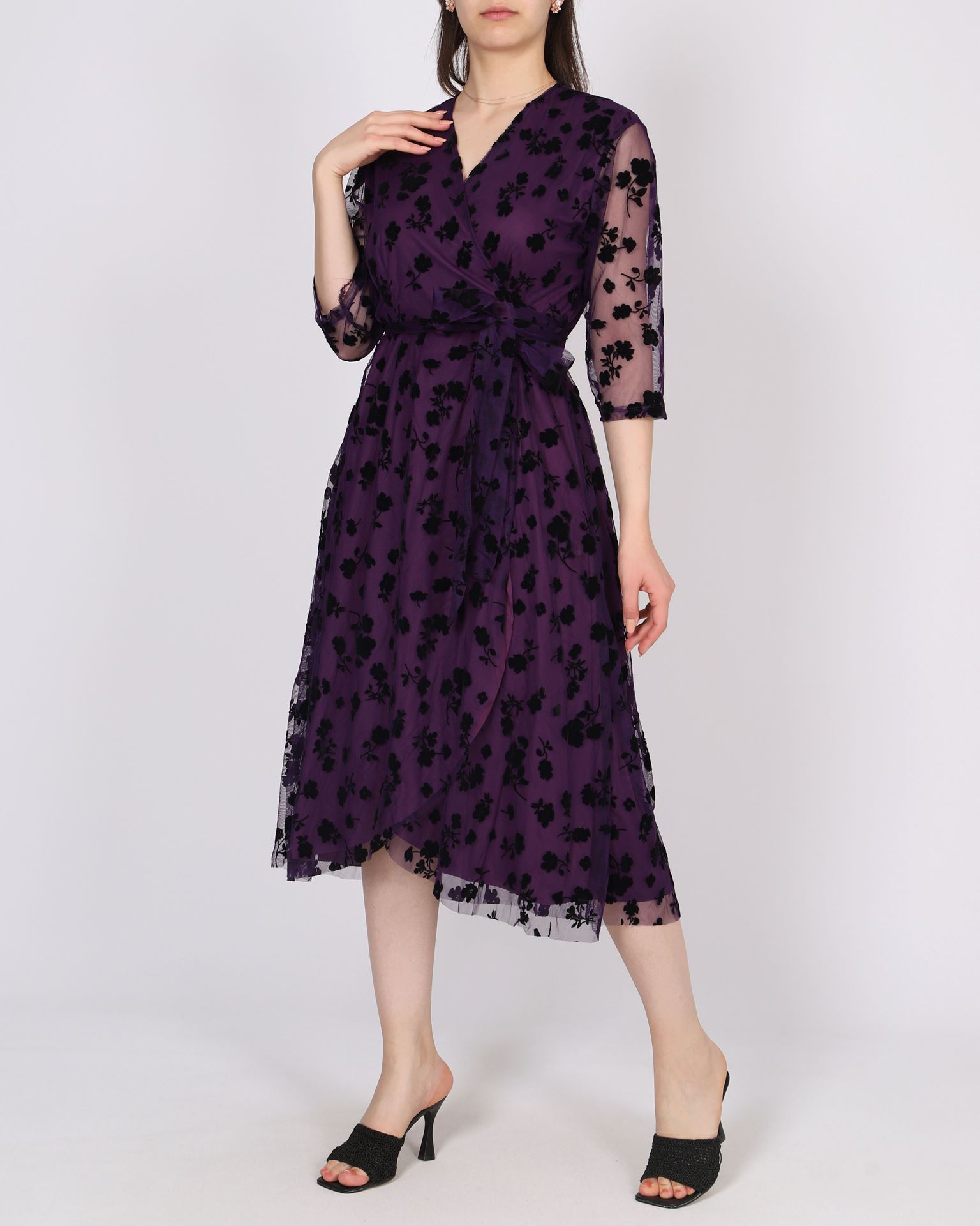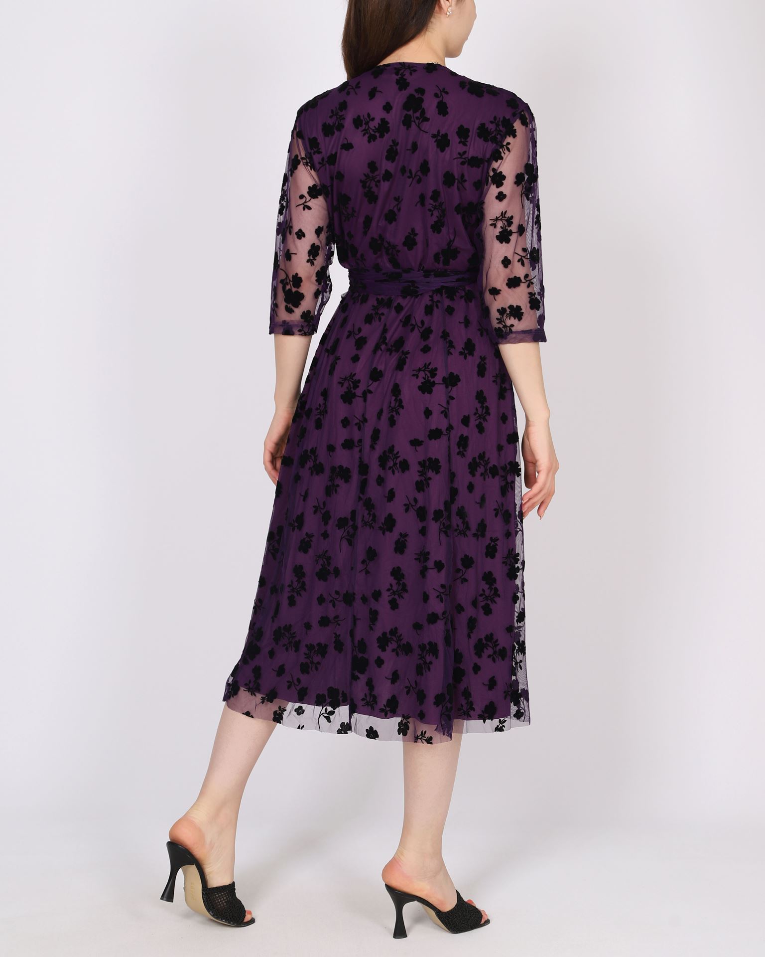 Mor Desenli Tül Elbise ELB989