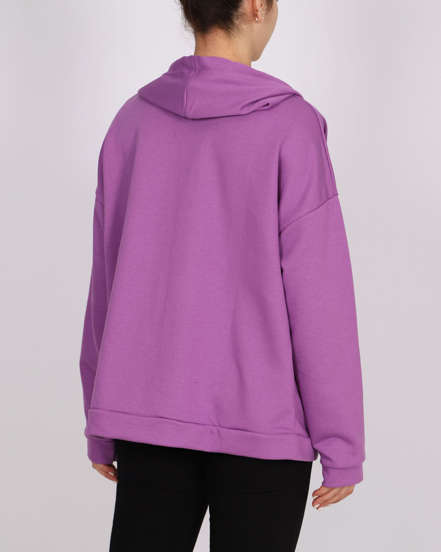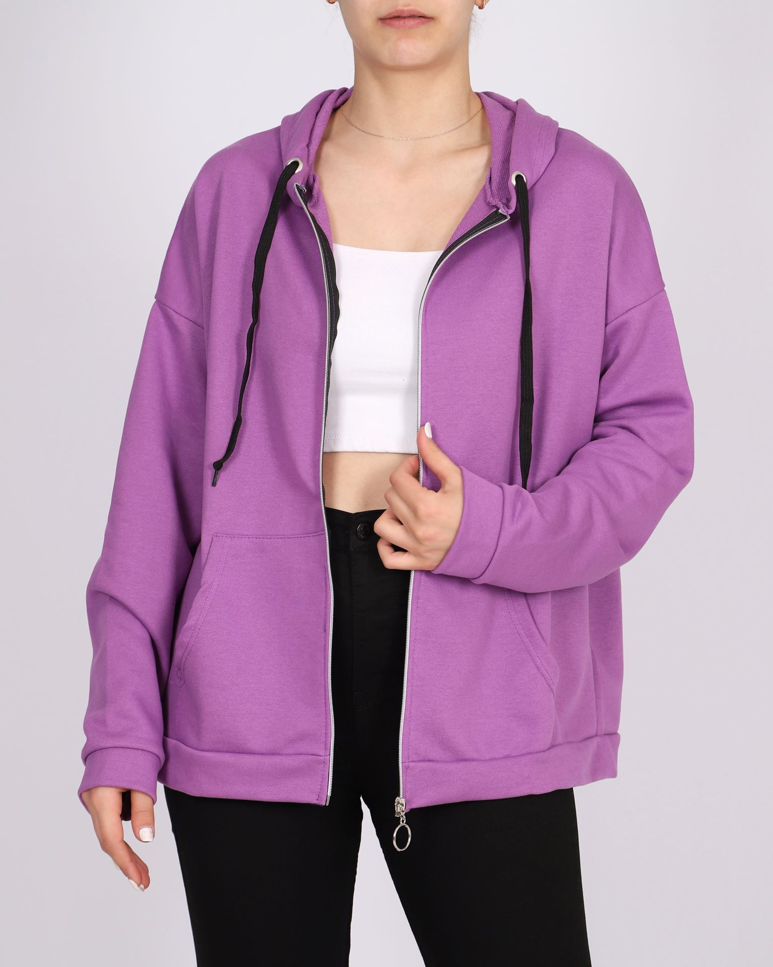 Mor Kapüşonlu Fermuarlı Sweat SWT900