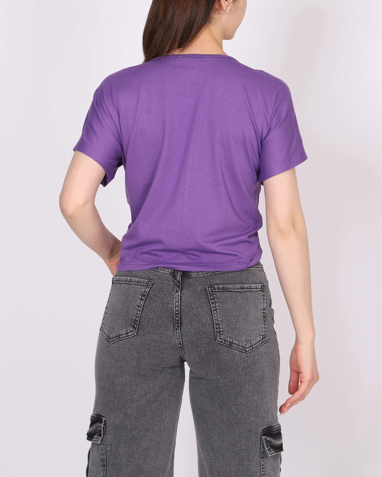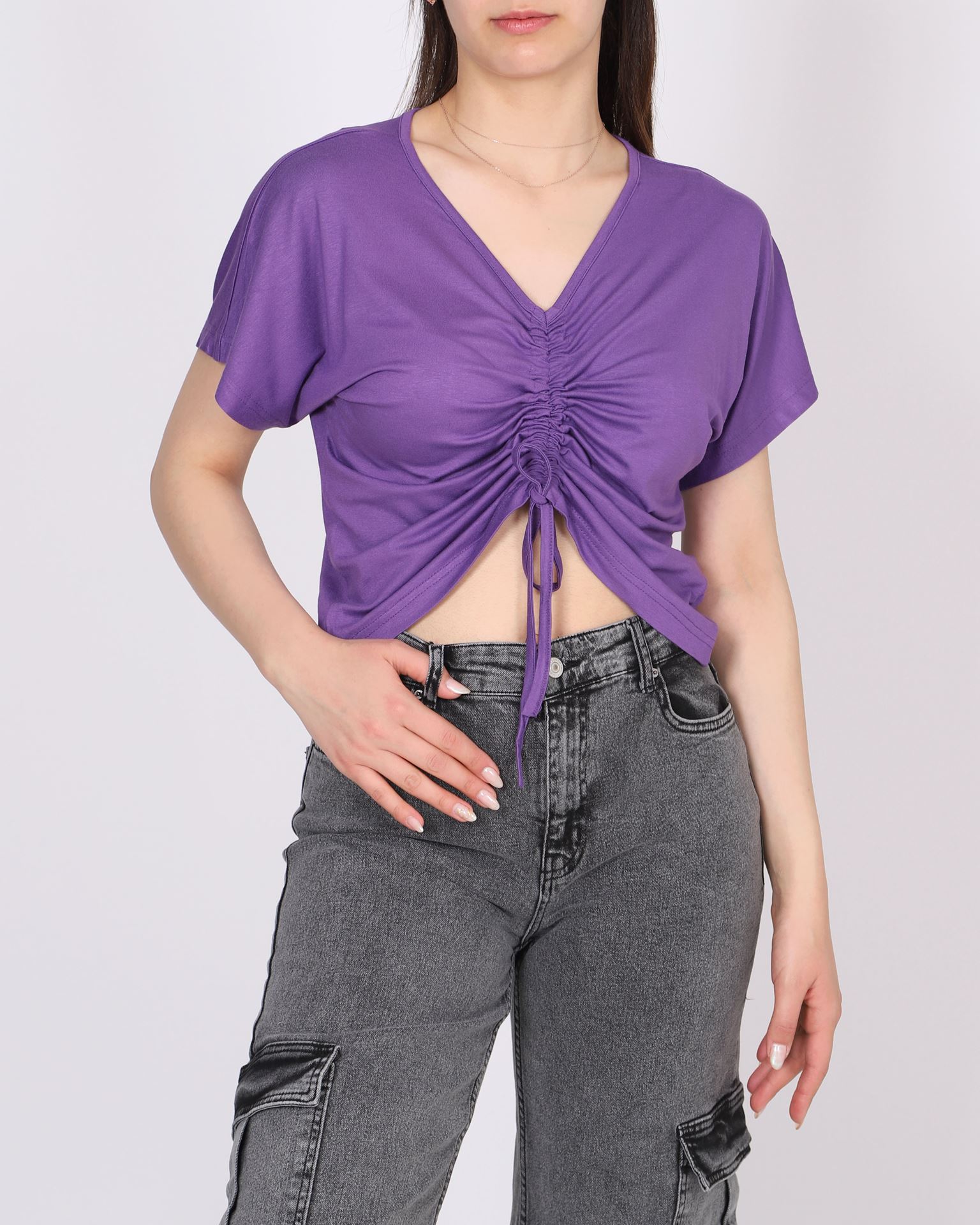 Mor Önü Büzgülü V Yaka Bluz BLZ371