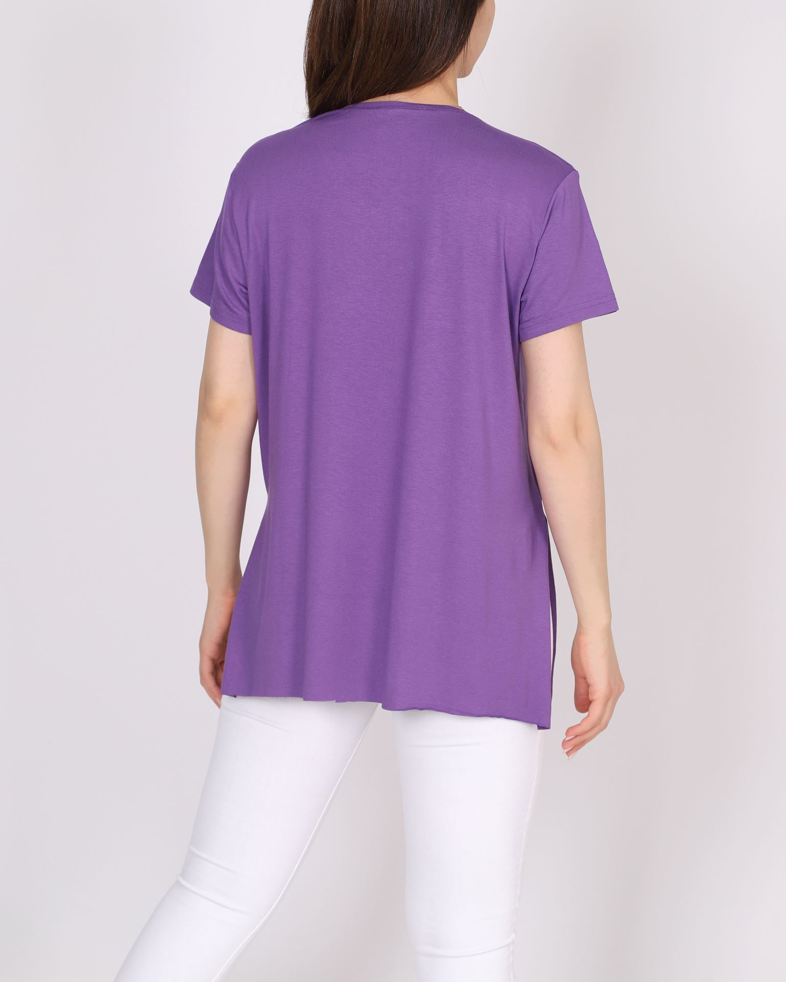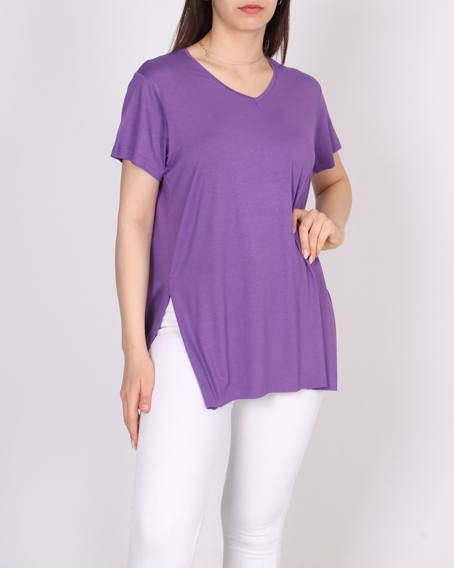 Mor V Yaka Yırtmaçlı T-shirt TSH382