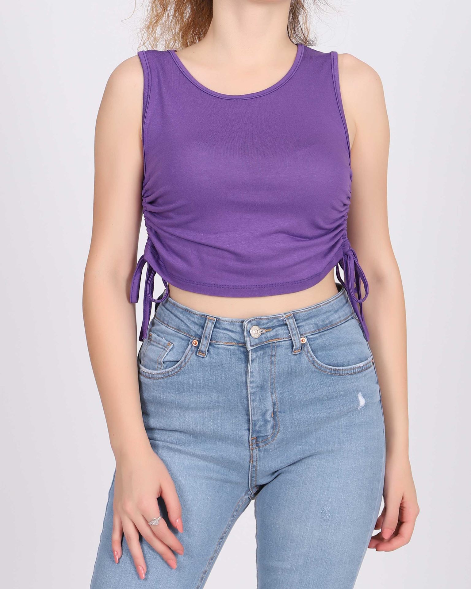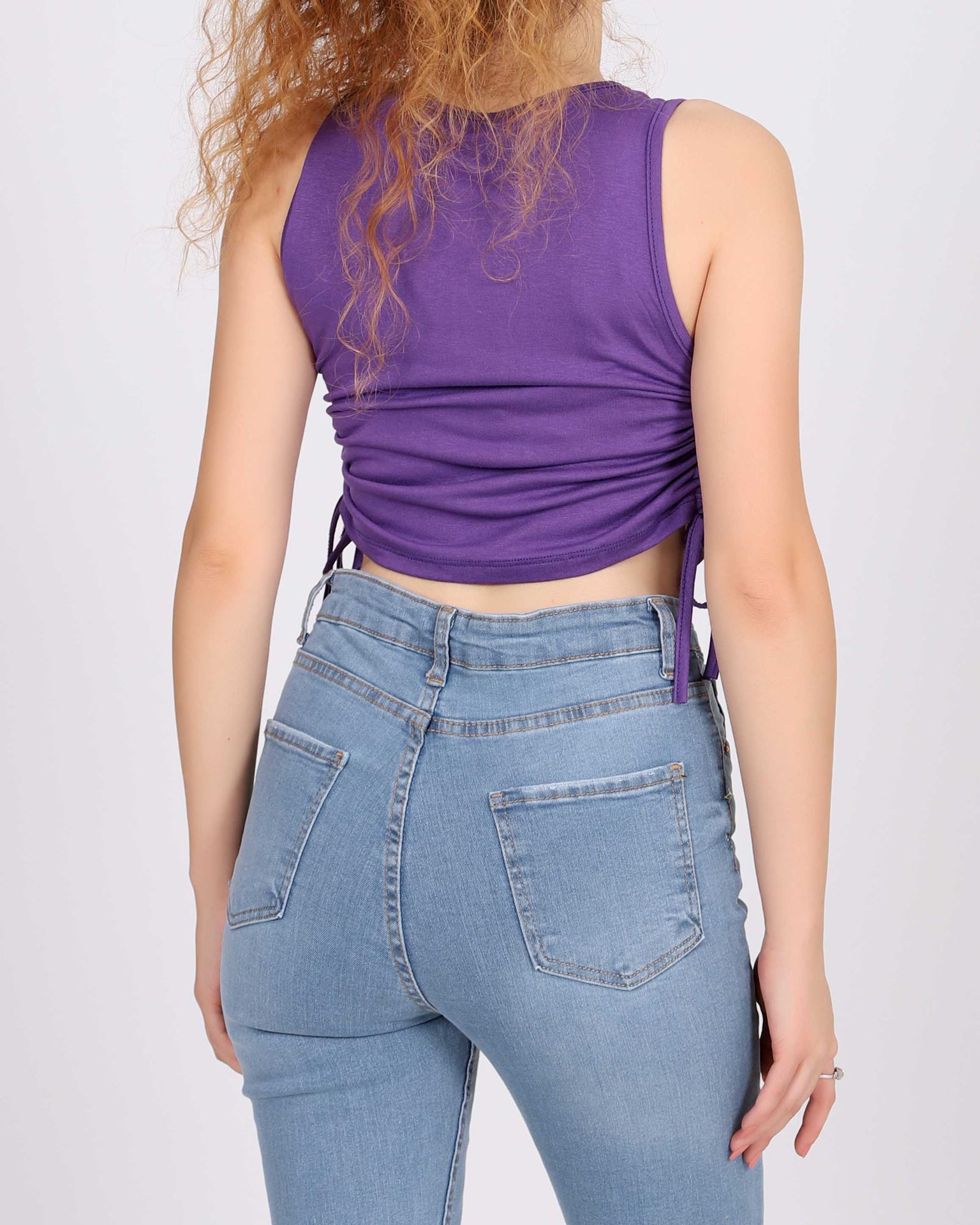 Mor Yanları Büzgülü Bluz BLZ212