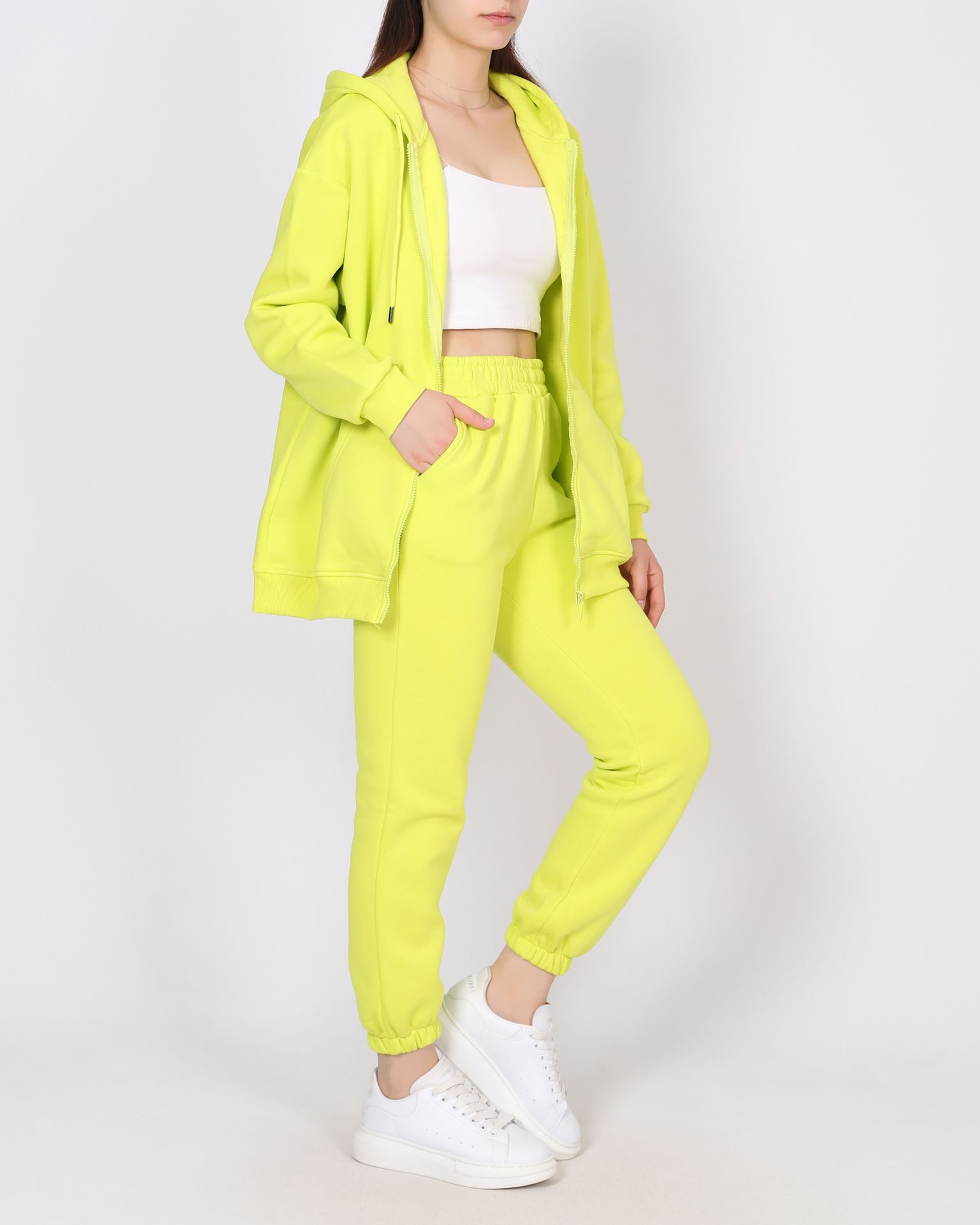 Neon Yeşil İçi Şardonlu Fermuarlı Eşofman Takımı TKM2573