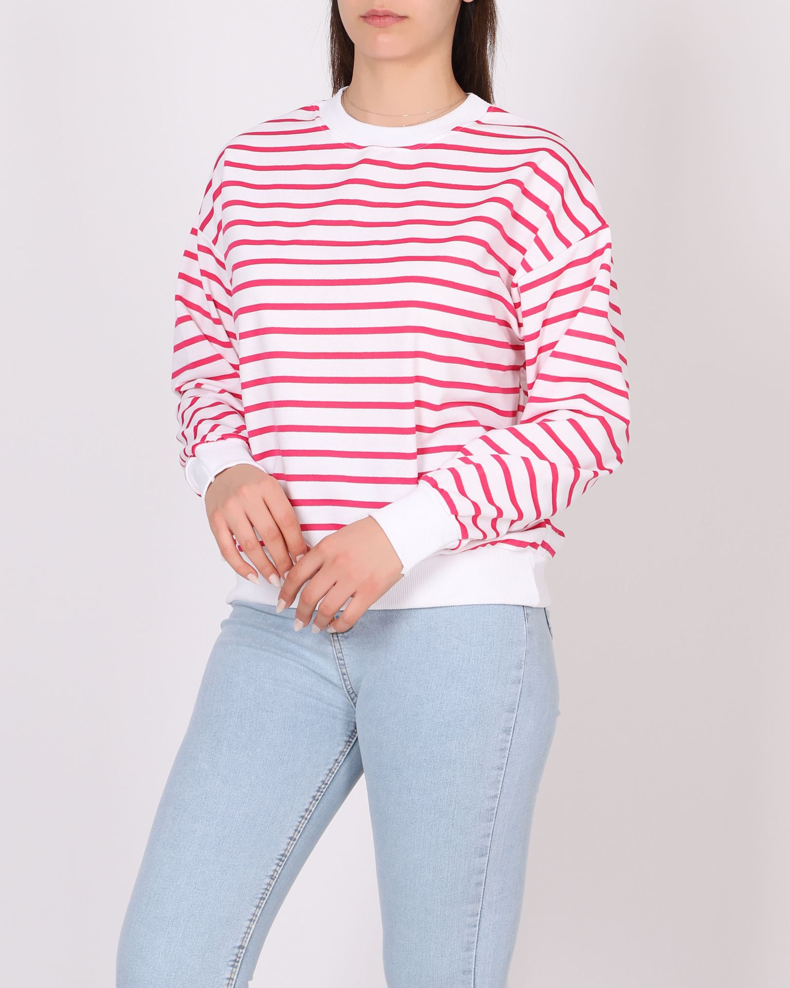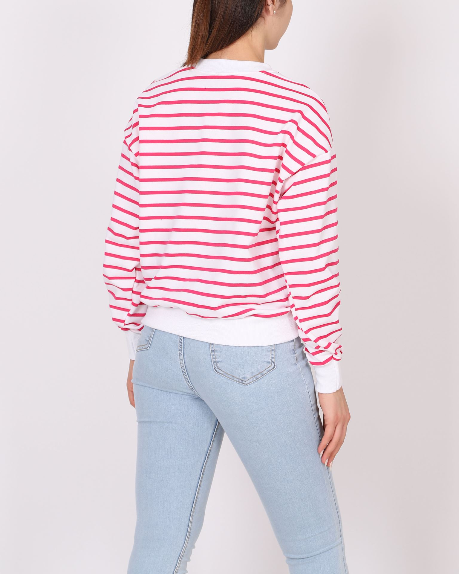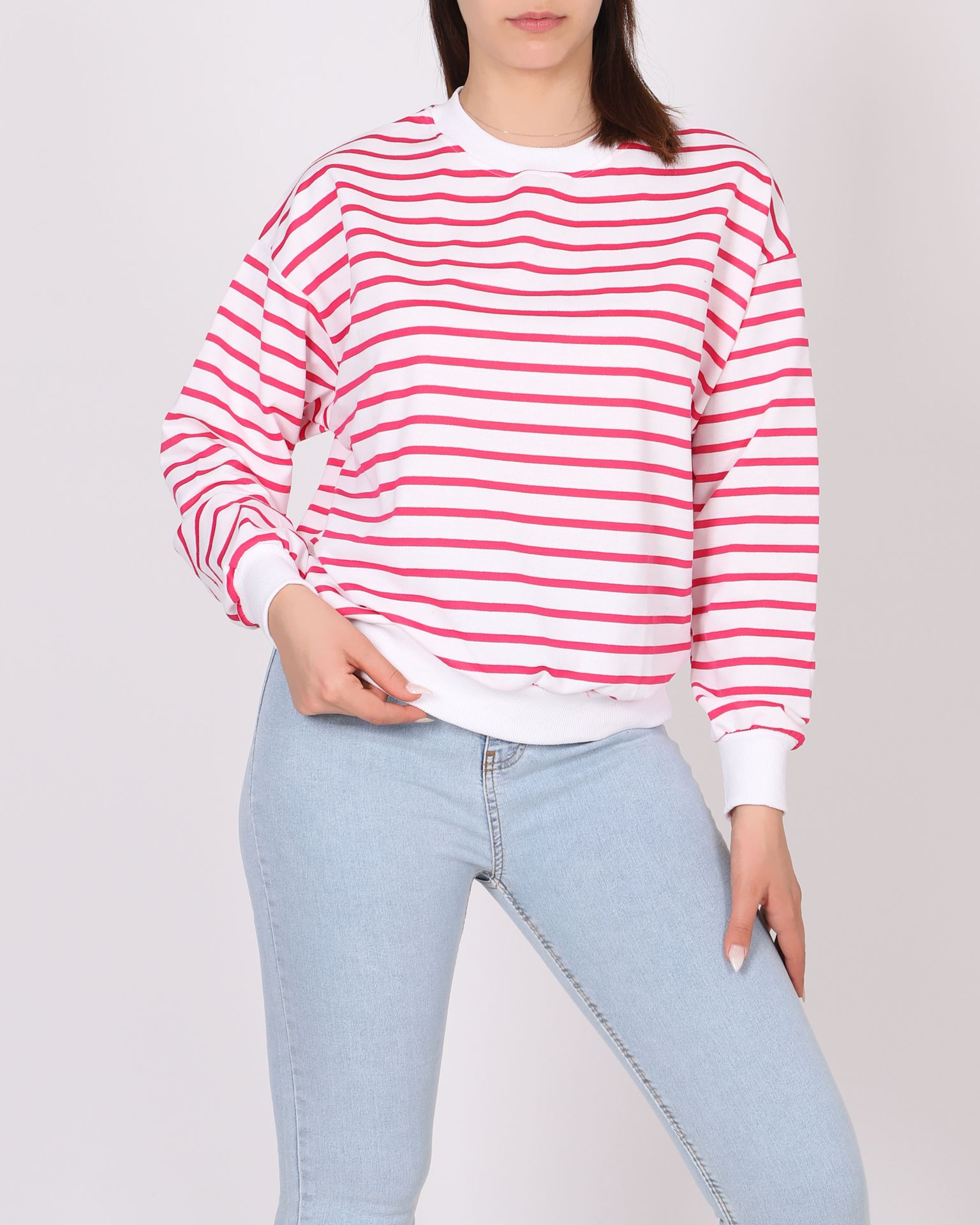 Pembe Çizgili Bisiklet Yaka Sweat SWT984